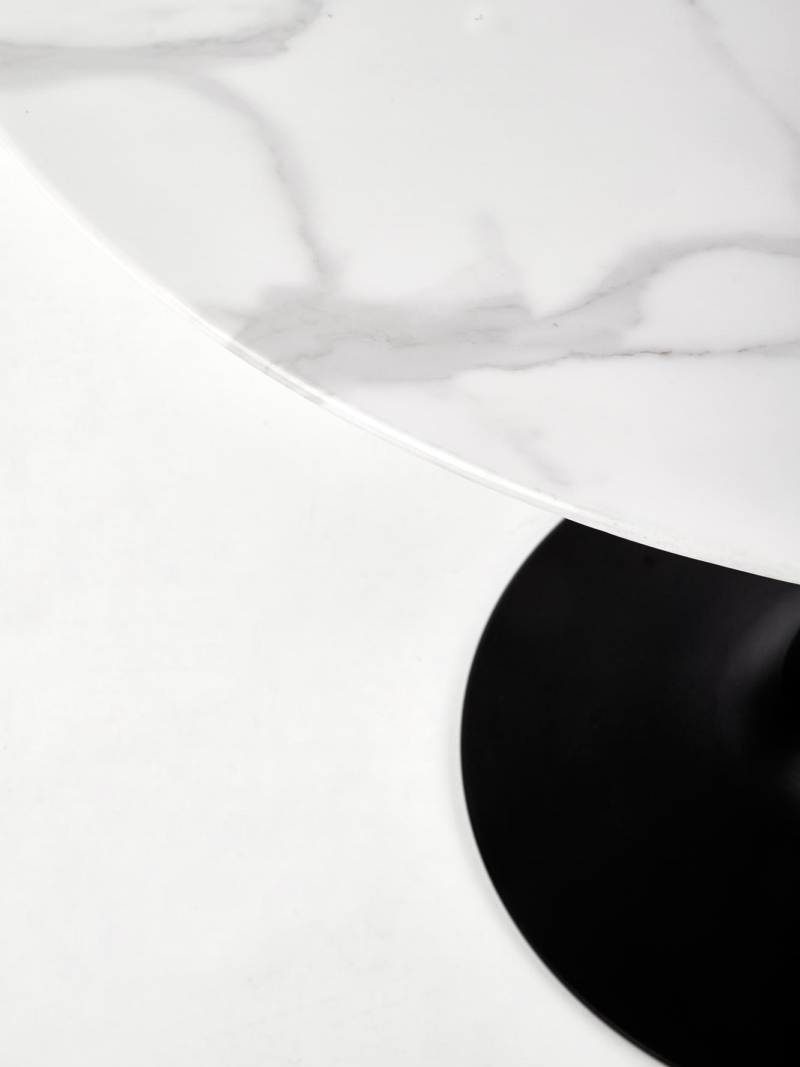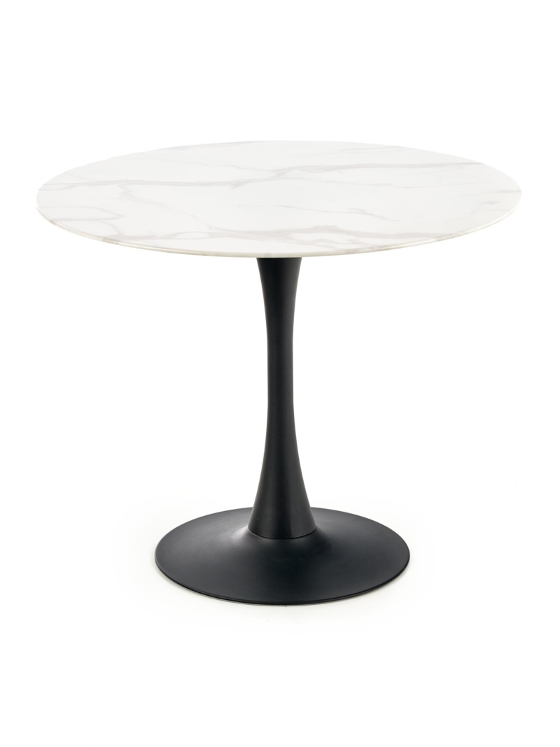 dimensions: o90/72 cm, material: glass / powder coated steel, color: top – white marble, legs – black