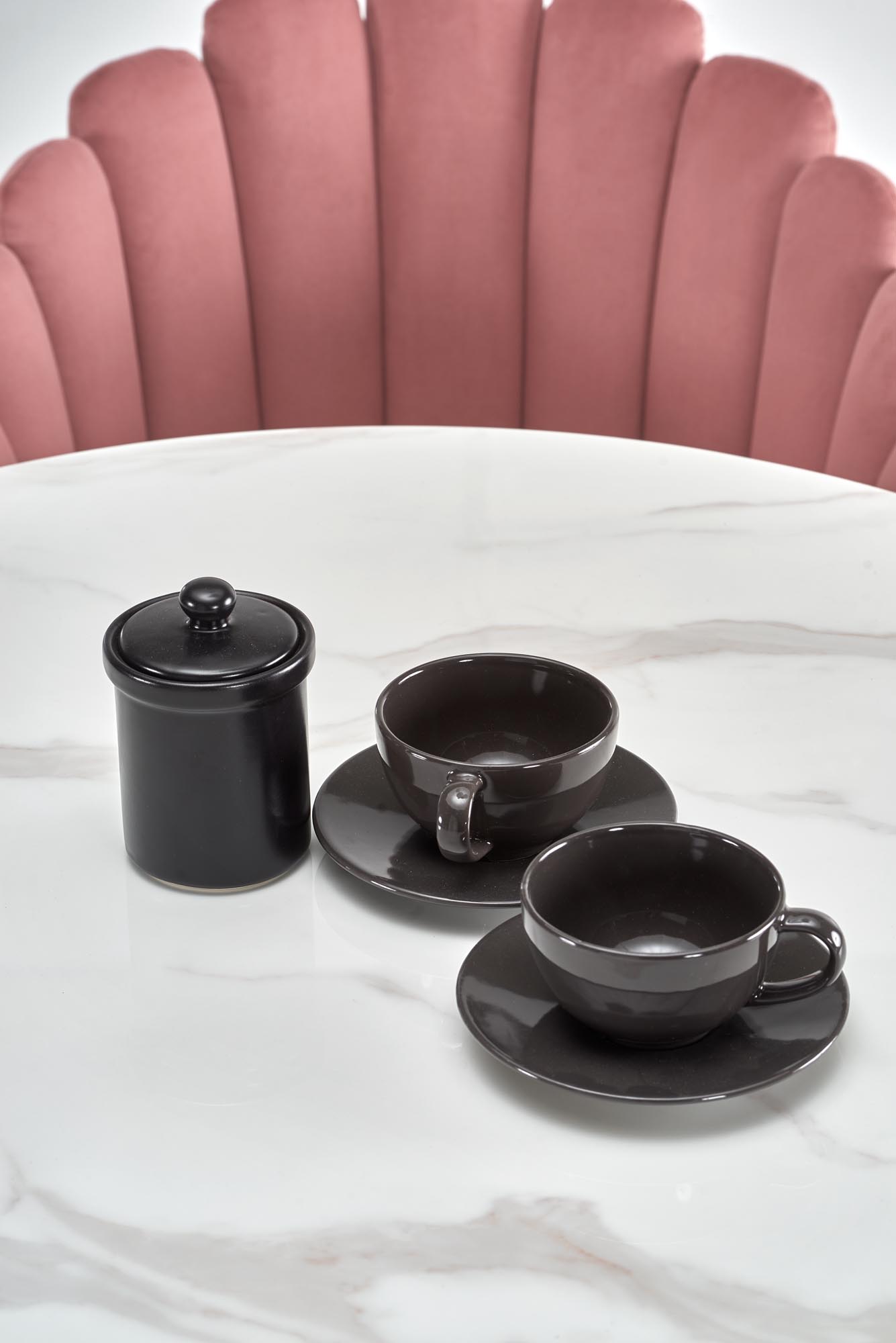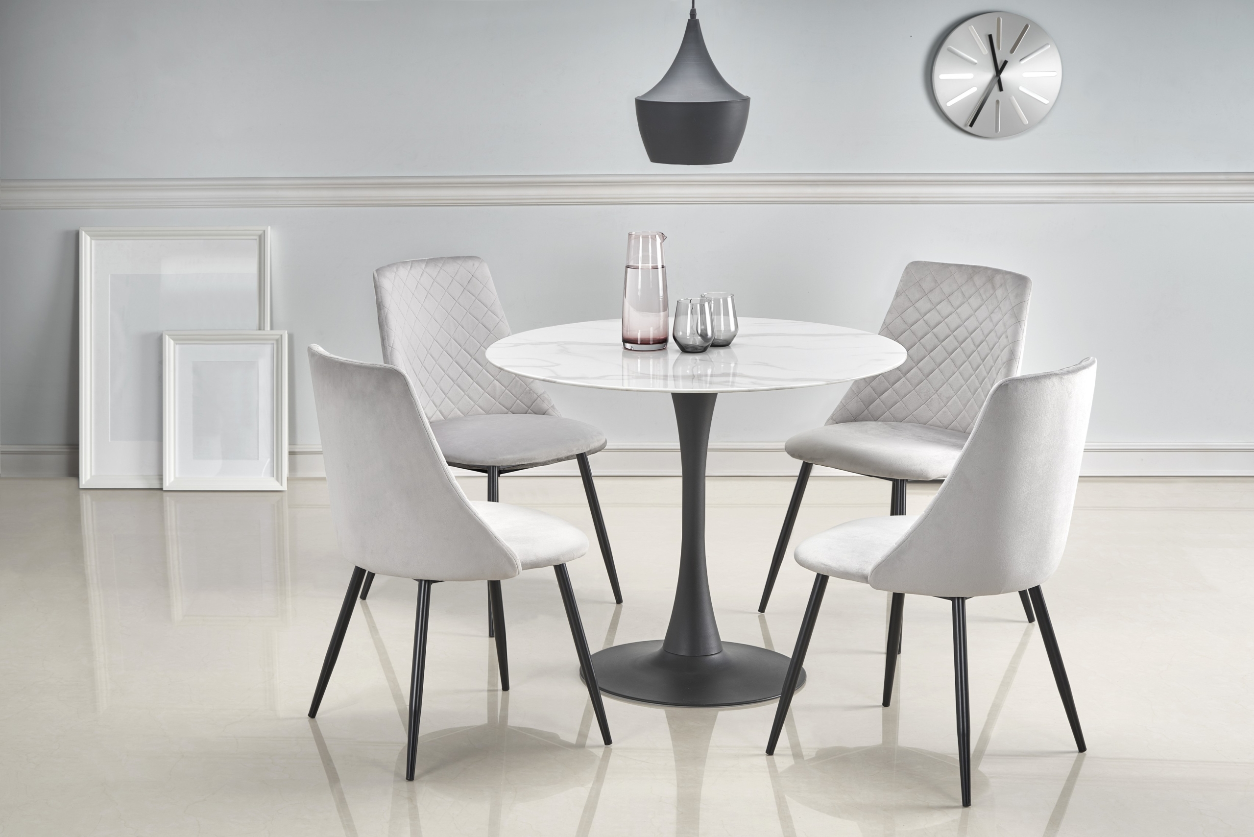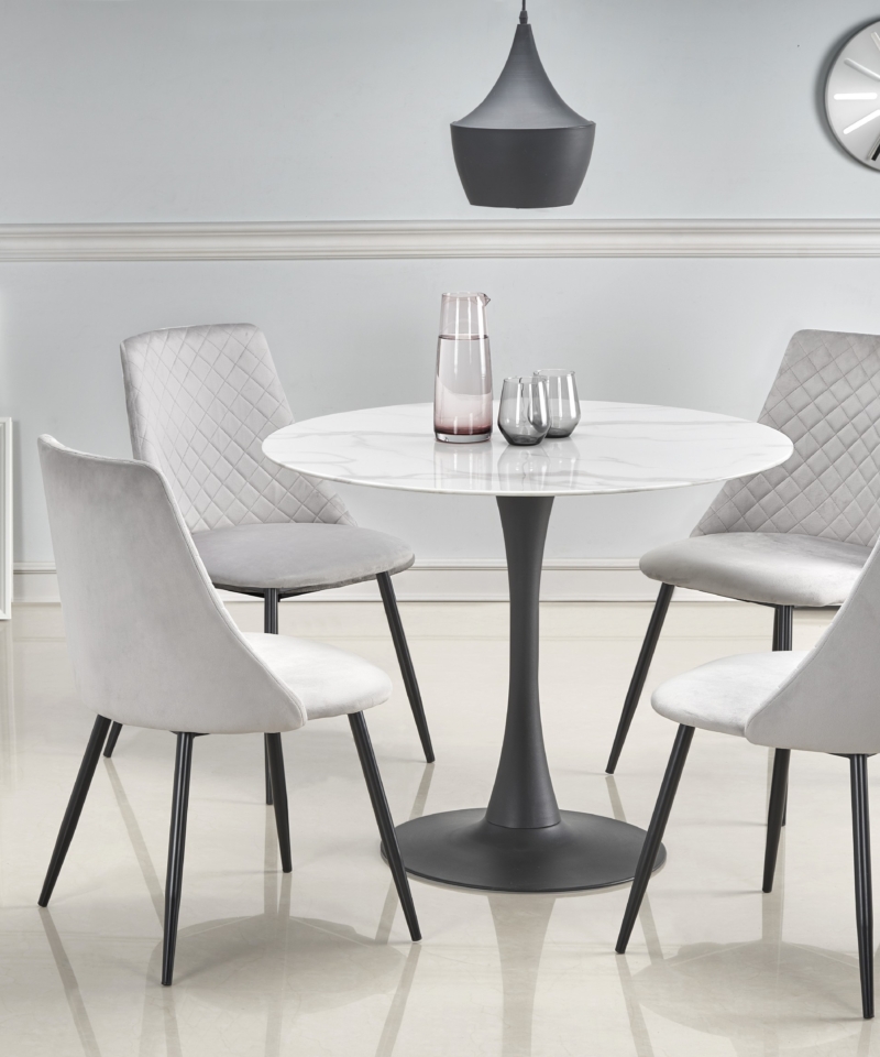 dimensions: o90/72 cm, material: glass / powder coated steel, color: top – white marble, legs – black