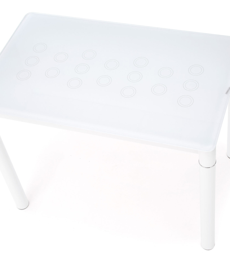 dimensions: 100/60/75 cm, material: glass / painted steel, color: glass – milky, frame – white