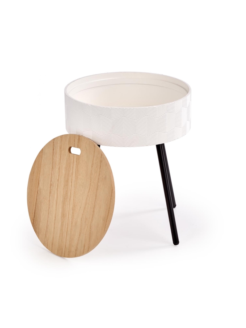 dimensions: 38/45 cm, material: lacquered MDF / MDF + natural veneer / powder coated steel, color: white / black