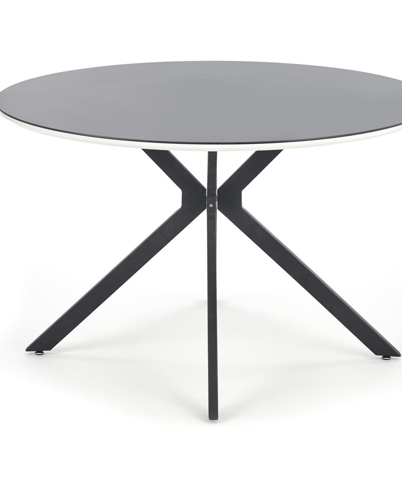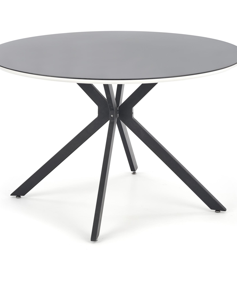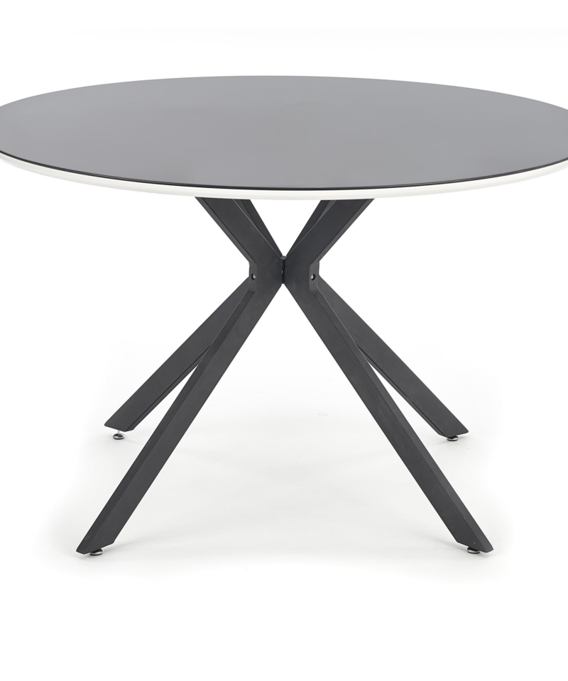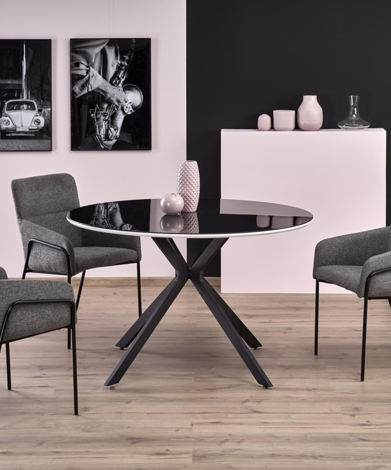dimensions: fi120/76 cm, material: glass / lacquered MDF / powder coated steel, color: top – black / white, legs – black