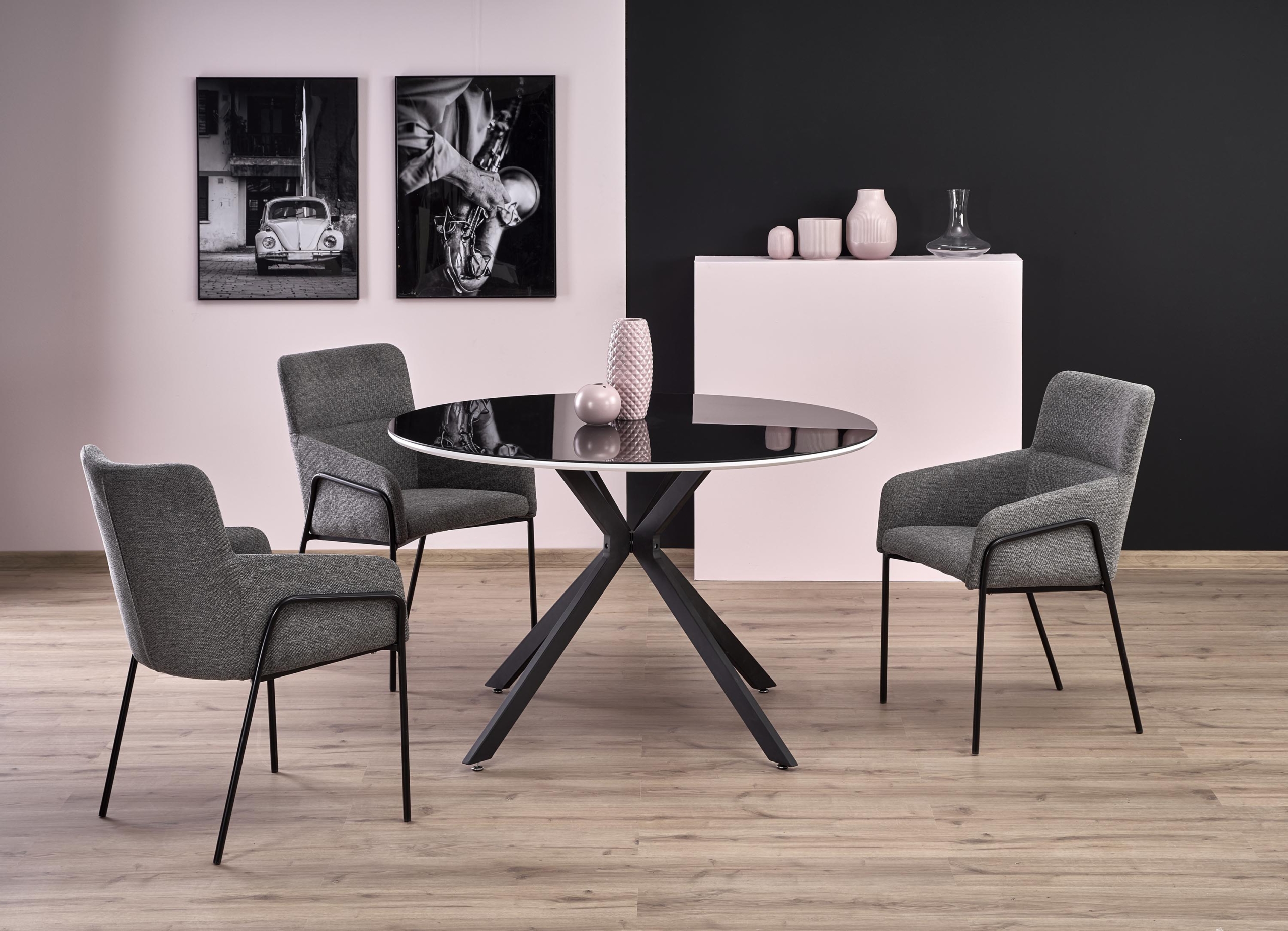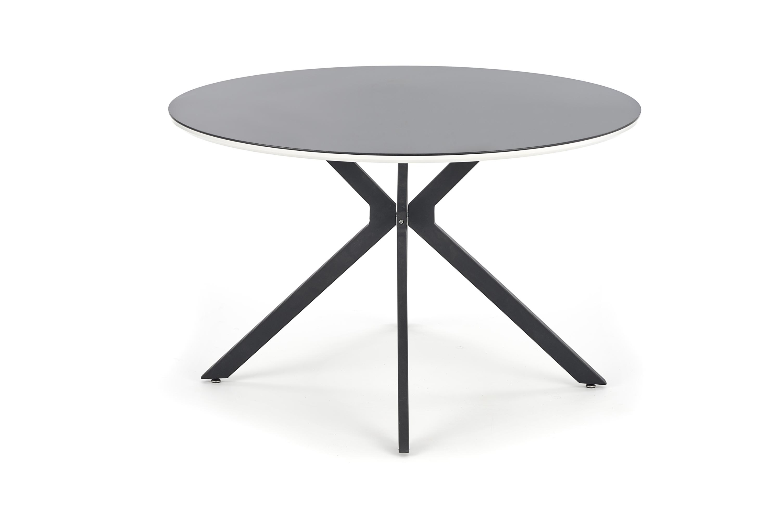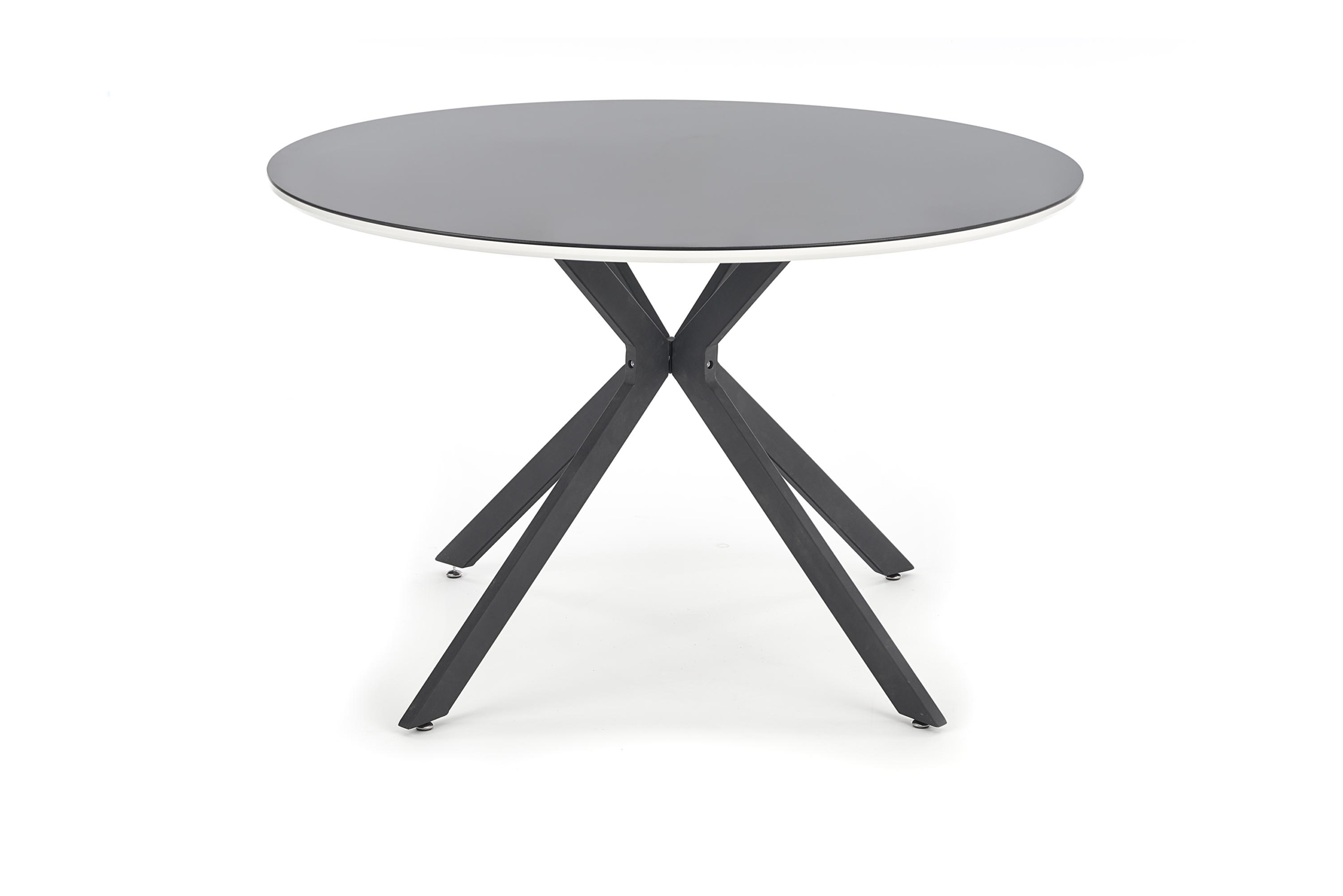 dimensions: fi120/76 cm, material: glass / lacquered MDF / powder coated steel, color: top – black / white, legs – black
