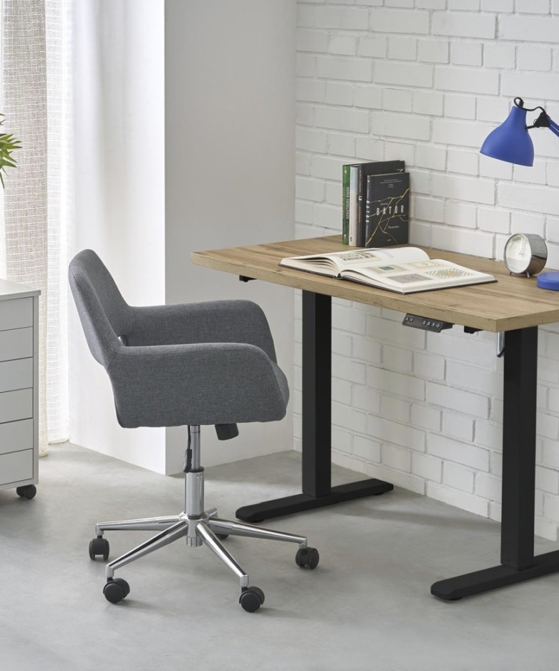 dimensions: 120/60/75-120 cm, desk with adjustable height, material: laminated chipboard . Powder coated steel, colors: top – artisan oak, frame – black