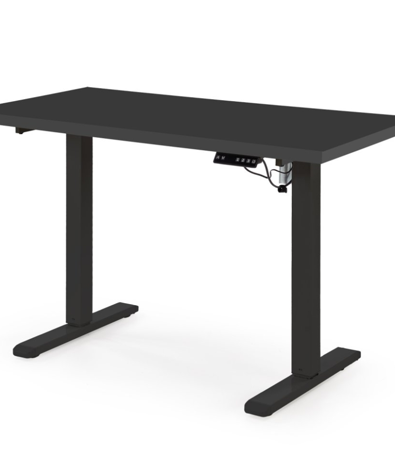 dimensions: 120/60/75-120 cm, desk with adjustable height, material: laminated chipboard . Powder coated steel, colors: top – black, frame – black