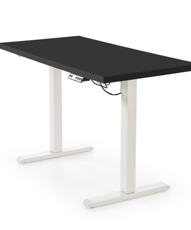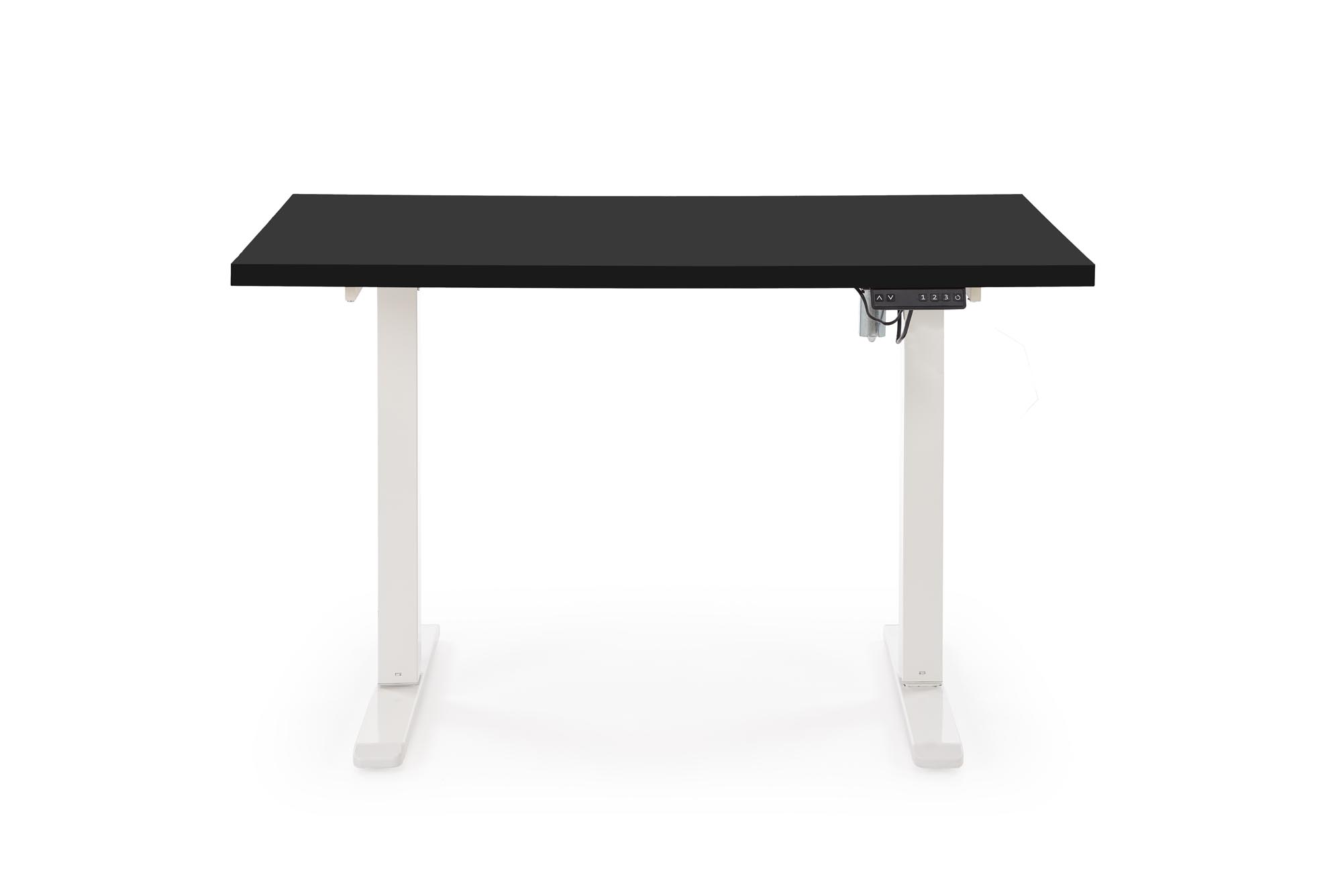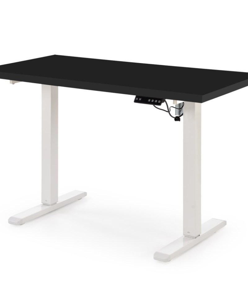 dimensions: 120/60/75-120 cm, desk with adjustable height, material: laminated chipboard . Powder coated steel, colors: top – black, frame – white
