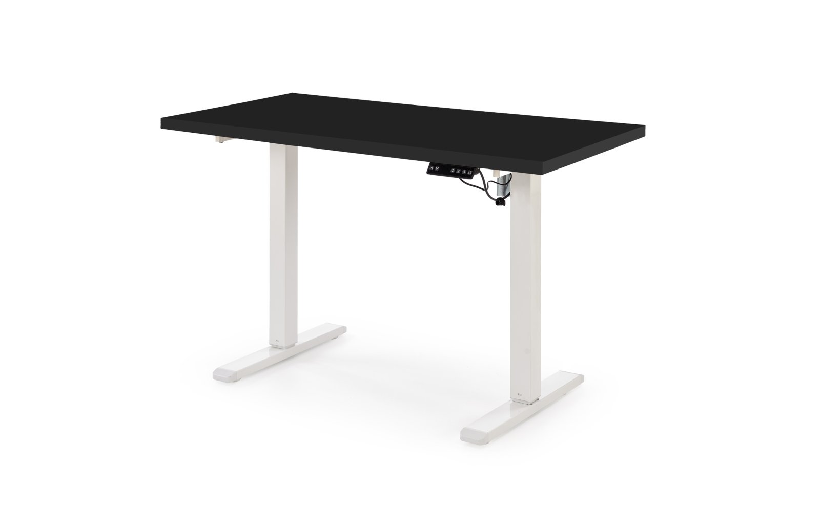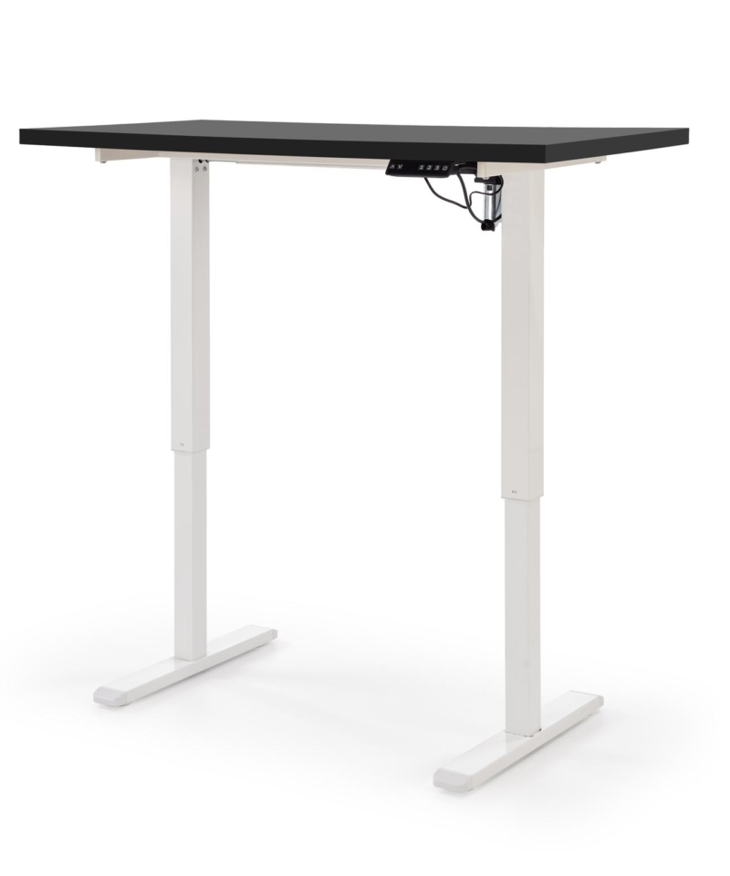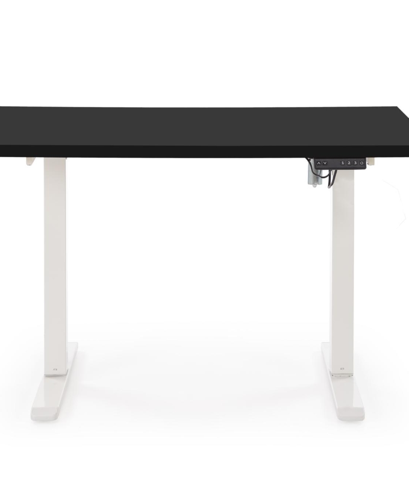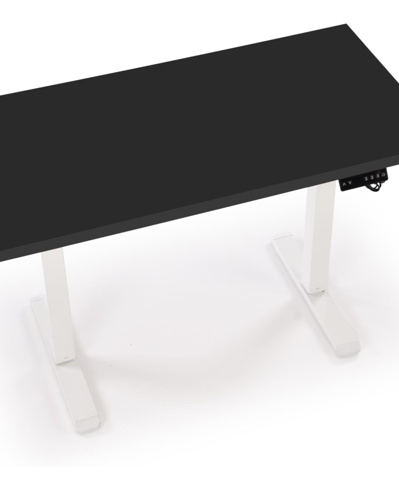 dimensions: 120/60/75-120 cm, desk with adjustable height, material: laminated chipboard . Powder coated steel, colors: top – black, frame – white