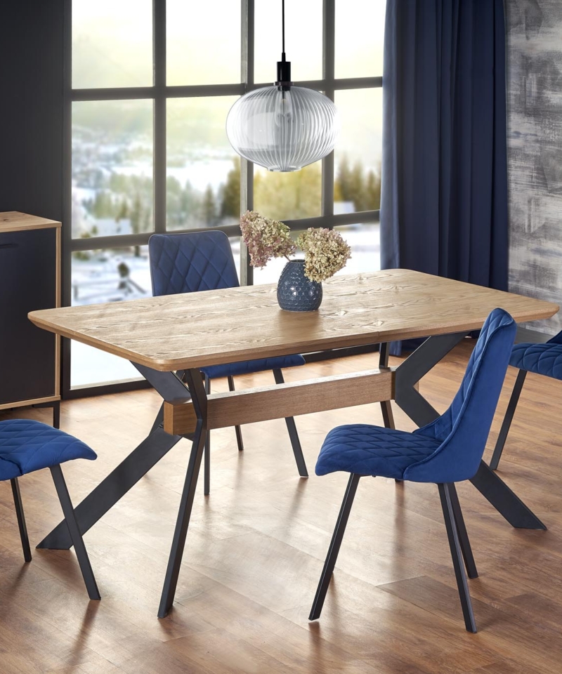 extension table, dimensions: 160-220/90/76 cm, material: MDF + natural veneer / powder coated steel, color: top – natural oak, legs – black