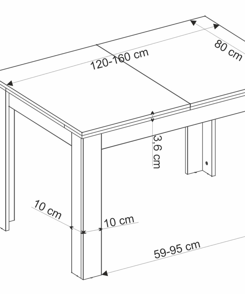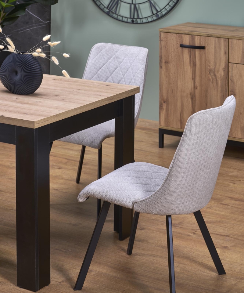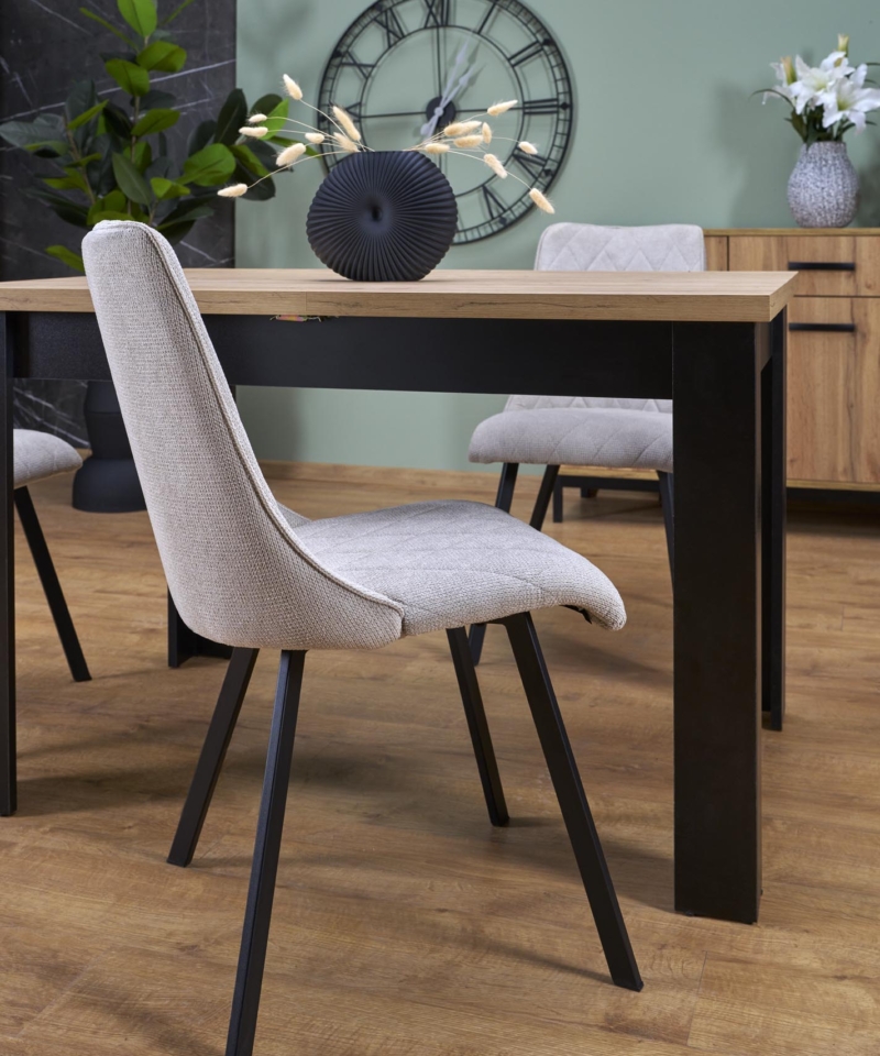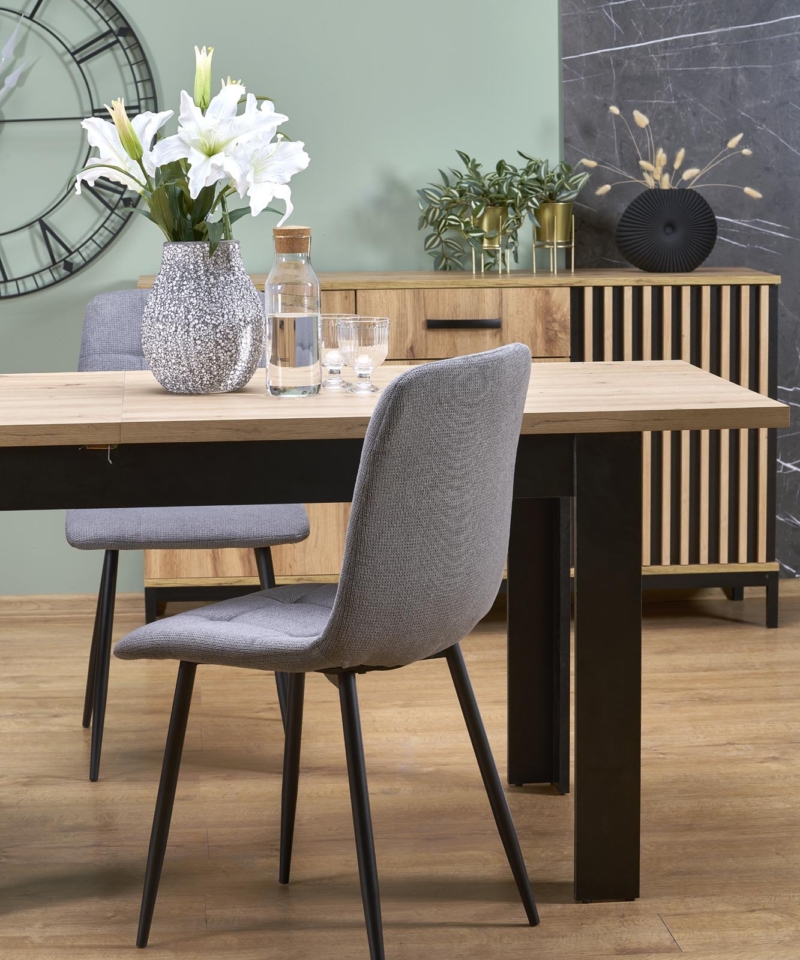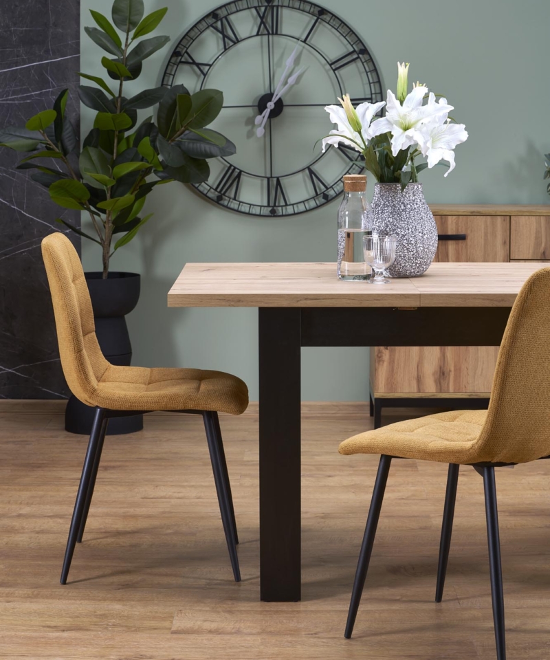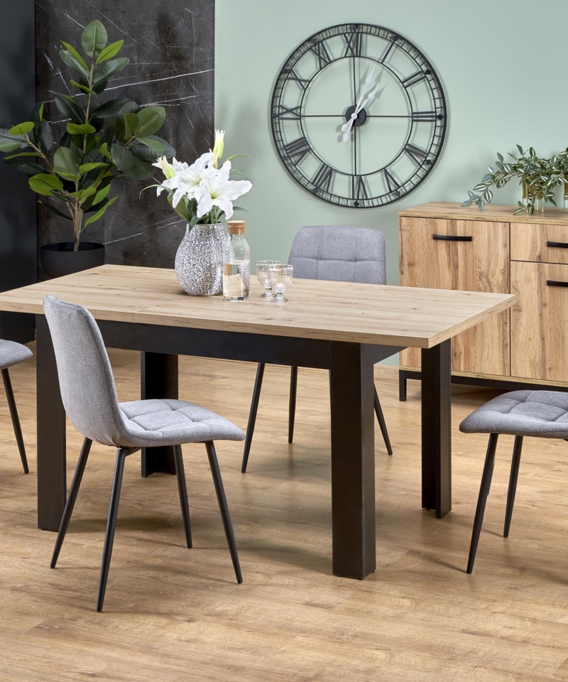 dimensions: 120-160/80/77/95 cm; extension table, material: laminated chipboard, color: top – artisan oak, legs – black