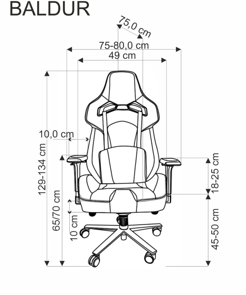 dimensions: 75-80/75/129-134/45-50 cm; MULTIBLOCK function / adjustable armrests / aluminum base, eco leather, color: black