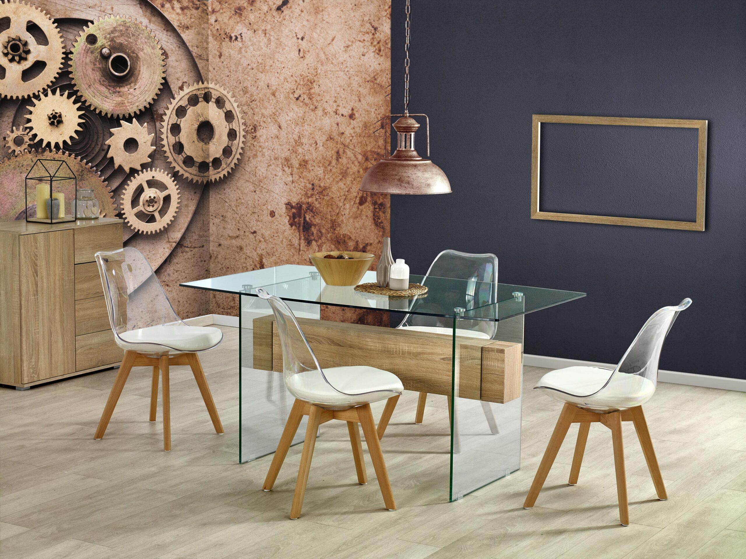 dimensions: 150/90/75 cm, material: glass / laminated MDF, color: sonoma oak