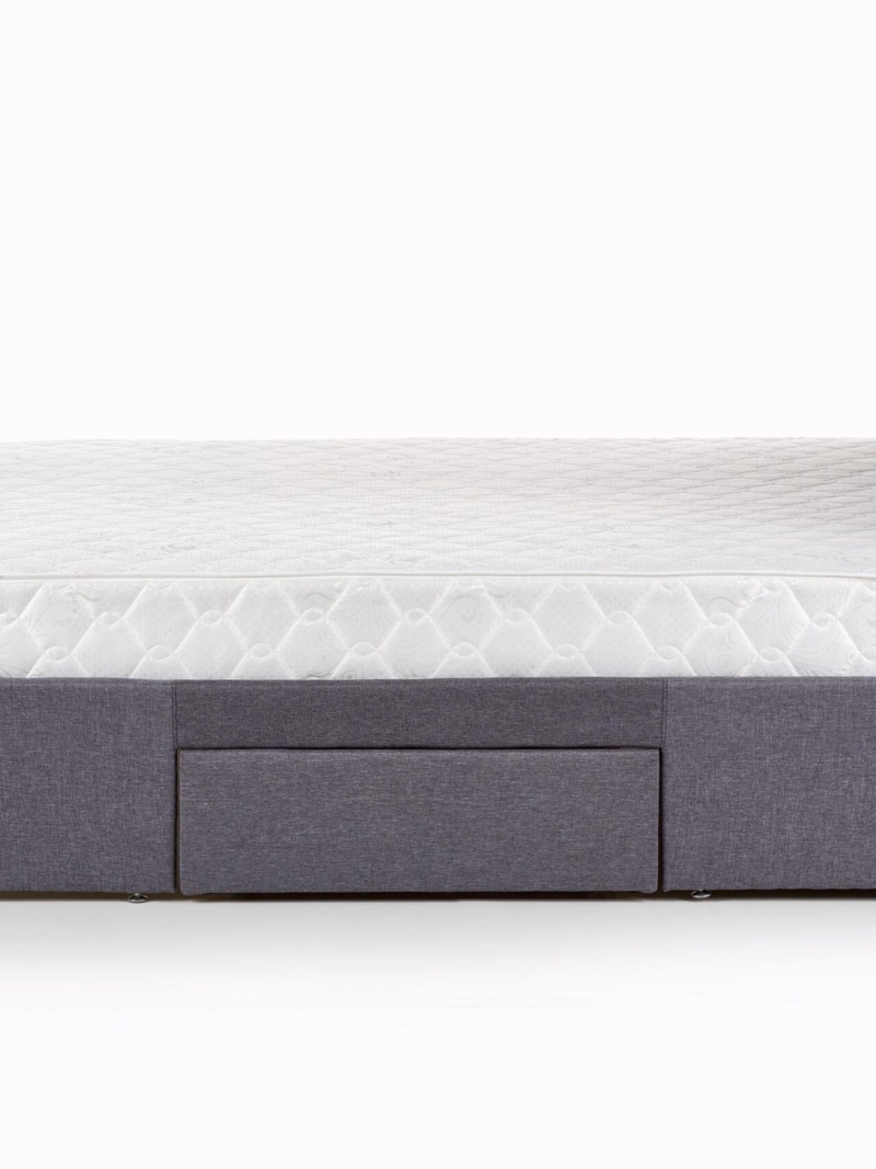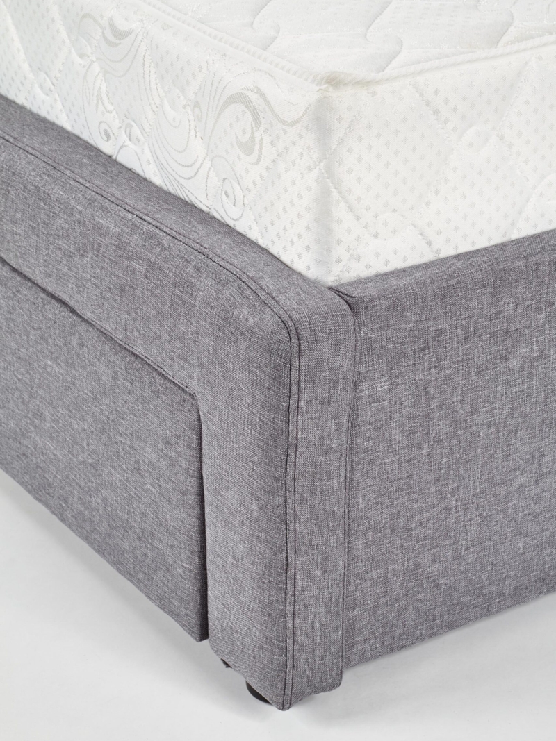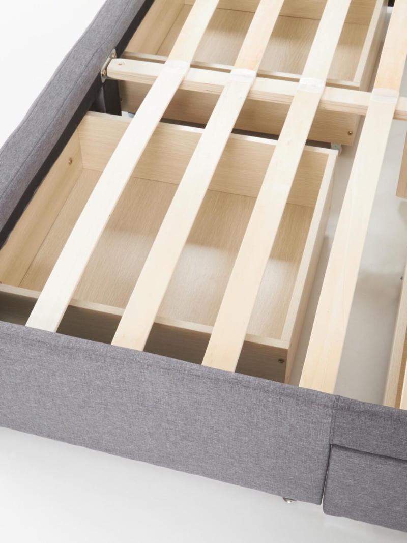 dimensions: 169/218/107 cm, bed with drawers, material: cloth / solid wood, color: cloth – grey, wood – black