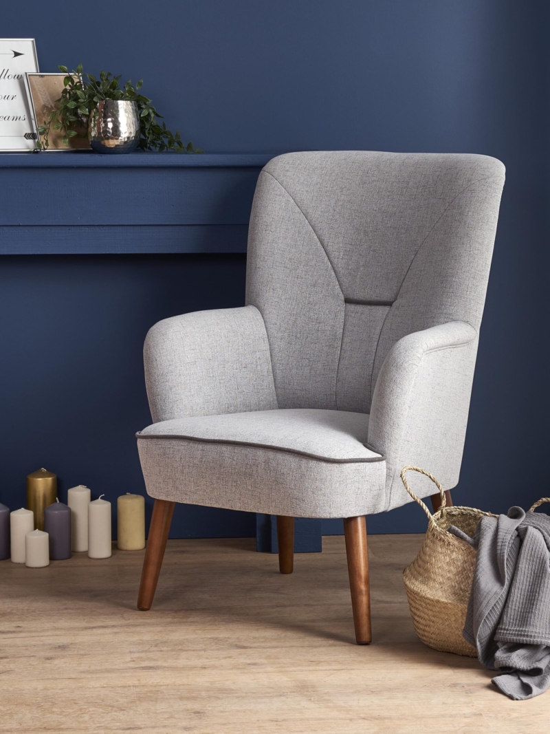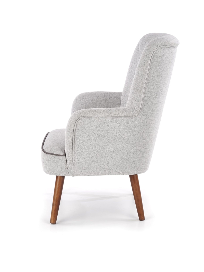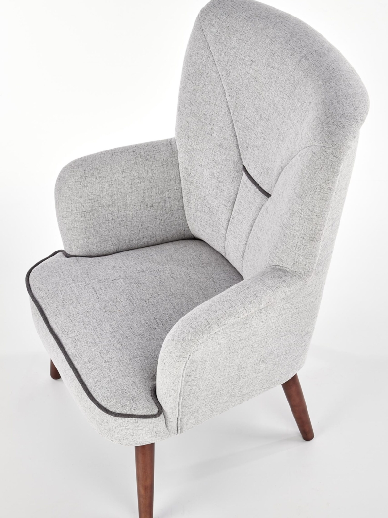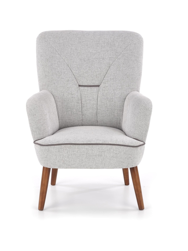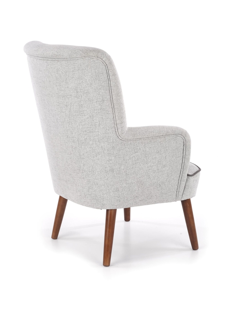 dimensions: 76/78/102/43 cm, material: cloth / solid wood, color: upholstery – light grey, legs – walnut