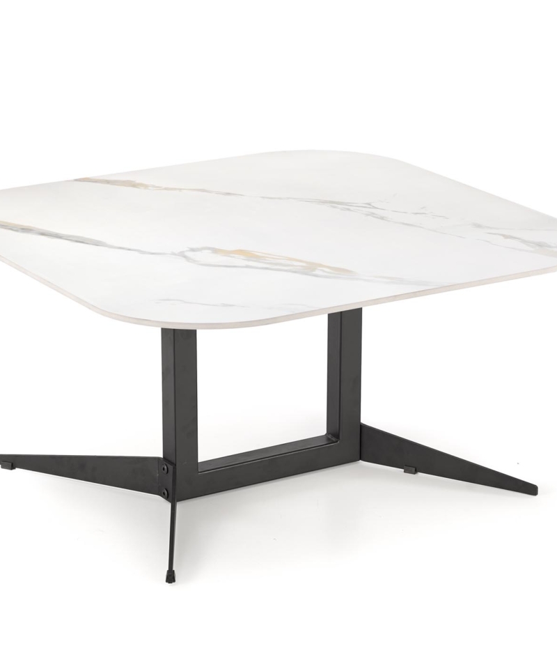 dimension: 80/80/40 cm, material: sintered stone / powder coated steel, color: white marble / black