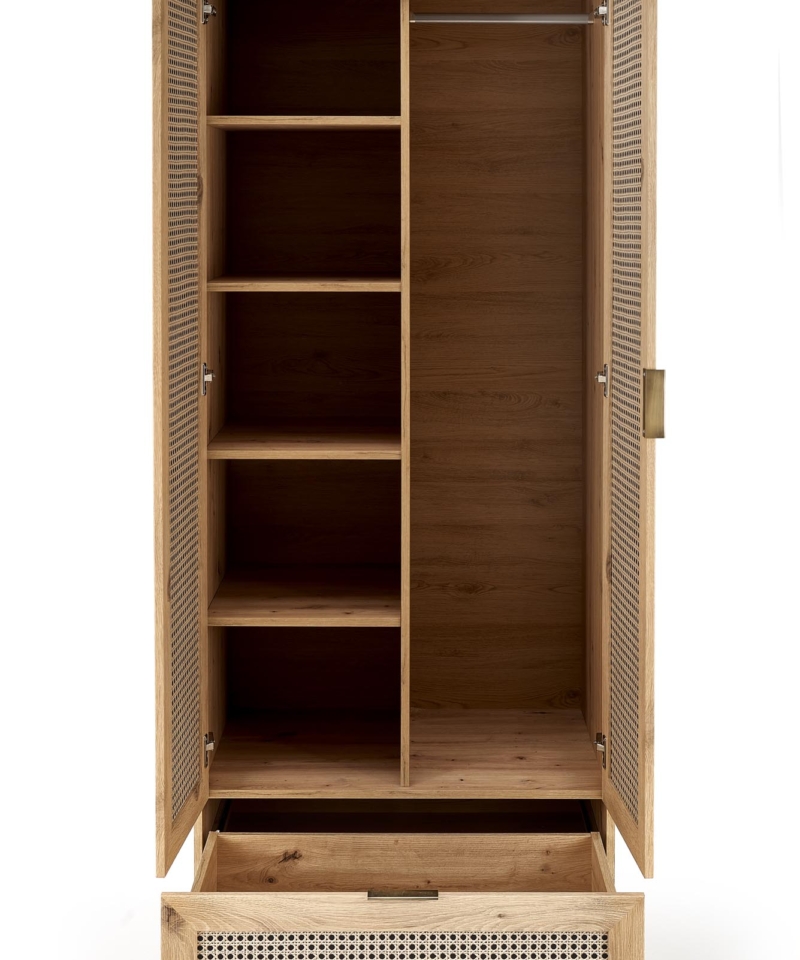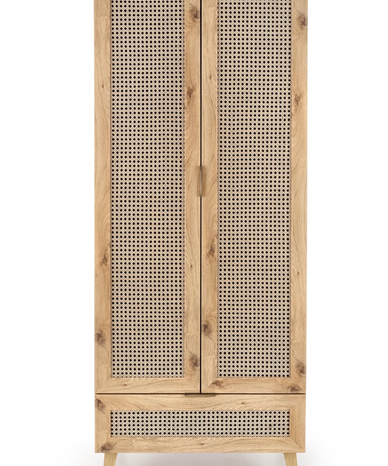 wardobe, dimensions: 80/57/200 cm, material: laminated chipboard / laminated MDF / laminated HDF board / polypropylene, color: artisan oak / black