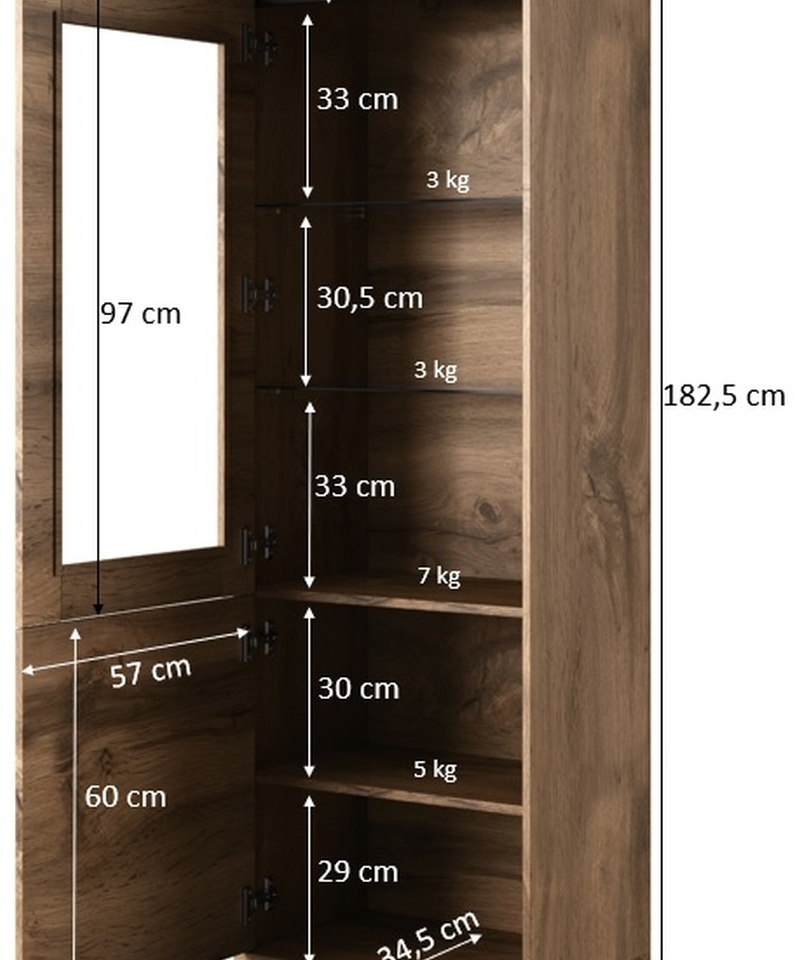 h/w/d- 182,5cm/60cm/38cm