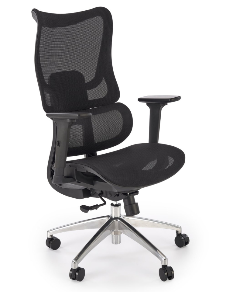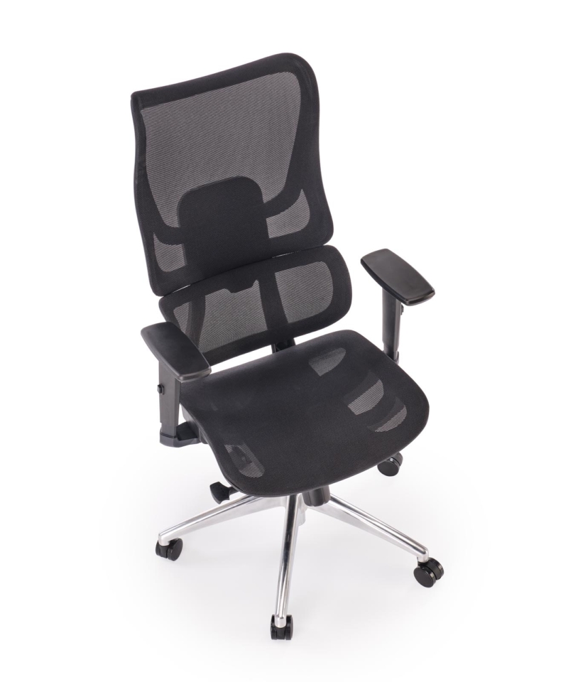 dimensions: 63/70/115-125/50-60 cm, synchro mechanism / adjustable armrests / backrest height adjustable / adjustable lumbar support / sliding seat, mesh, color: black