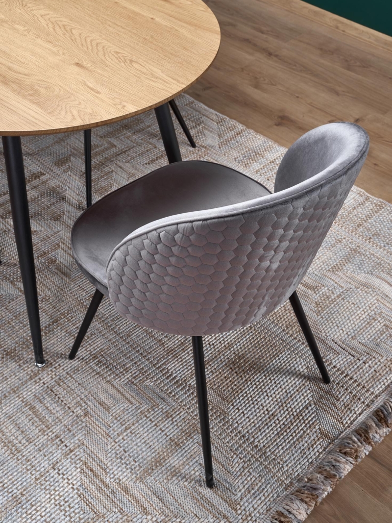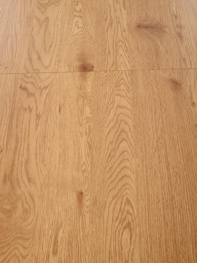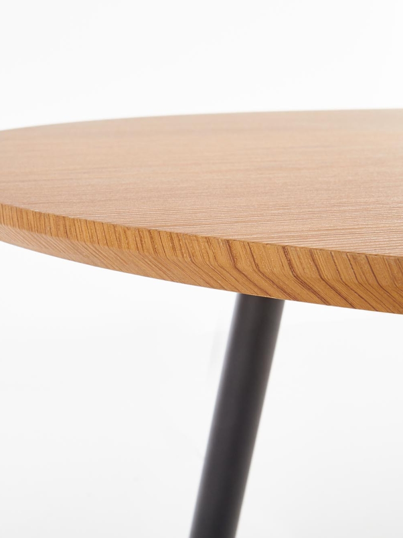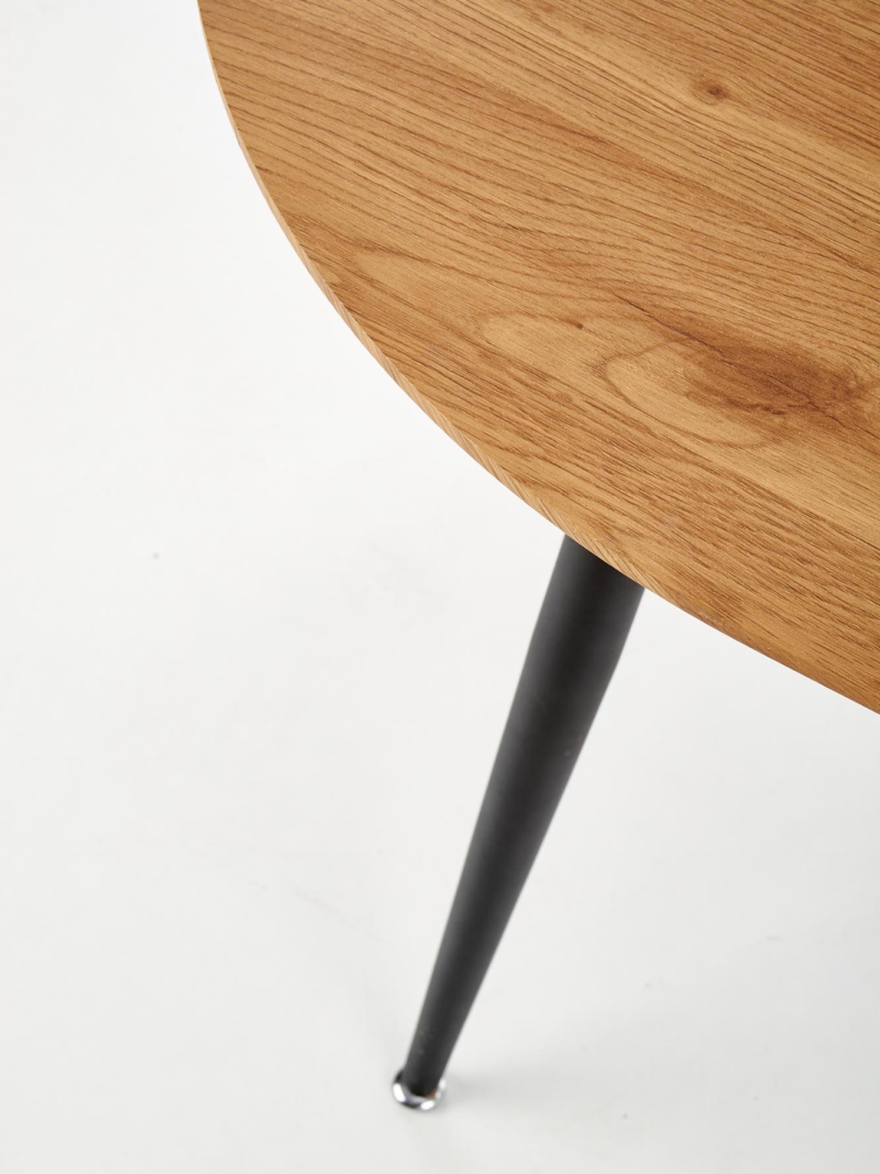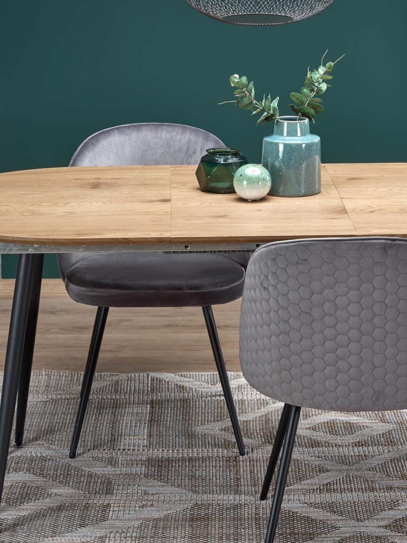 dimensions: 120-160/80/74 cm, extension table, material: laminated MDF / powder coated steel, color: top – golden oak, legs – black