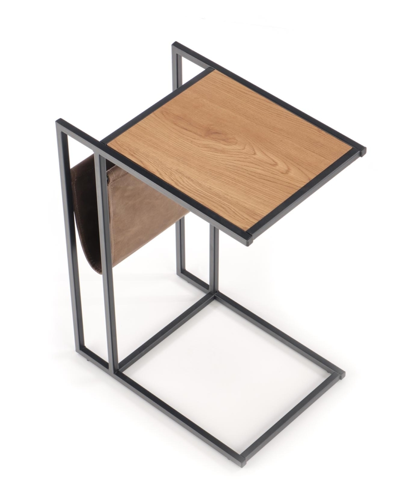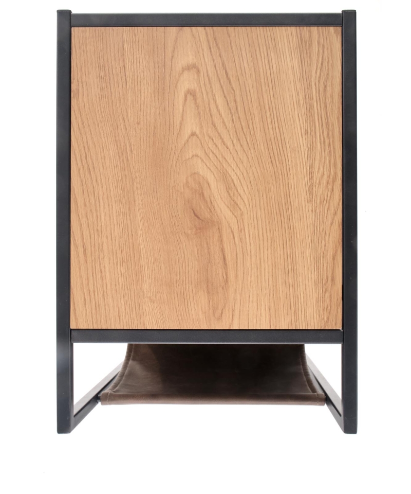 dimensions: 47/33/65 cm, material: laminated MDF / eco leather / powder coated steel, color: golden oak / black