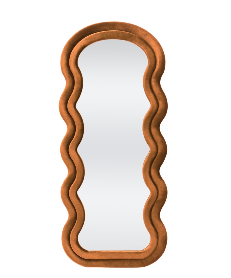 standing mirror or wall mirror, dimensions: 160/70/3 cm, material: frame – cloth – velvet / base – MDF board / mirror, color: cinnamon