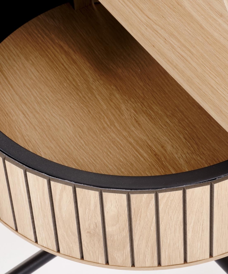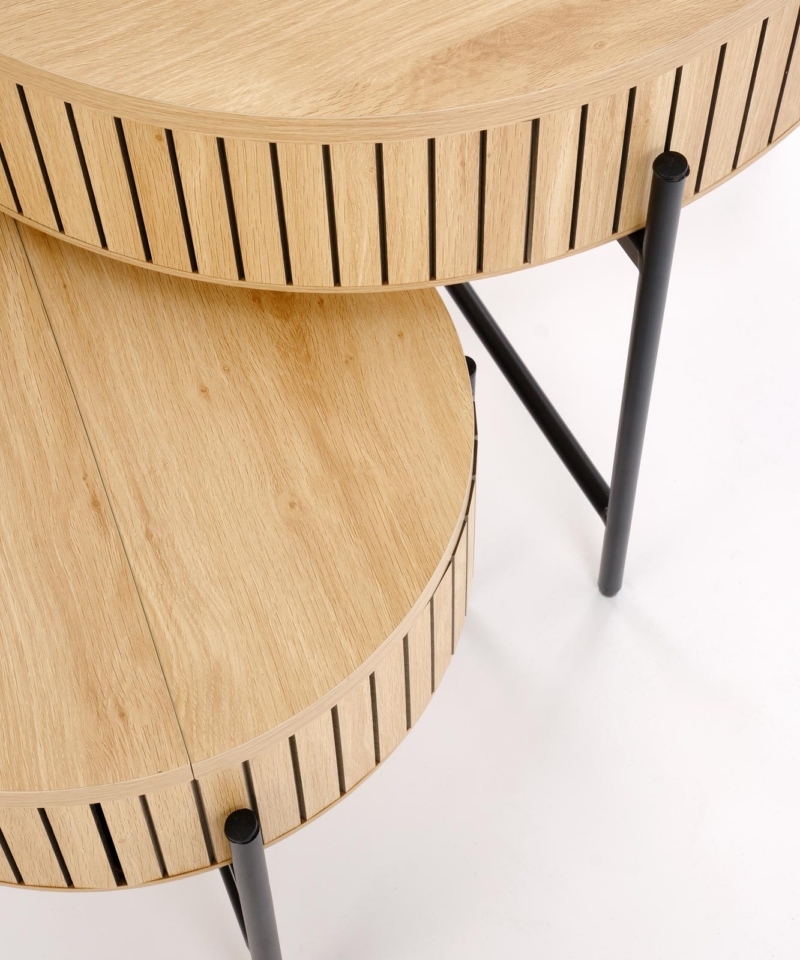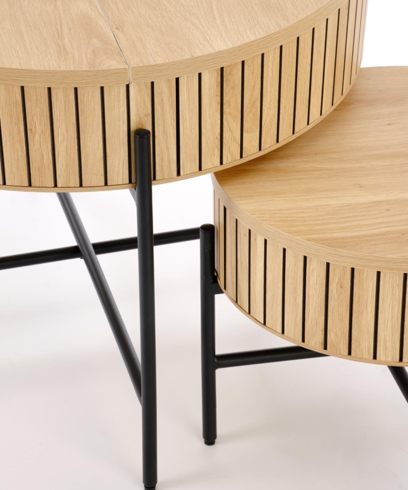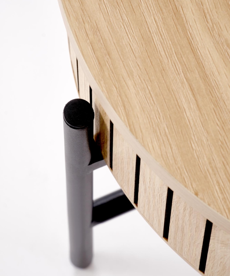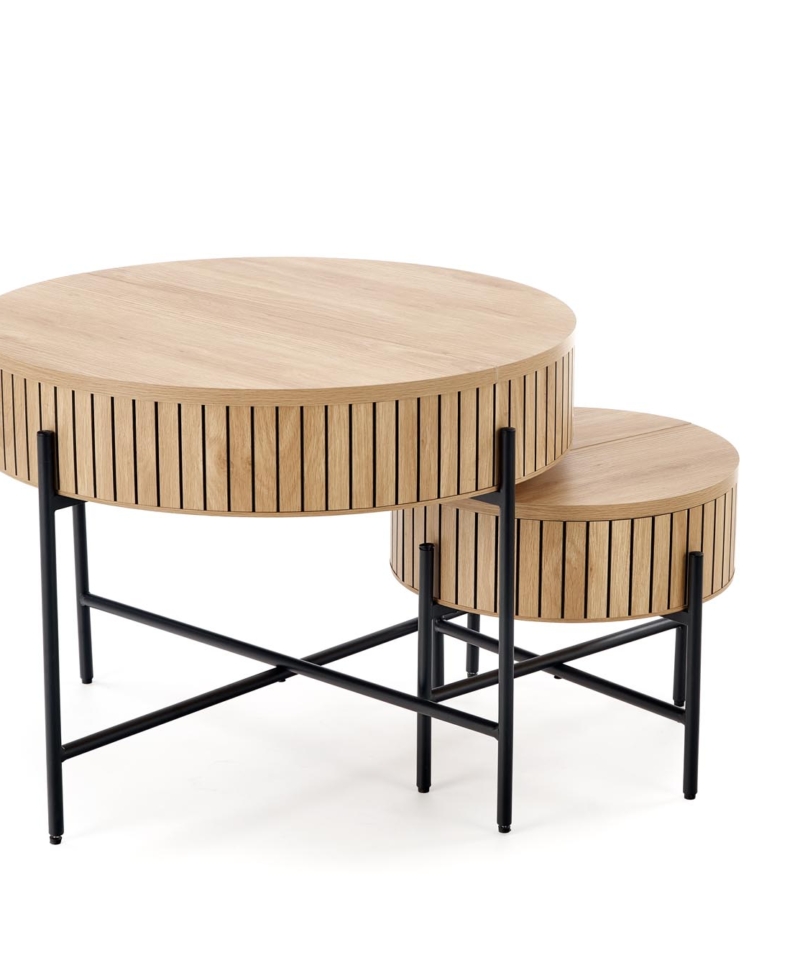 dimensions: fi67/50 cm, fi40/36 cm, set of two, material: laminated MDF – melamine / powder coated steel, color: natural / black