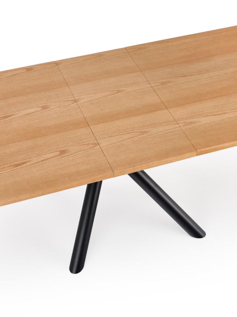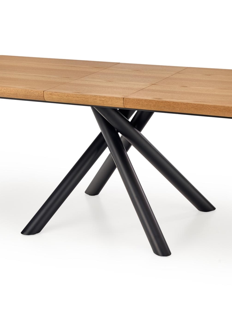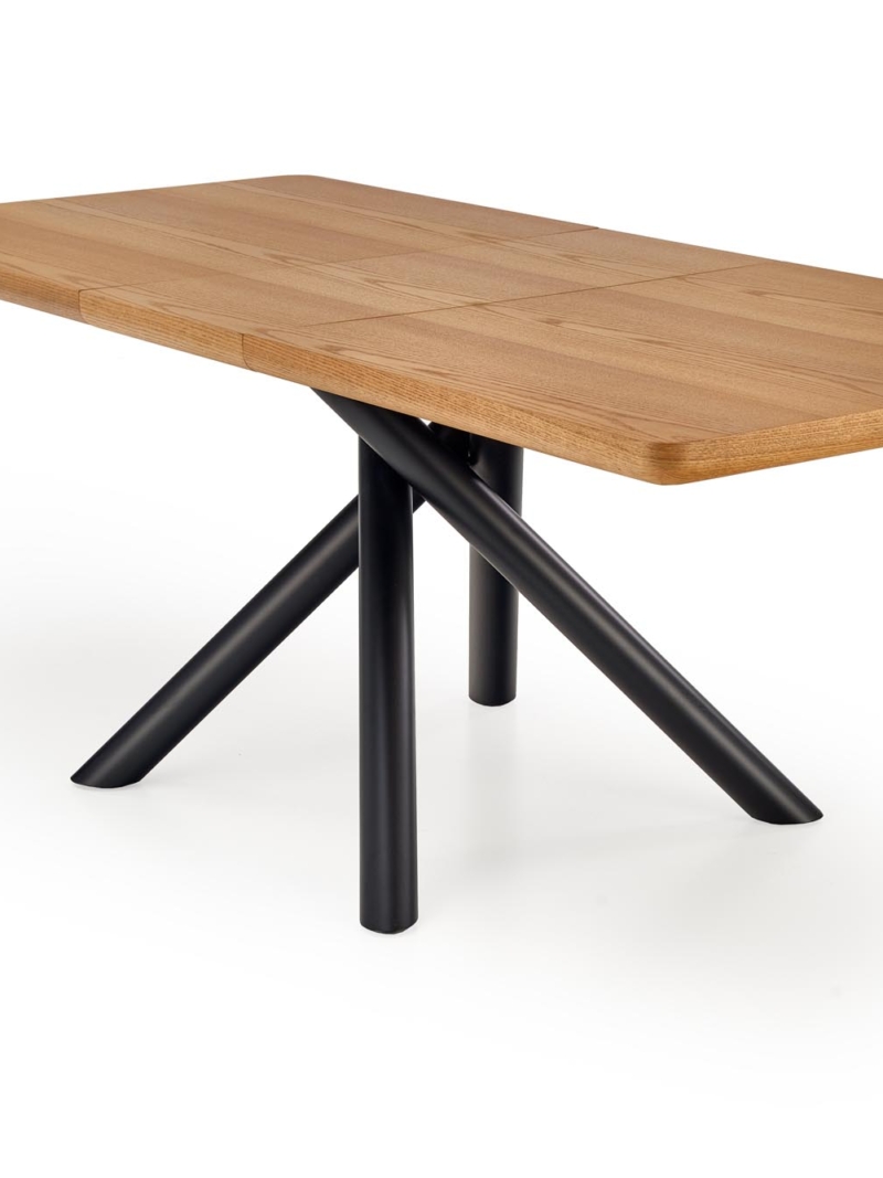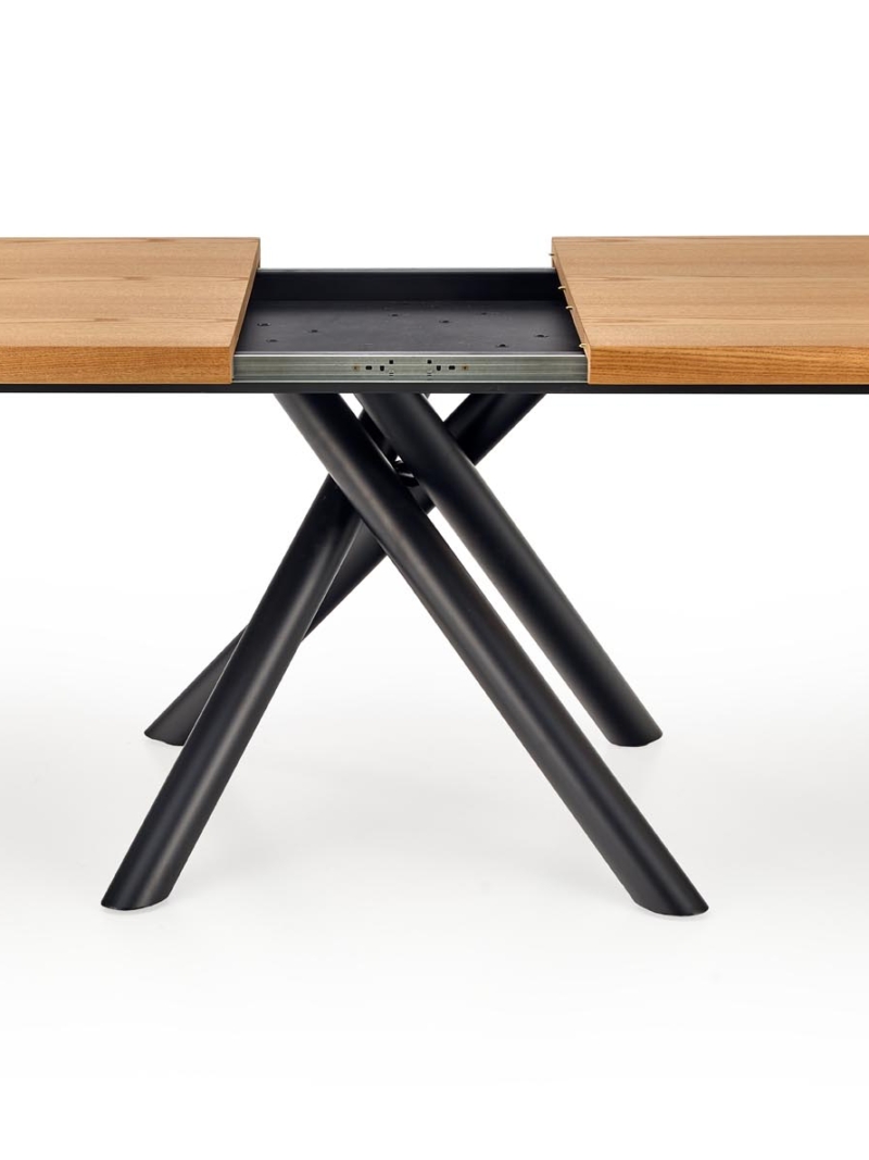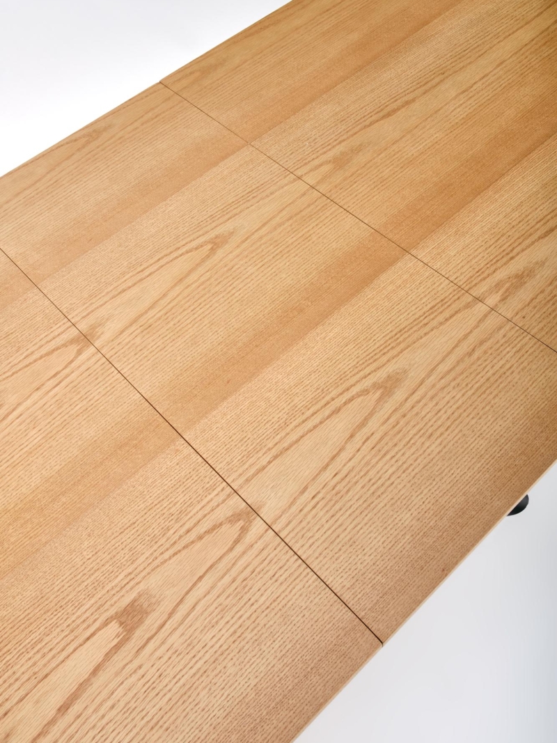 dimensions: 160-200/90/75 cm, extension table, material: MDF + natural veneer / powder coated steel, color: top – natural oak, legs – black
