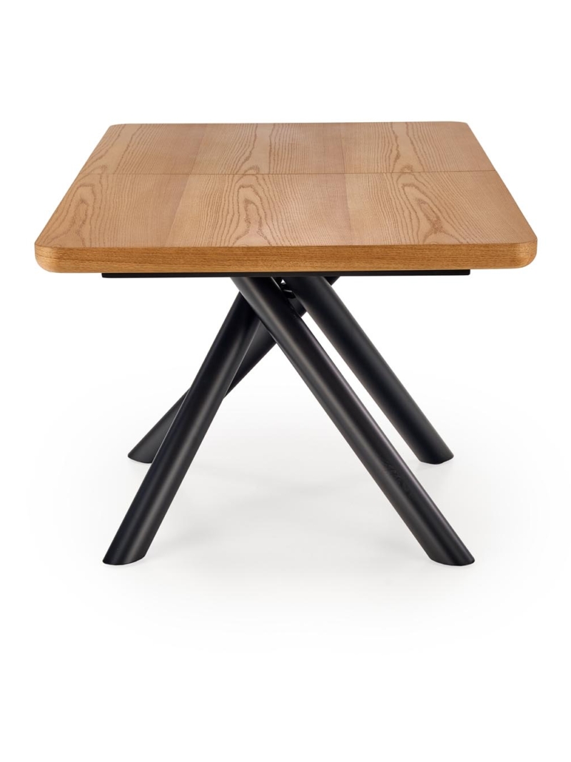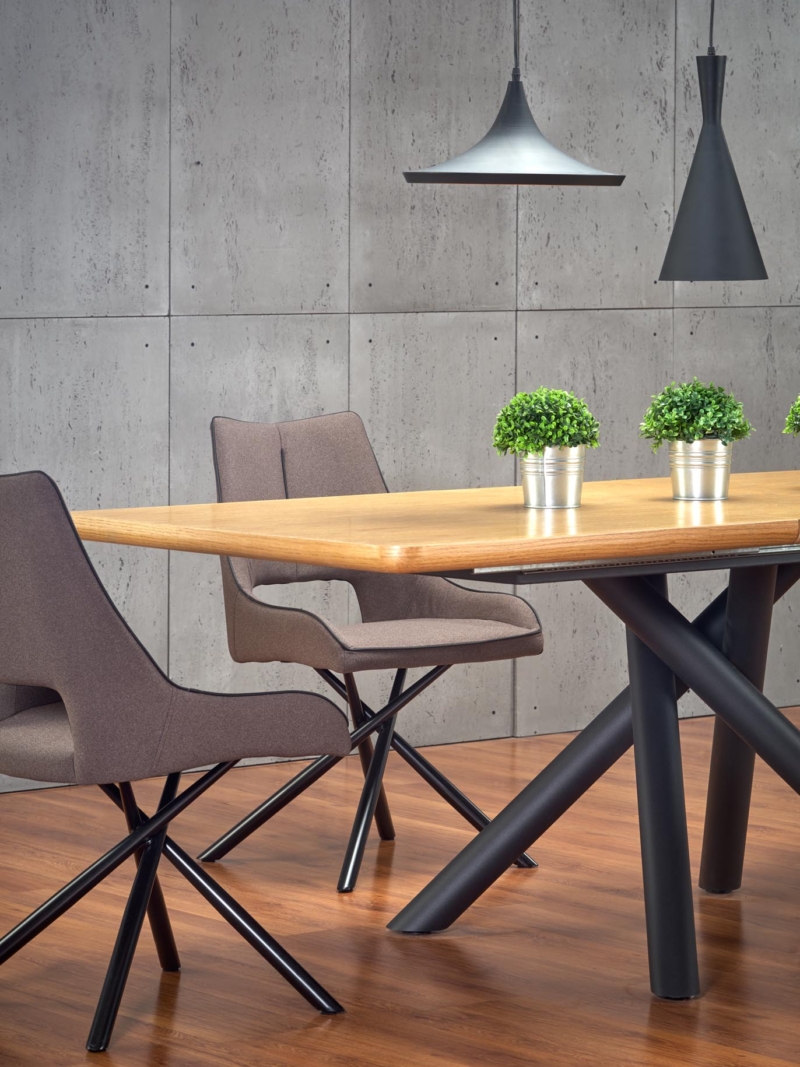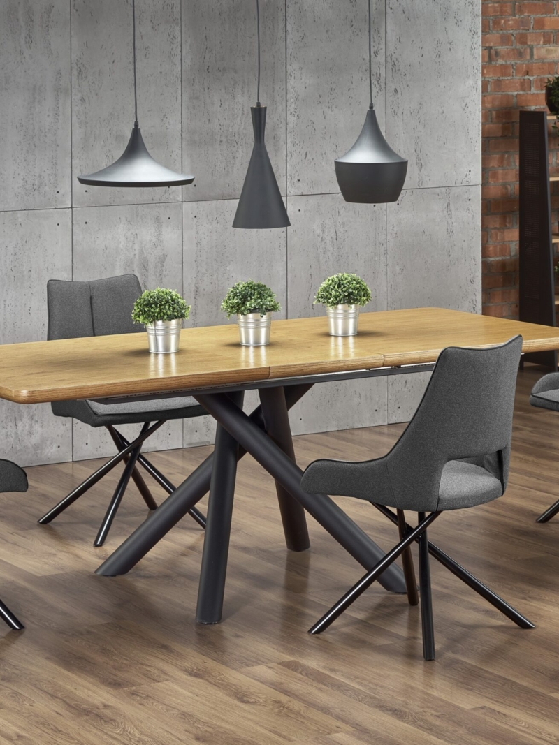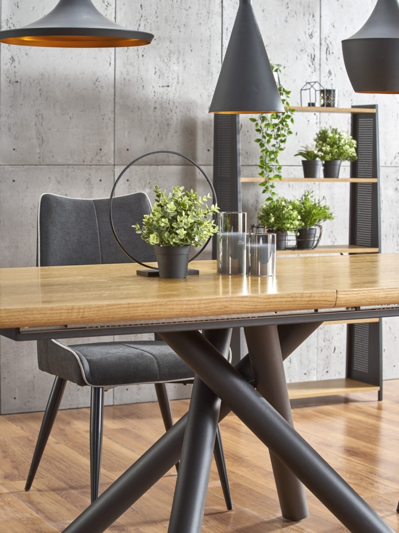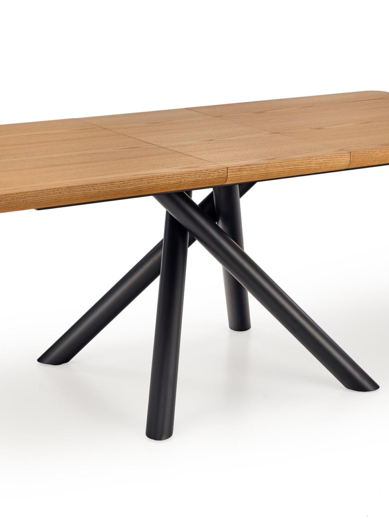 dimensions: 160-200/90/75 cm, extension table, material: MDF + natural veneer / powder coated steel, color: top – natural oak, legs – black