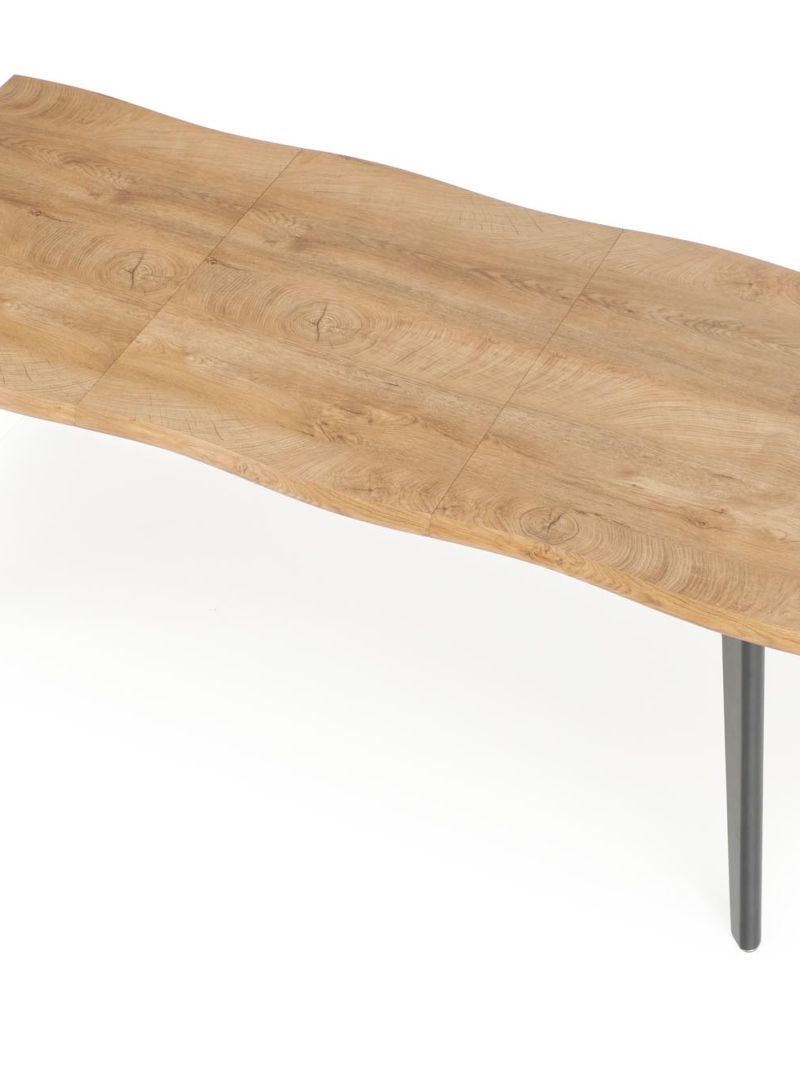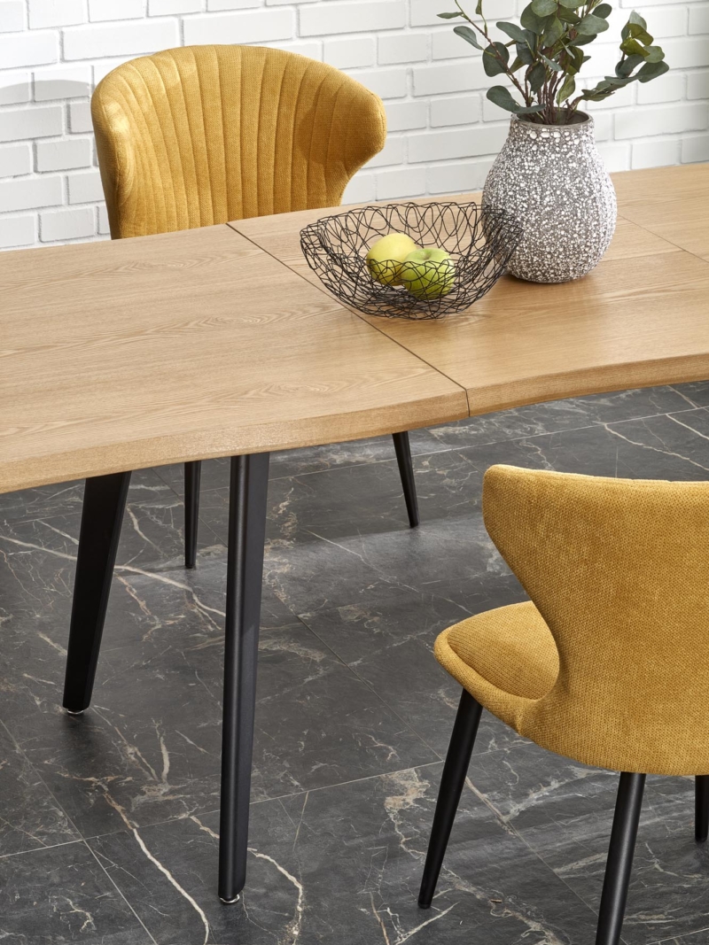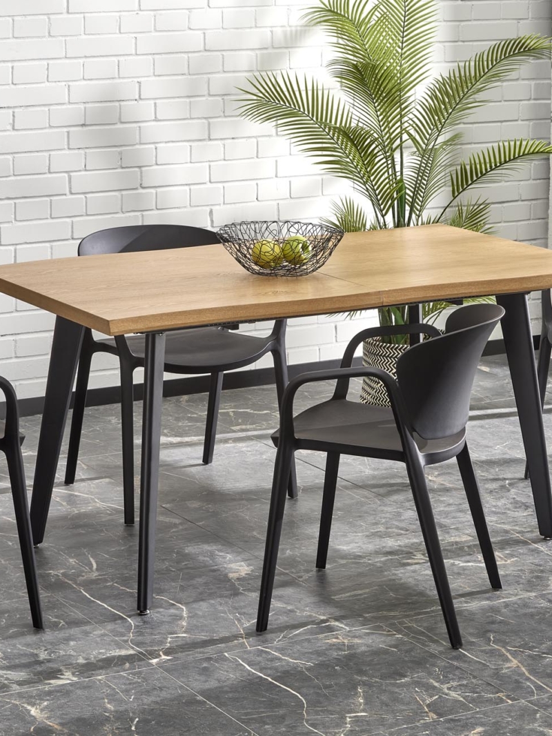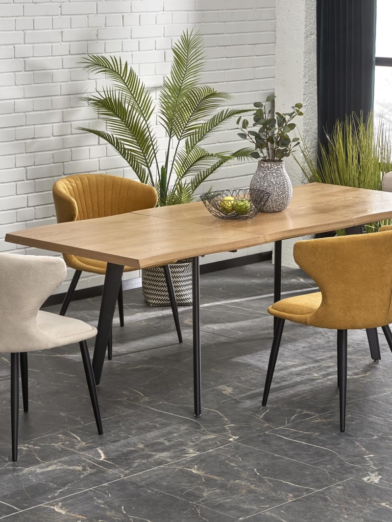 dimensions: 150-210/90/75 cm, extension table, material: laminated MDF / solid wood, color: top – natural oak, legs – black