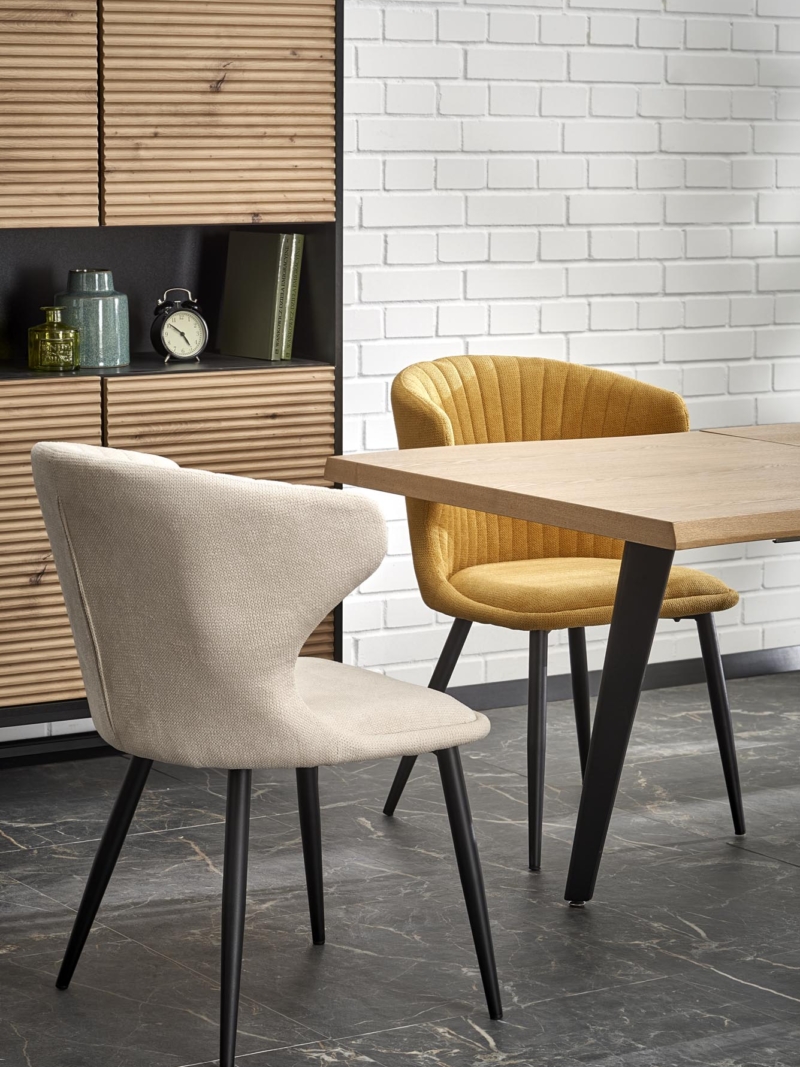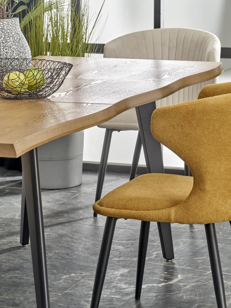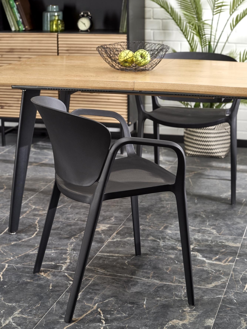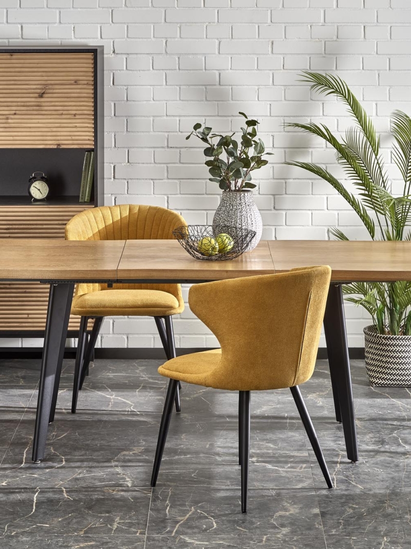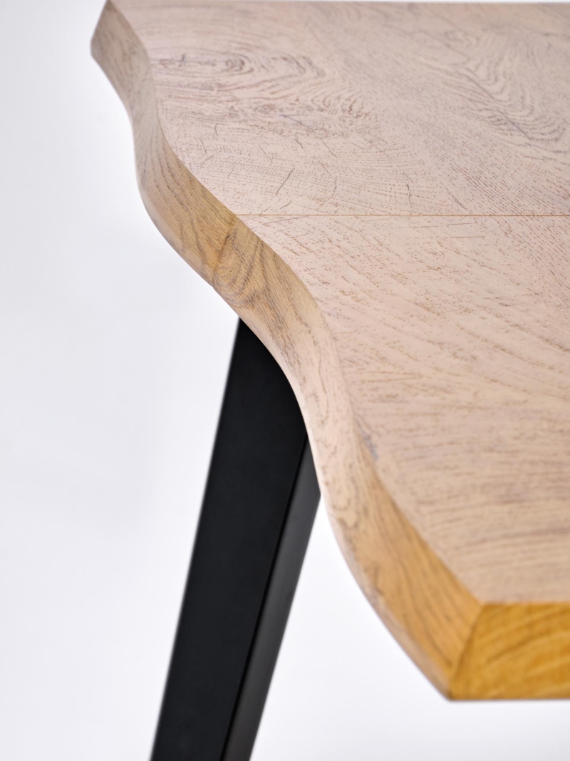 dimensions: 150-210/90/75 cm, extension table, material: laminated MDF / solid wood, color: top – natural oak, legs – black