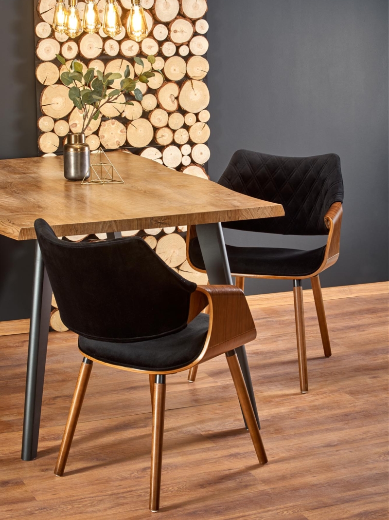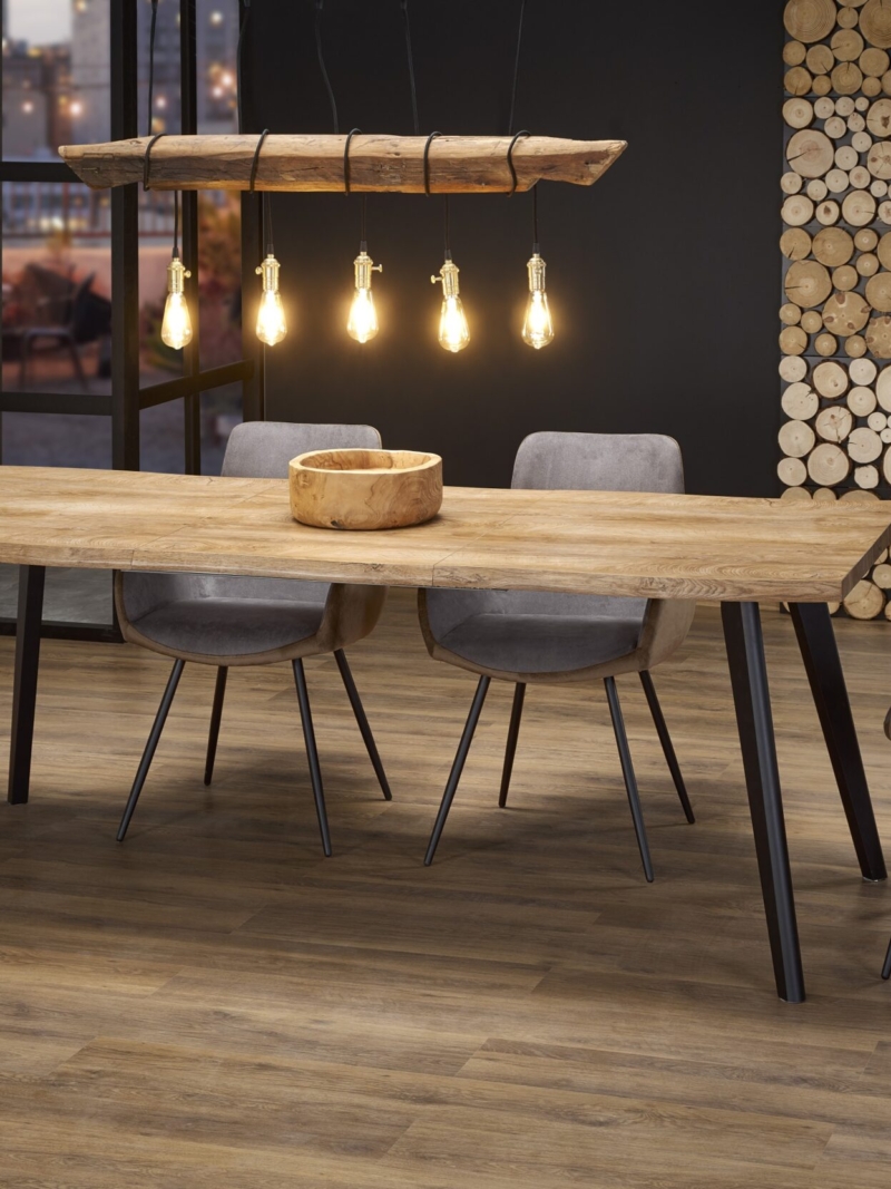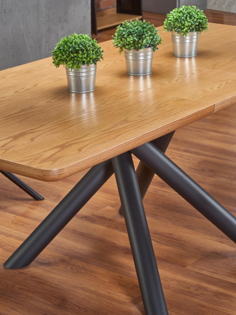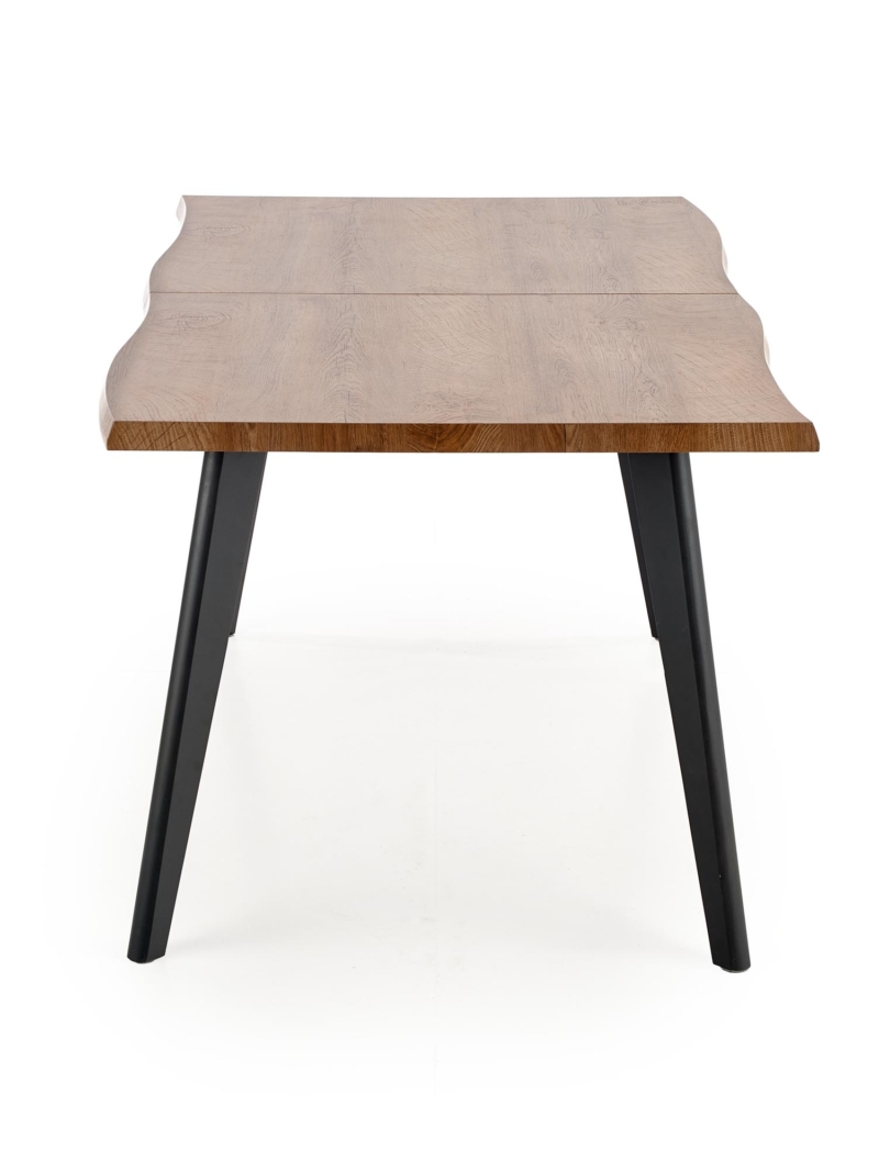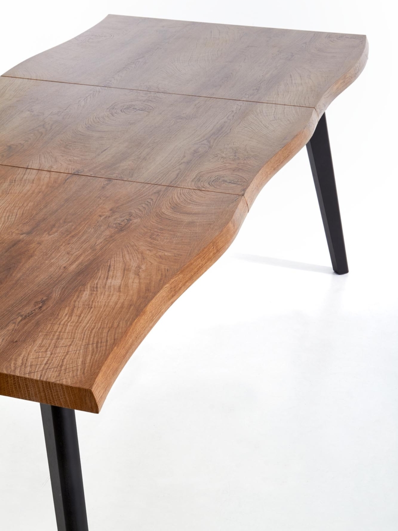 dimensions: 150-210/90/75 cm, extension table, material: laminated MDF / solid wood, color: top – natural oak, legs – black