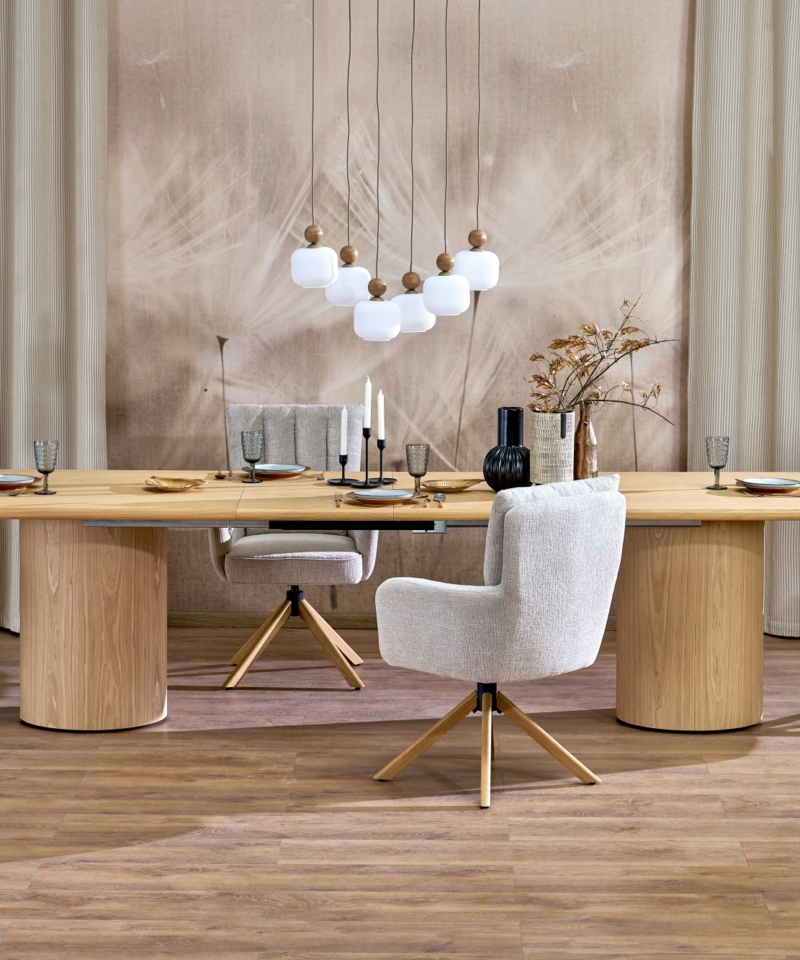 dimensions: 200-300/100/78 cm, extension table, material: laminated chipboard + natural oak veneer, color: top – natural, legs – natural