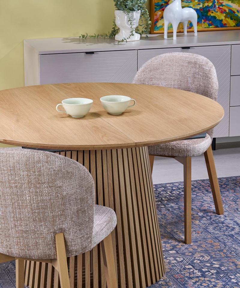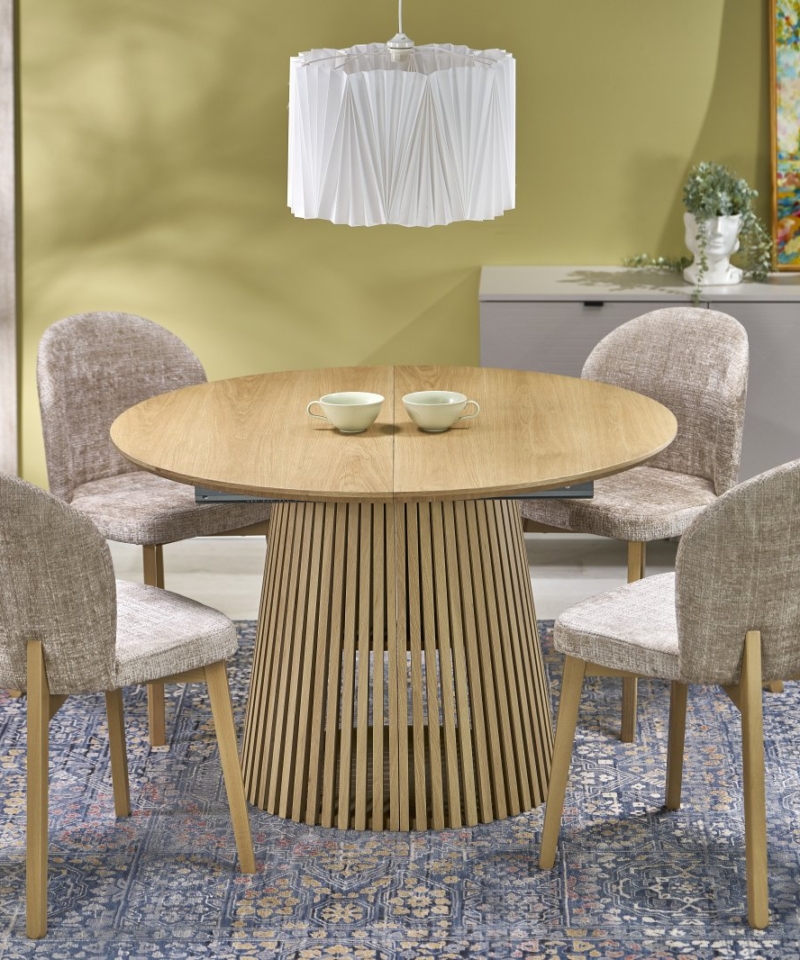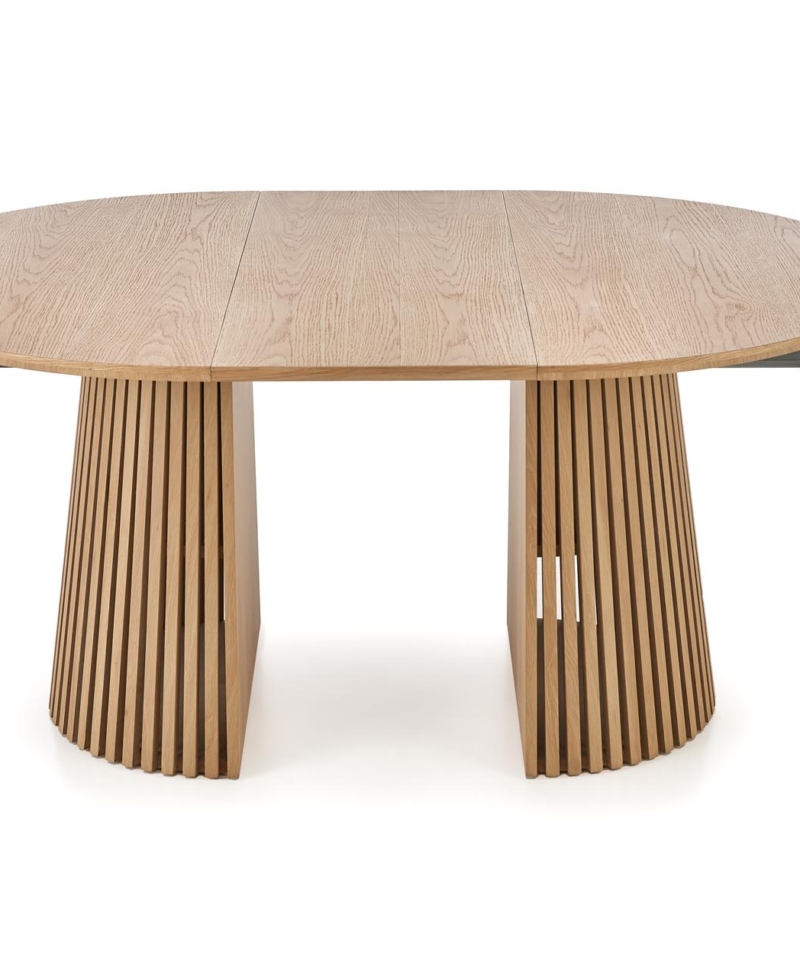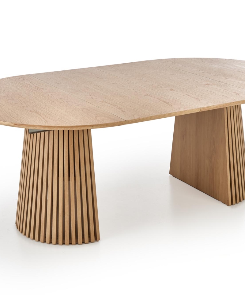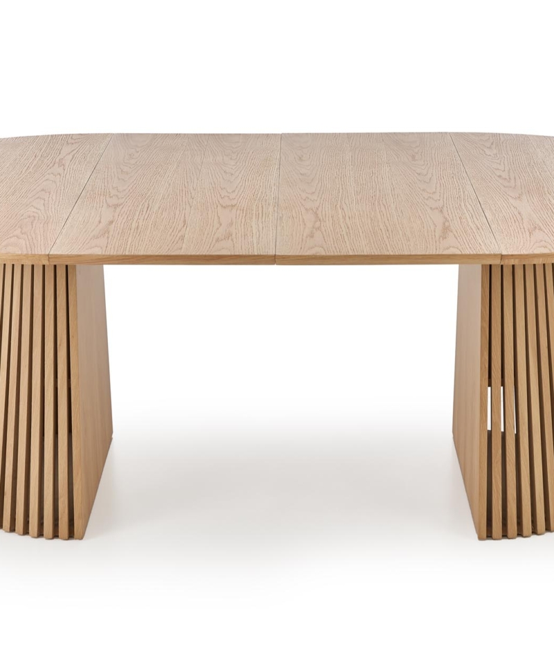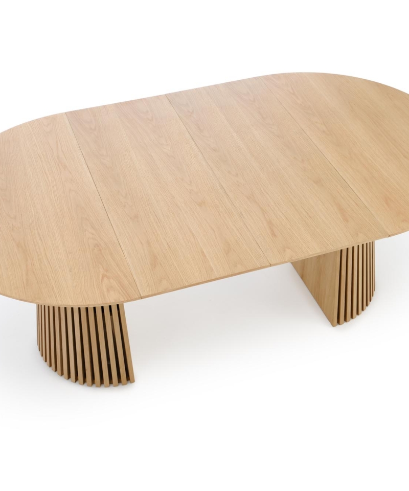 dimensions: 120-210/120/77 cm, extension table, material: MDF + natural veneer / laminated MDF, color: top – natural, legs – natural