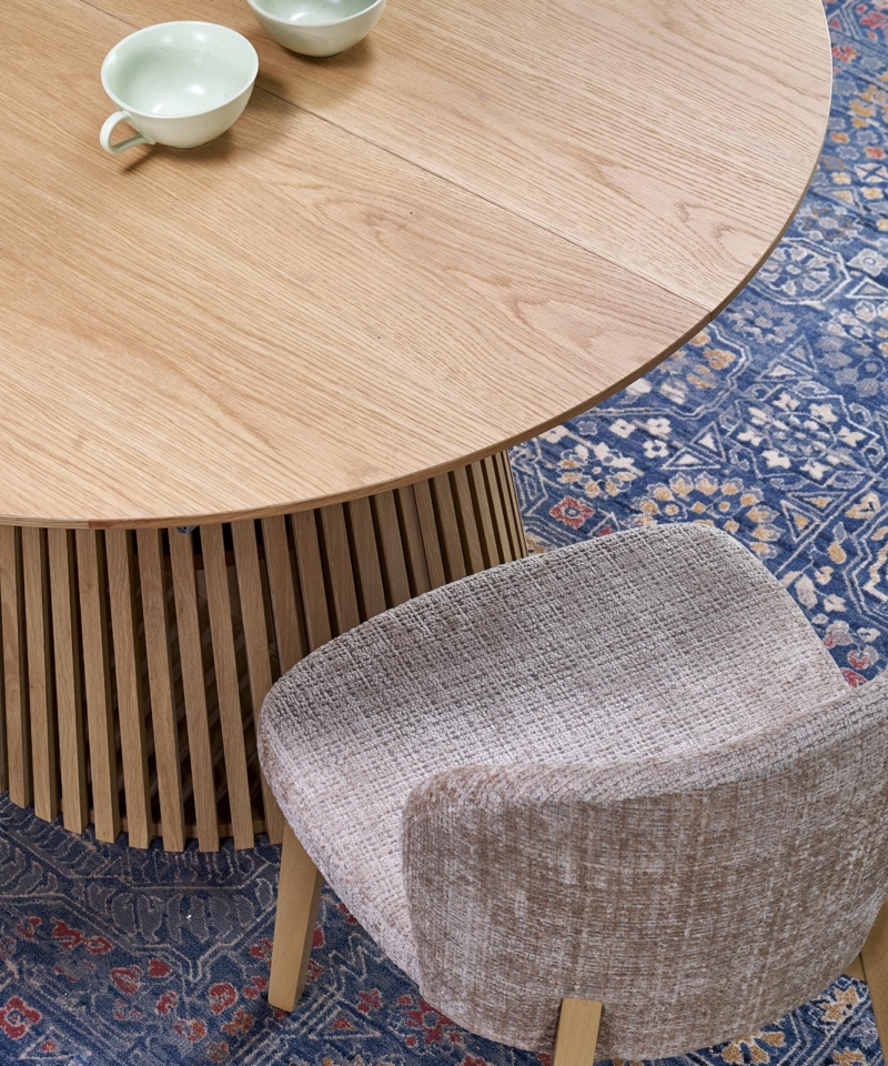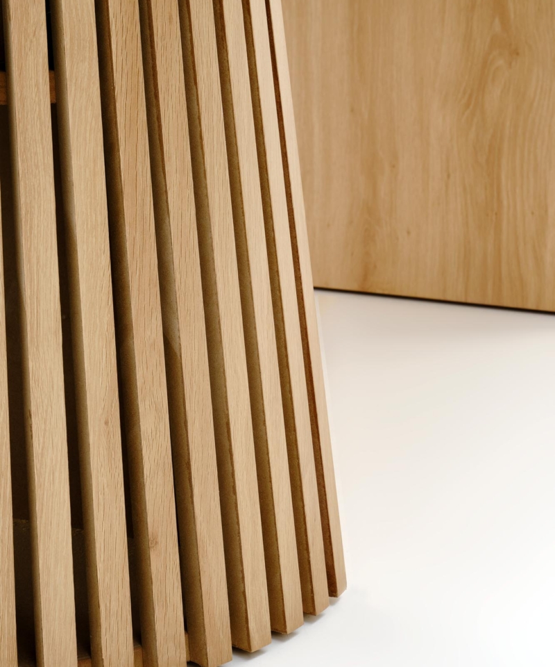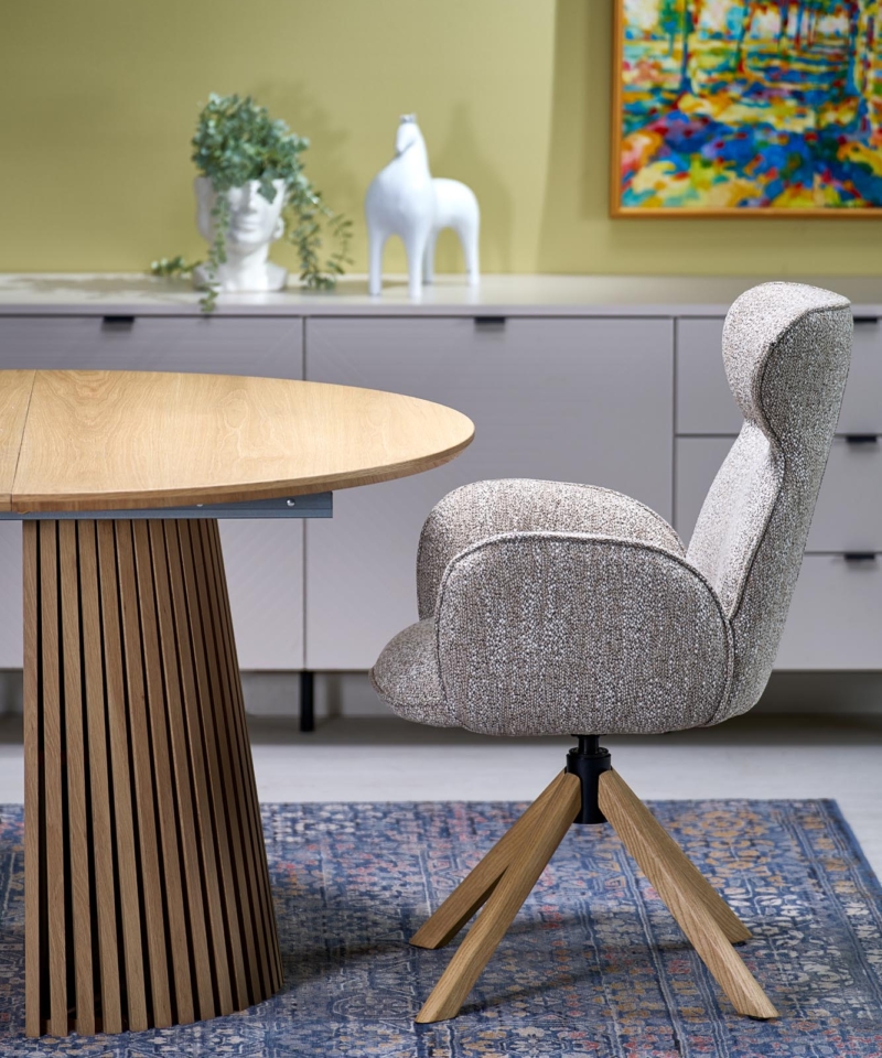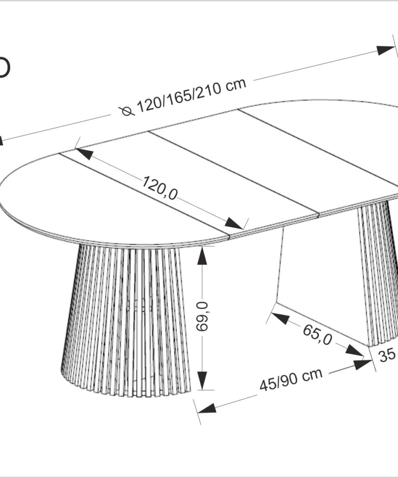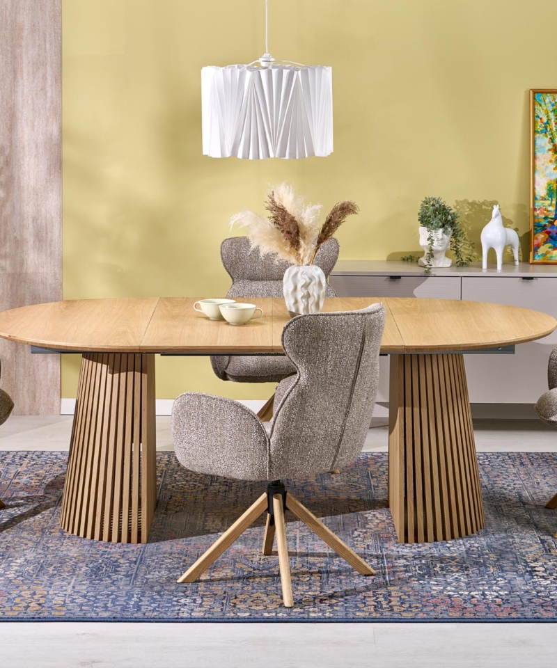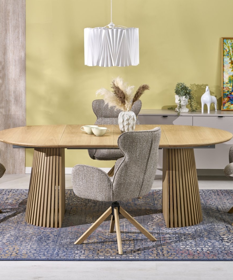 dimensions: 120-210/120/77 cm, extension table, material: MDF + natural veneer / laminated MDF, color: top – natural, legs – natural