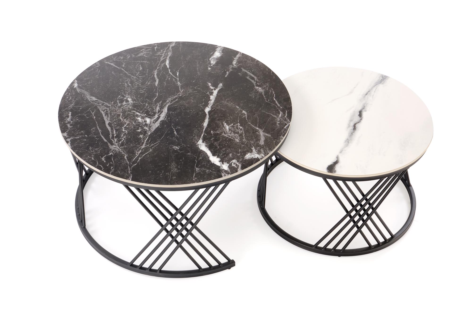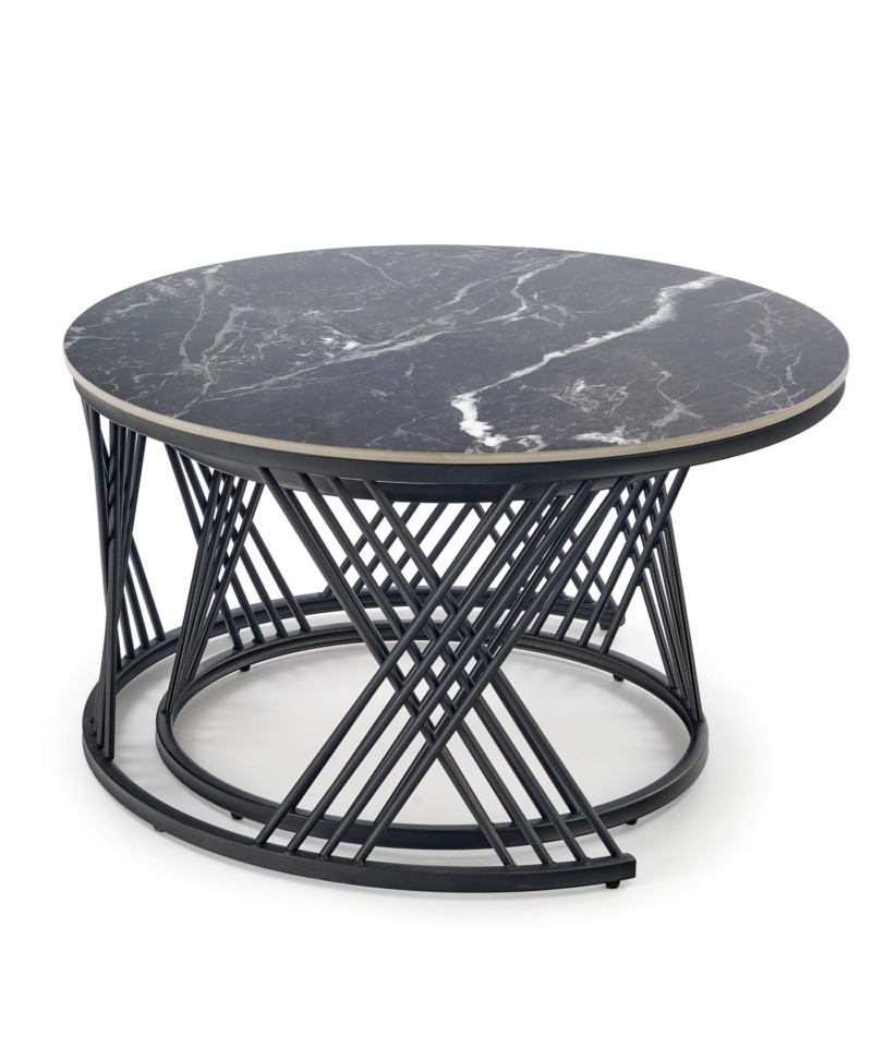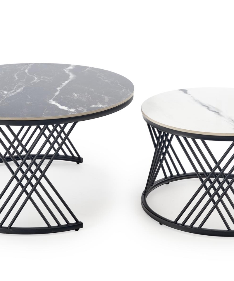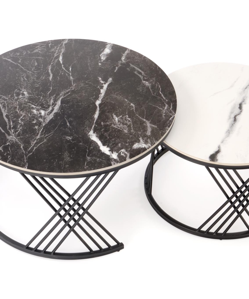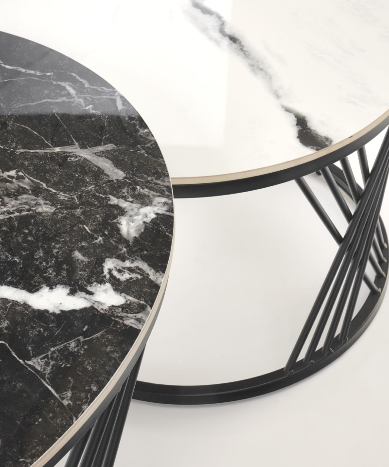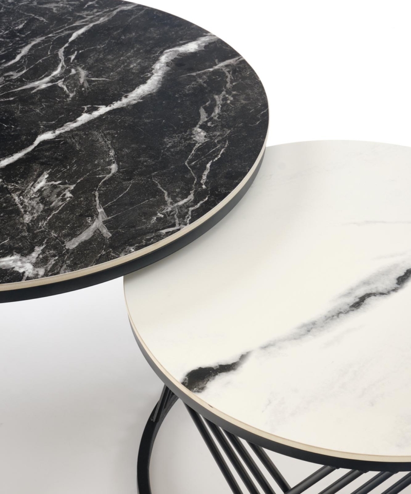 FLAMINGO set of 2 coffee tables, black marble / white marble / black