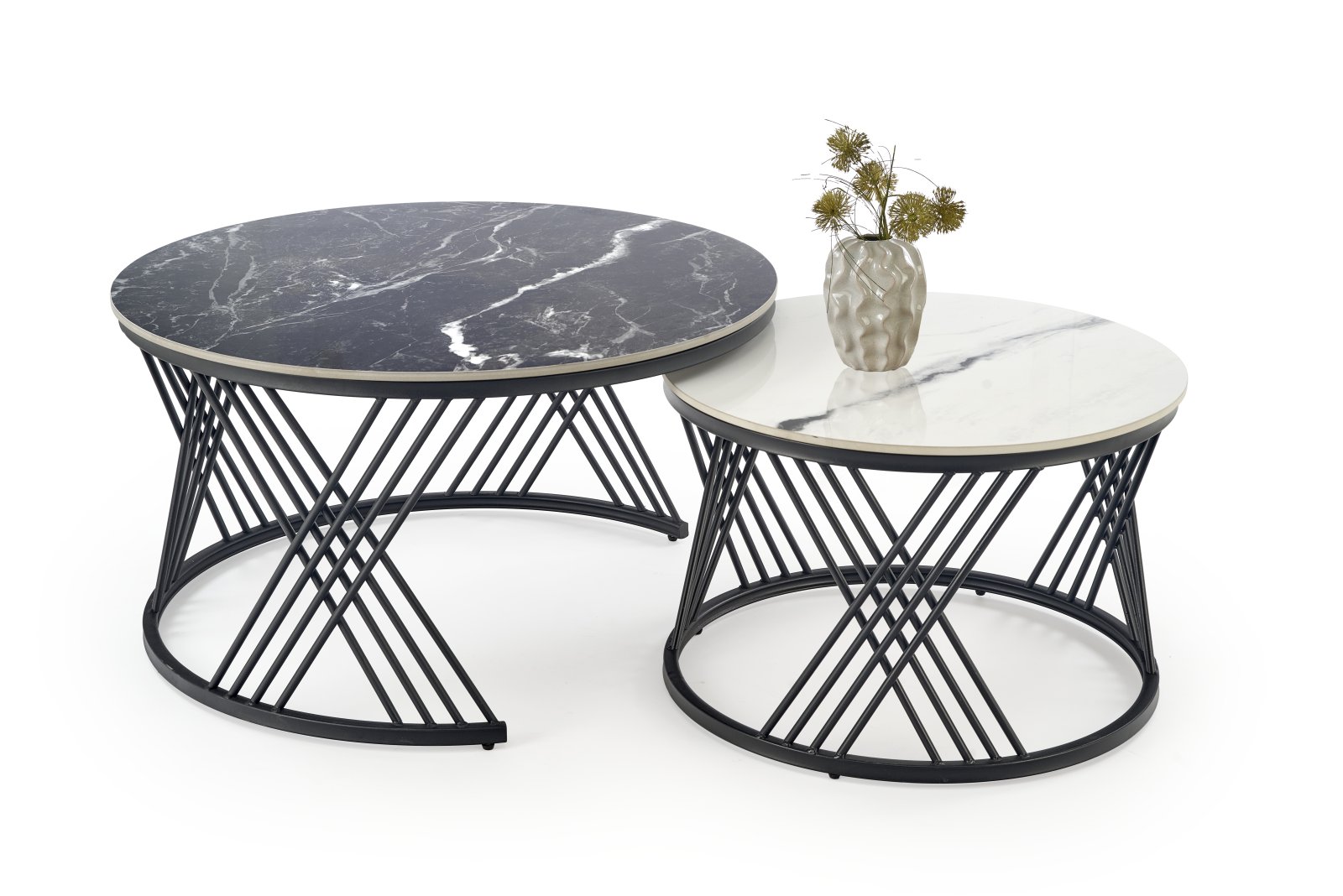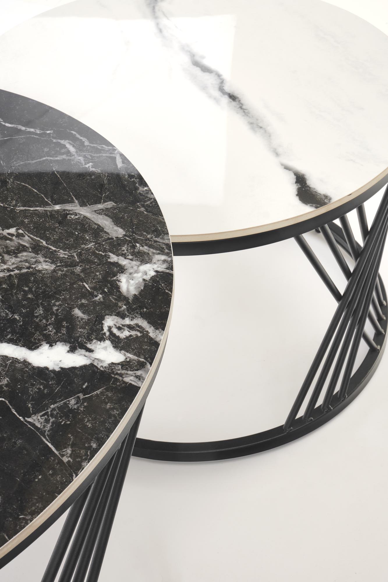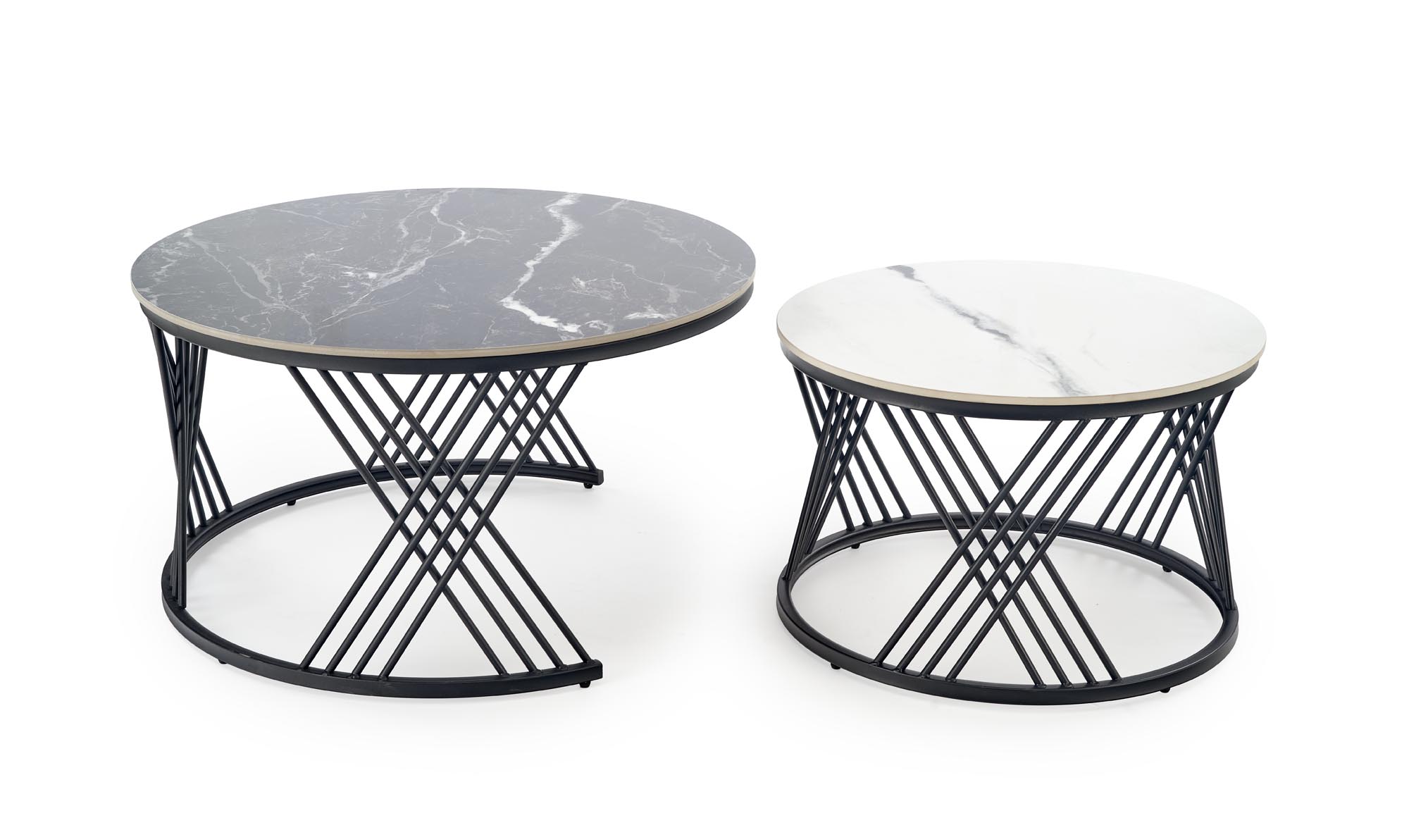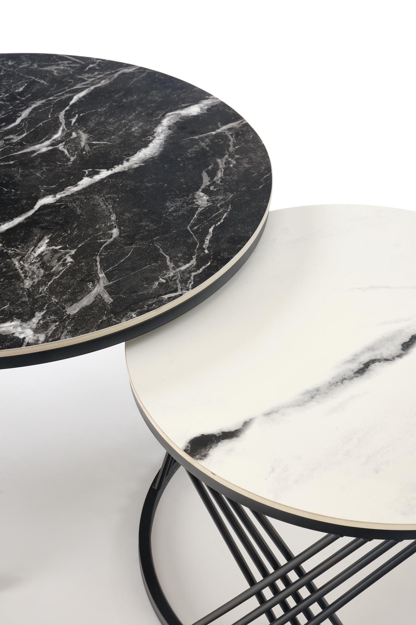 FLAMINGO set of 2 coffee tables, black marble / white marble / black
