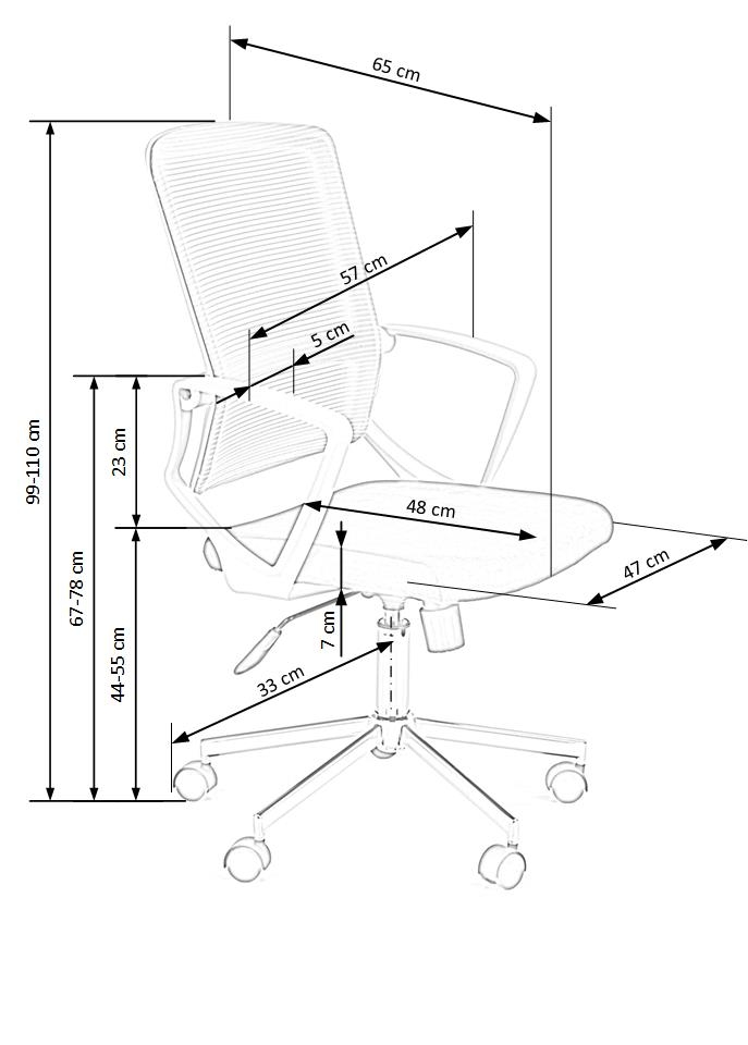 dimensions: 7/65/99-110/44-55 cm, TILT mechanism / adjustable lumbart support, cloth / mesh color: light grey / black