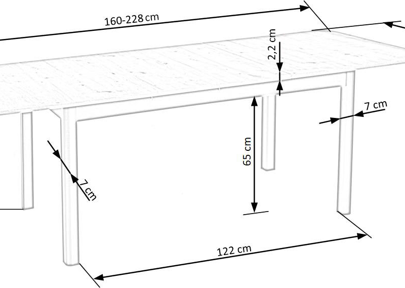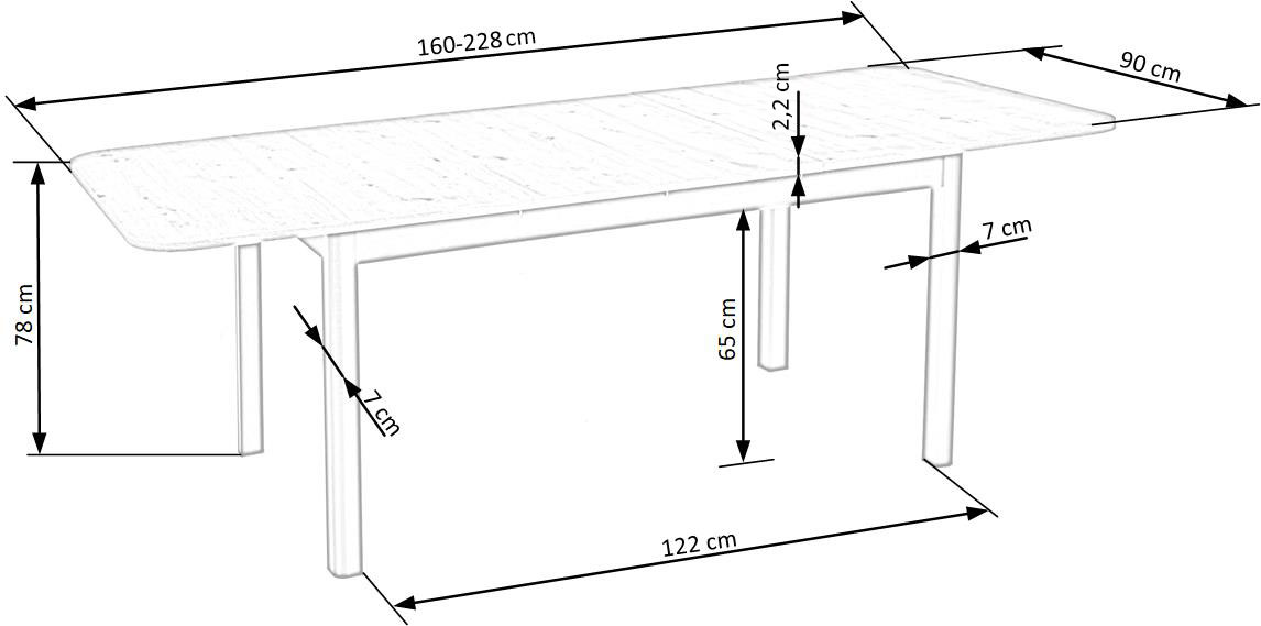 dimensions: 160-228/90/78 cm, extension table, material: laminated chipboard / laminated MDF, color: top – white, legs – white