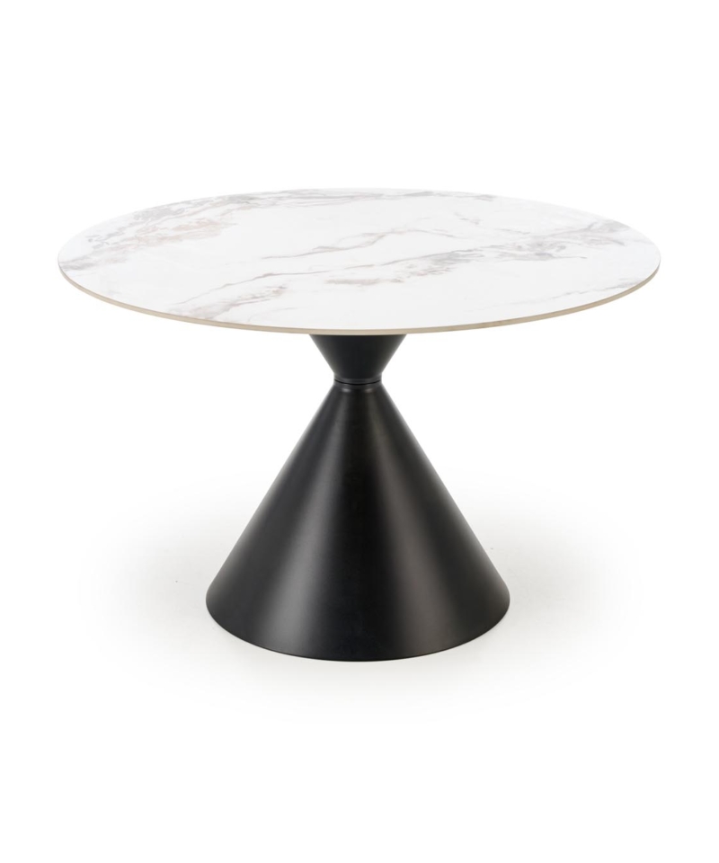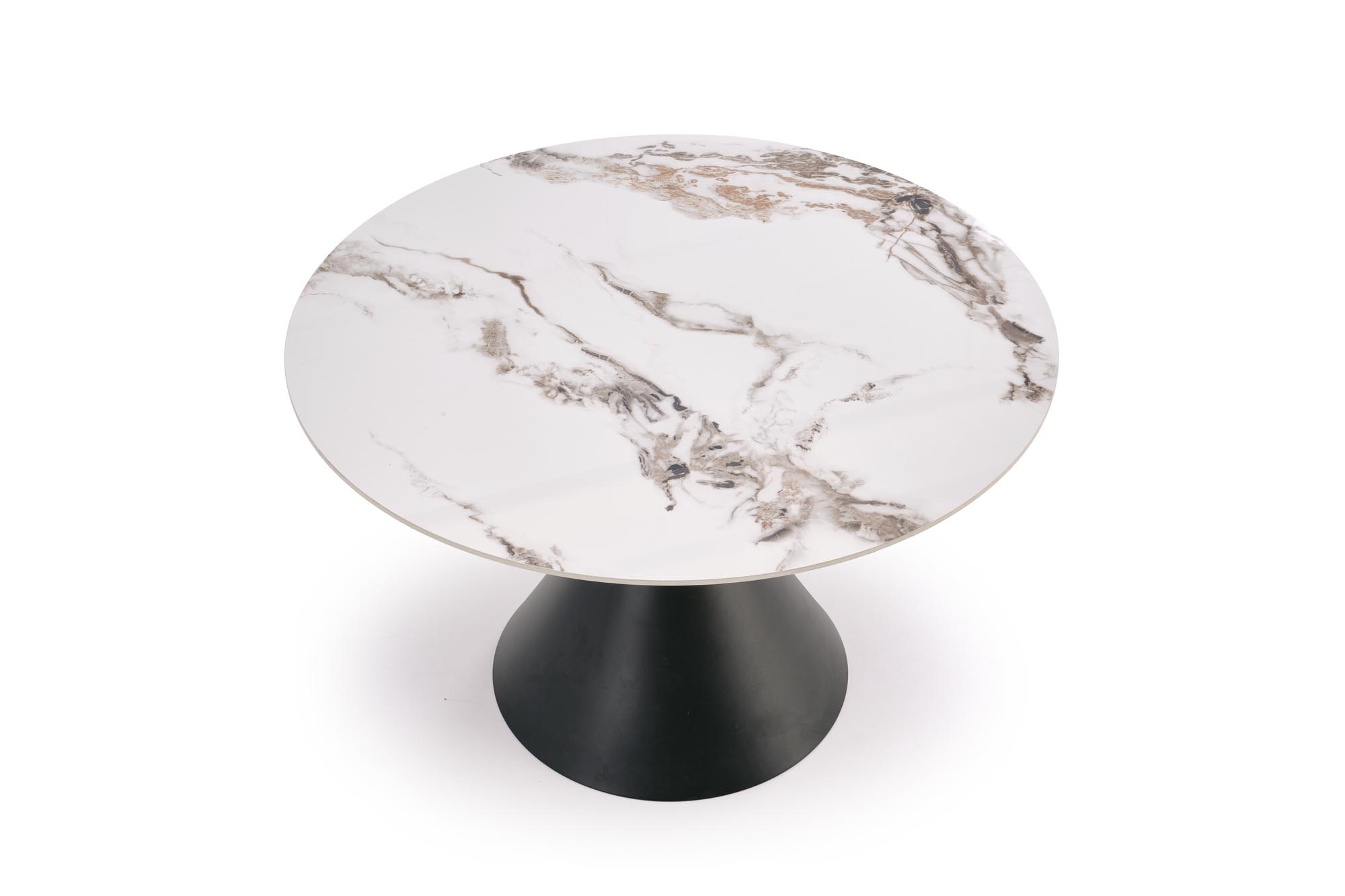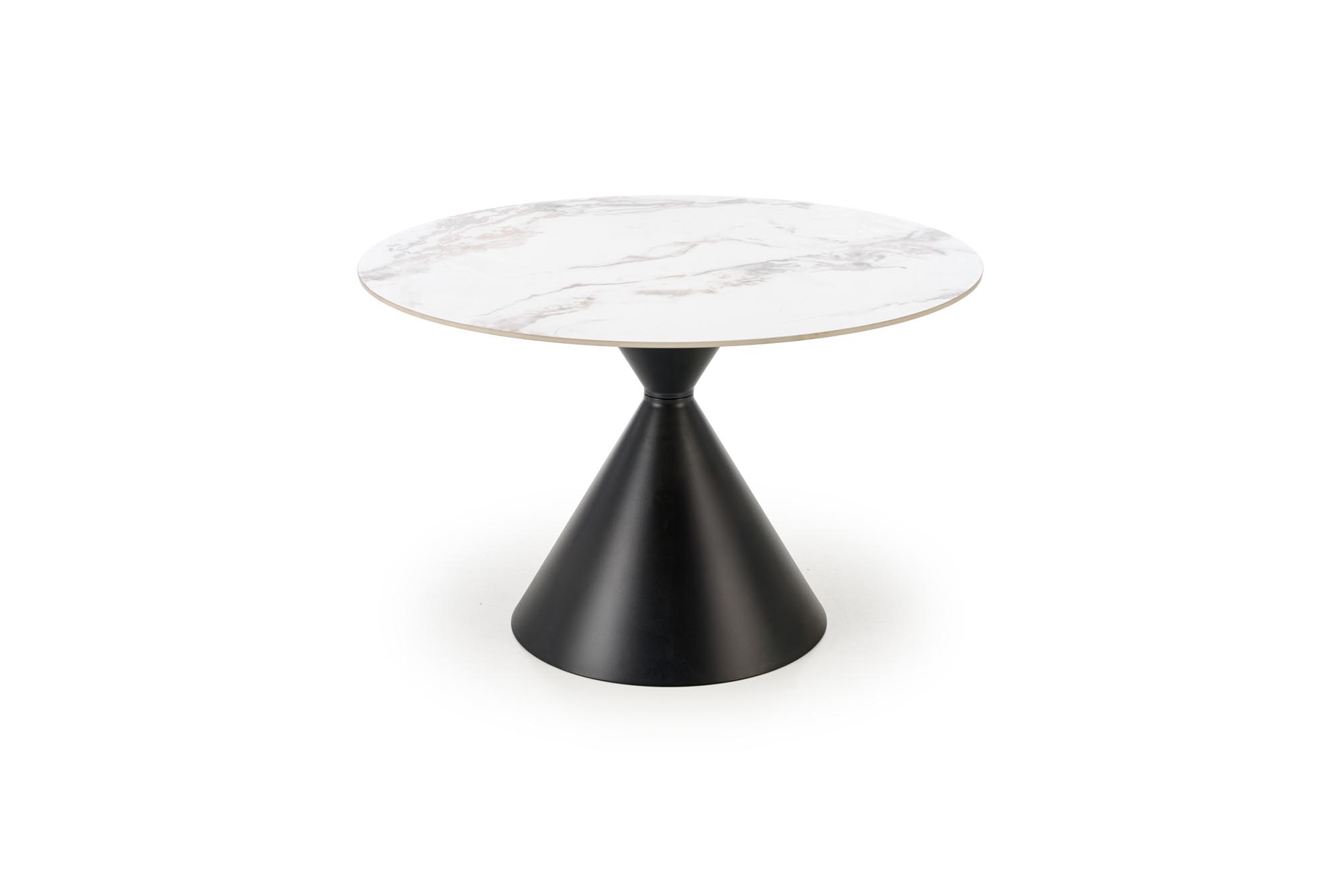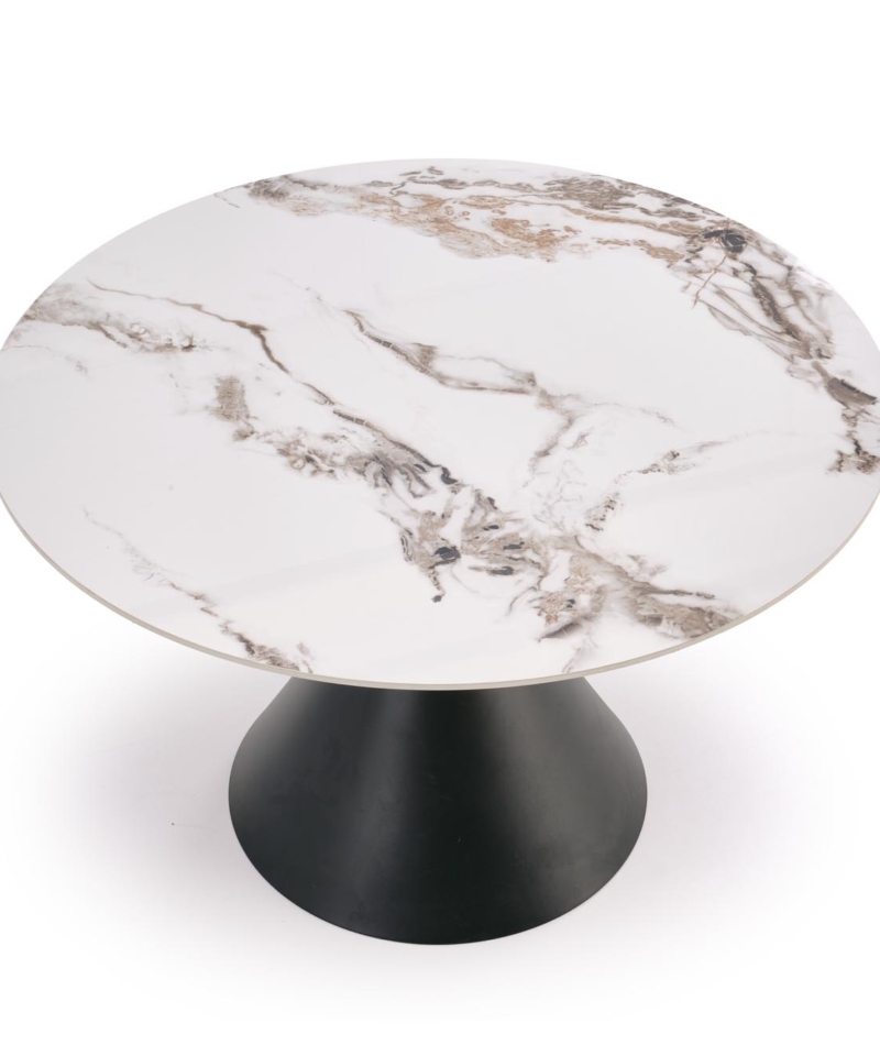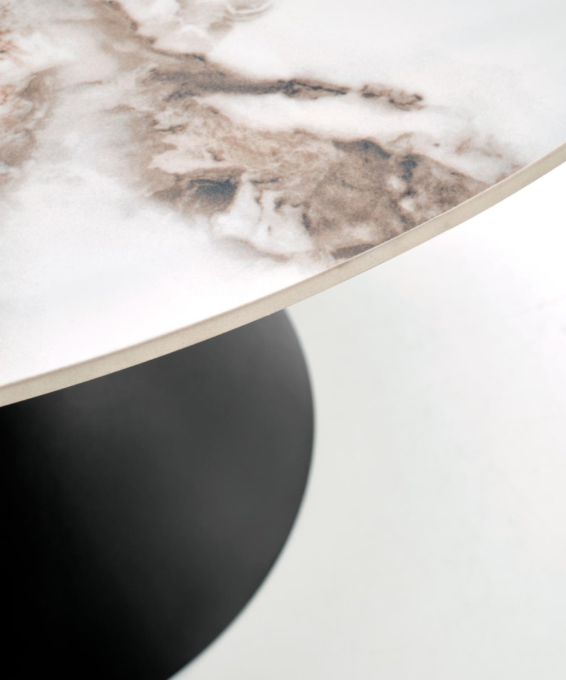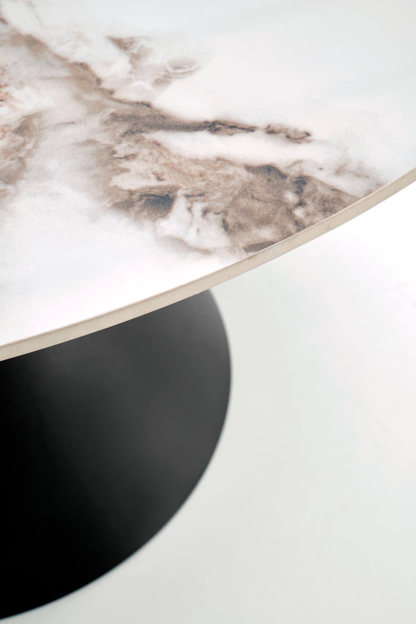 dimensions: fi120/76 cm, material: sintered stone / powder coated steel, color: top – white marble, legs – black