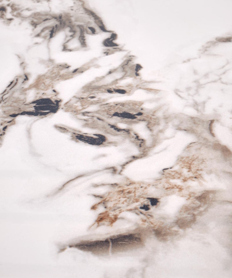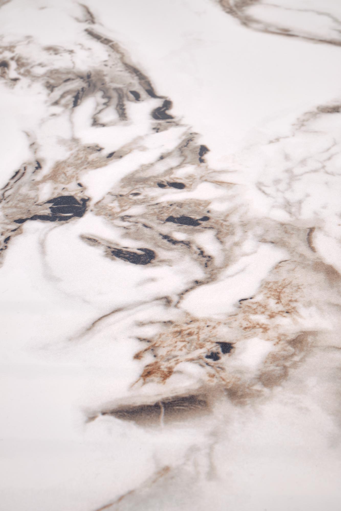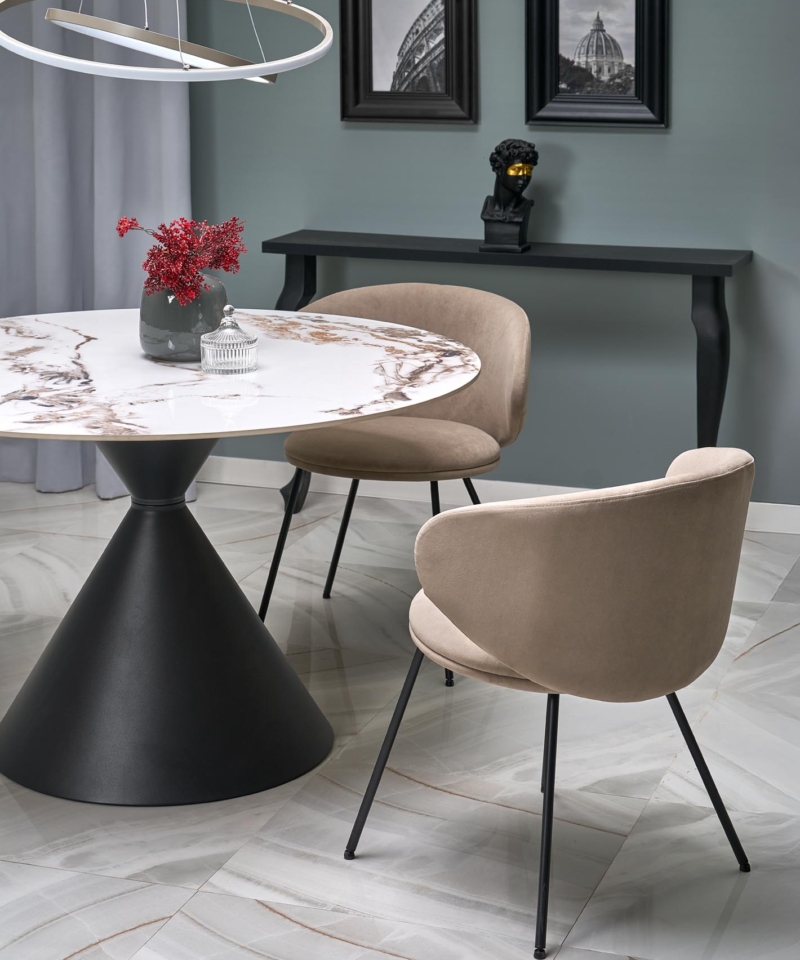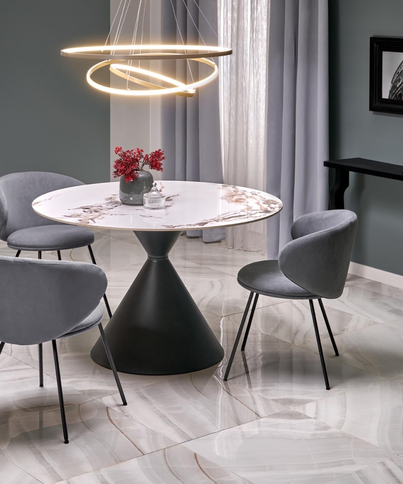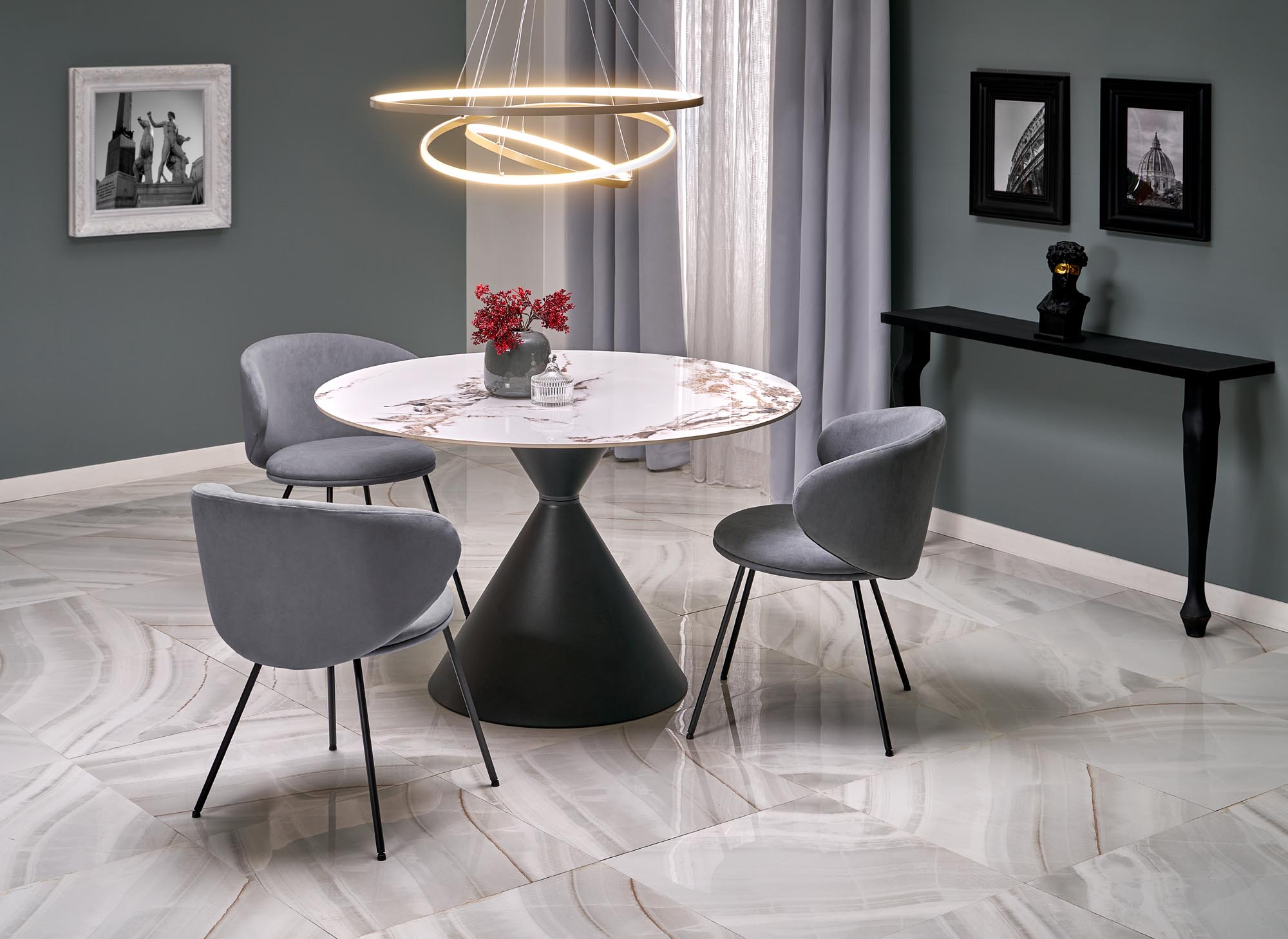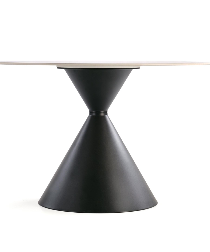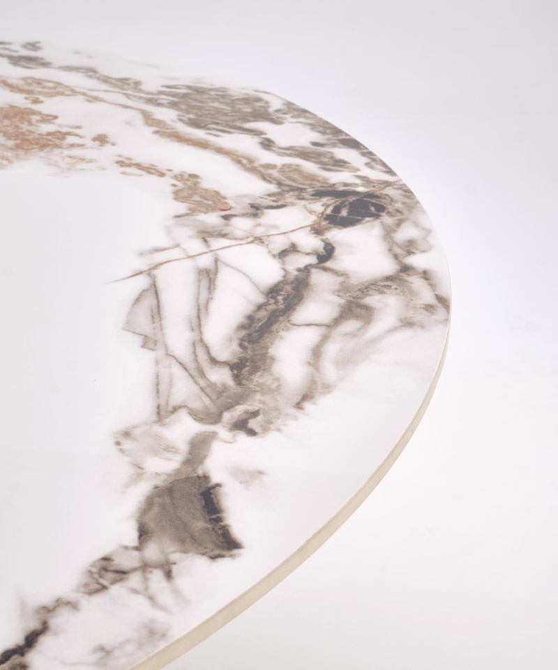 dimensions: fi120/76 cm, material: sintered stone / powder coated steel, color: top – white marble, legs – black