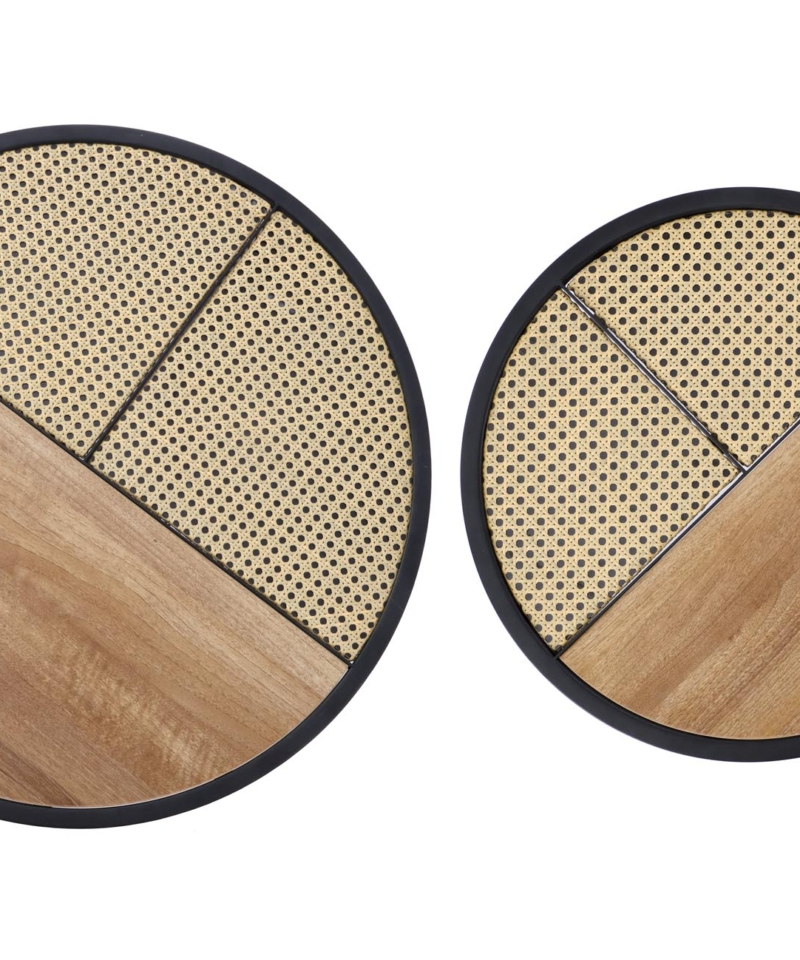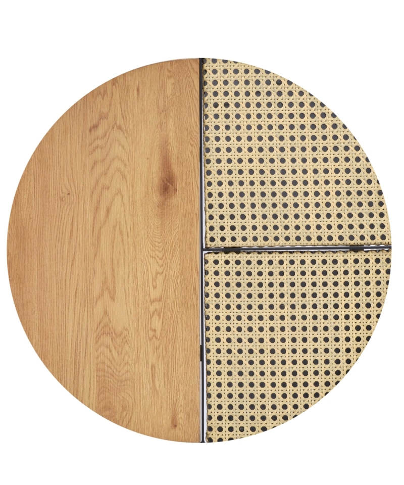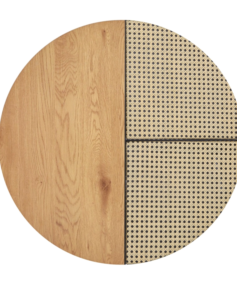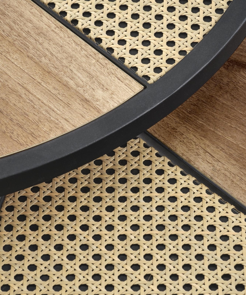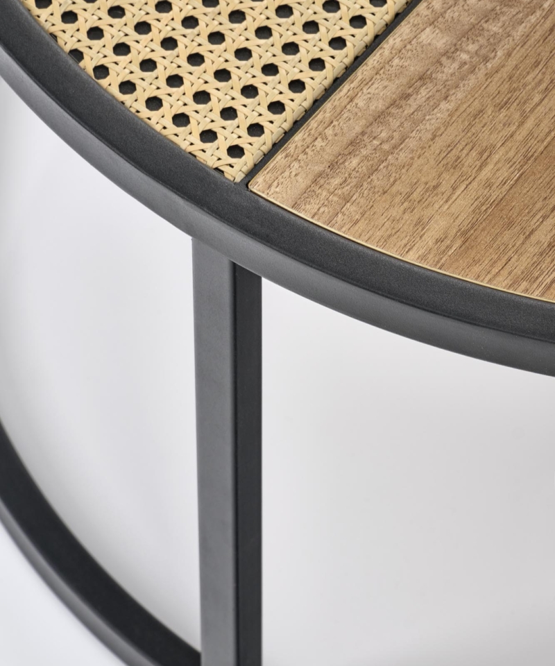 dimensions: fi 70/36 oraz fi 50/30 cm, set of two coffee tables, material: lamianted MDF / powder coated steel, color: golden oak / black