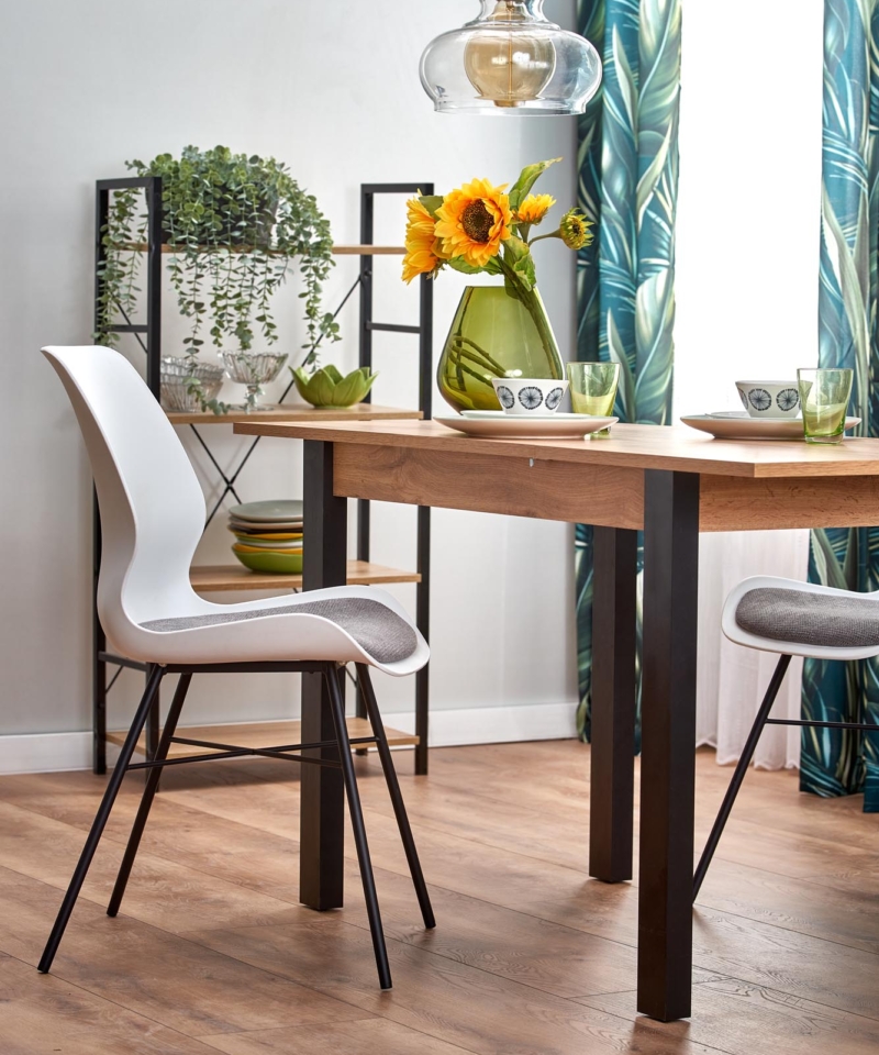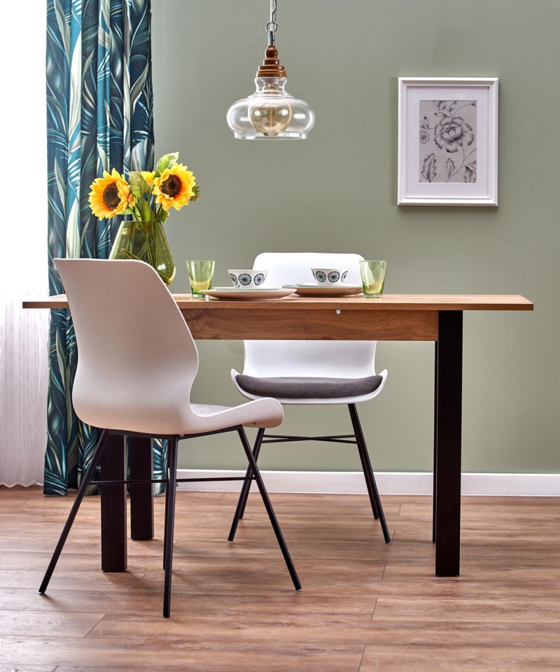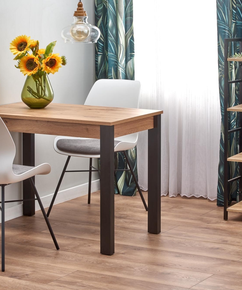 dimensions: 100-135/60/75 cm, extension table, material: laminated chipboard, color: top – votan oak, legs – black