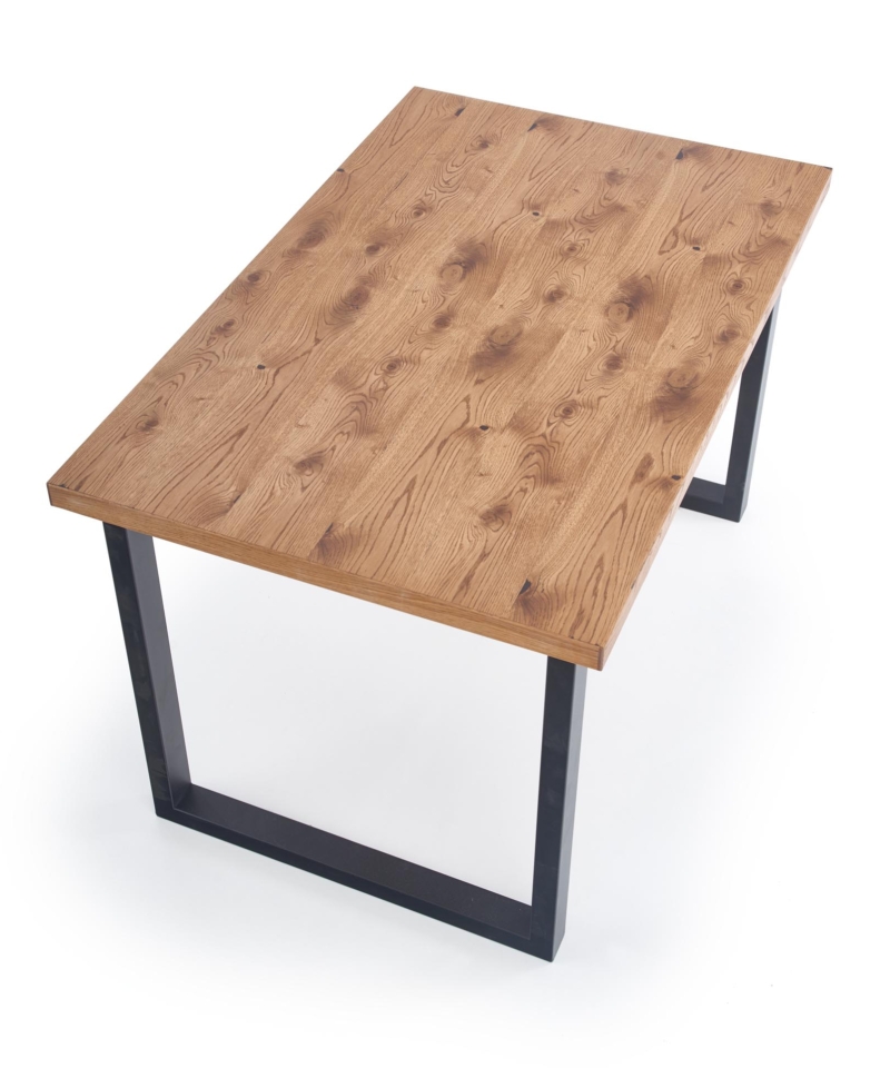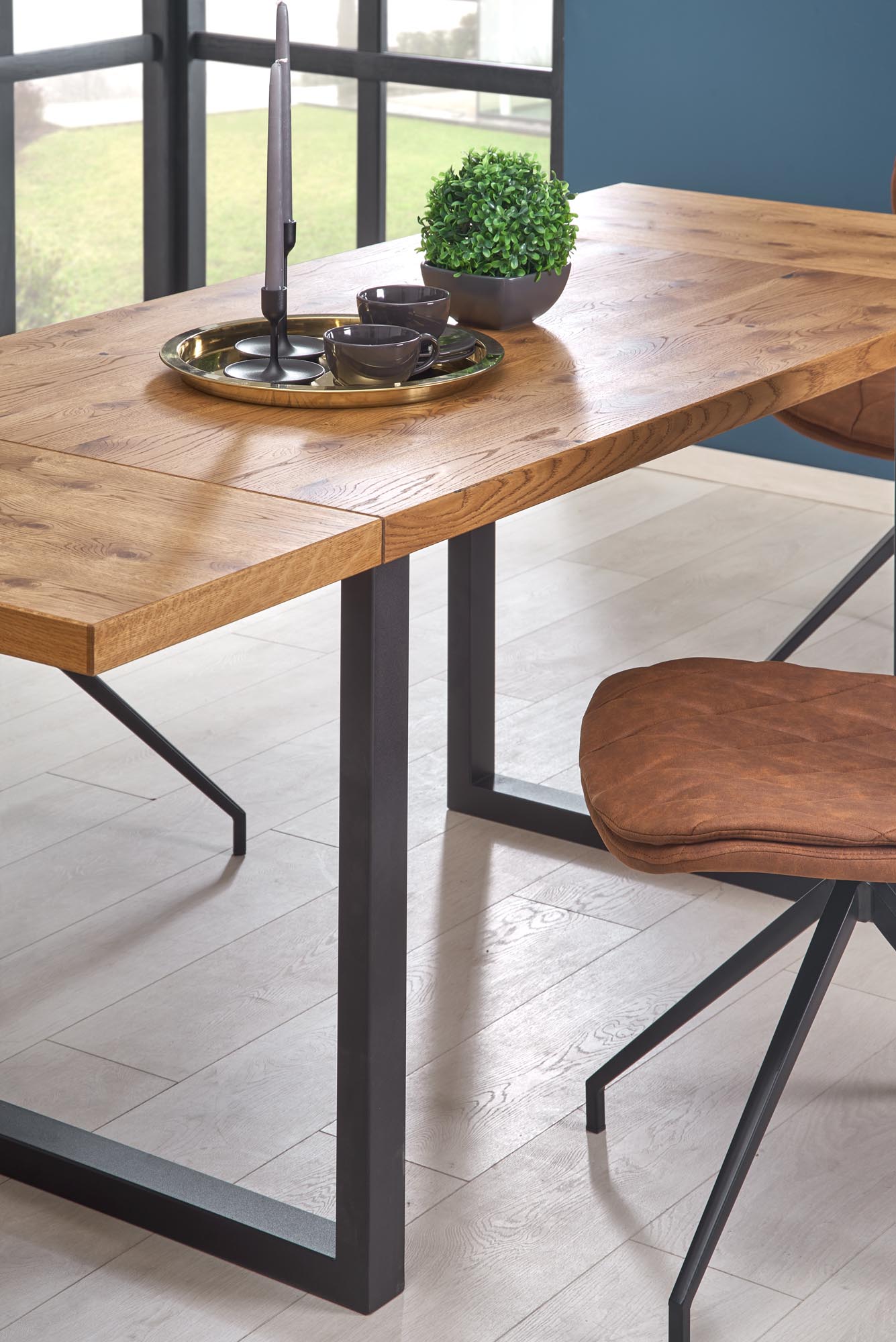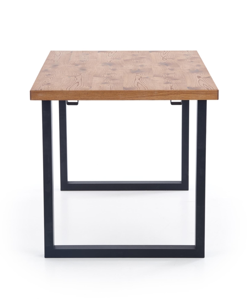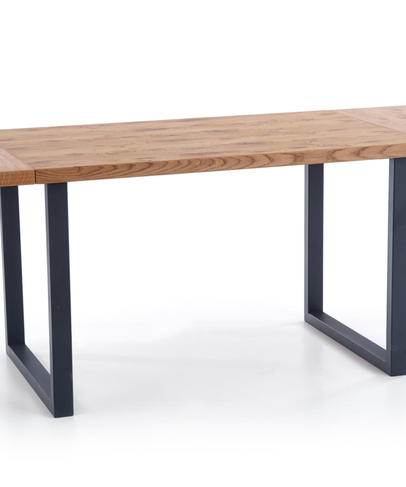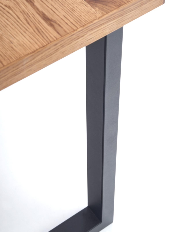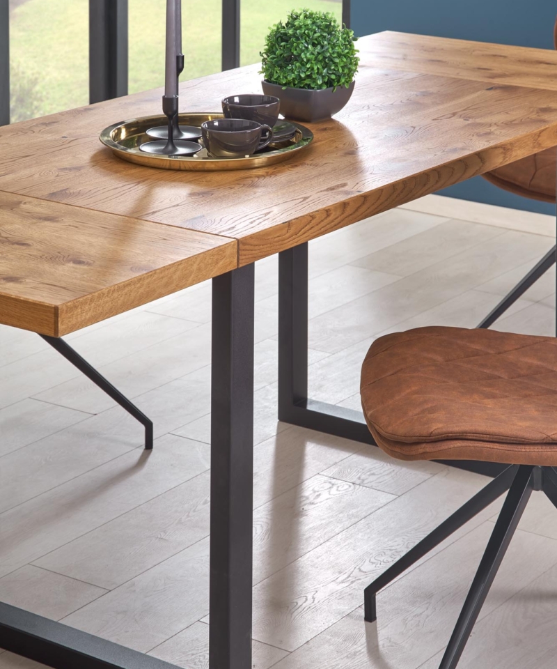 dimensions: 126÷206/80/76 cm, extension table, material: top – vaneered board, solid wood on edges, legs – powder coated steel, color: top – light oak, legs – black