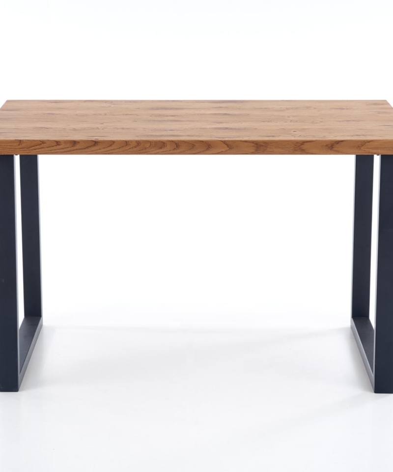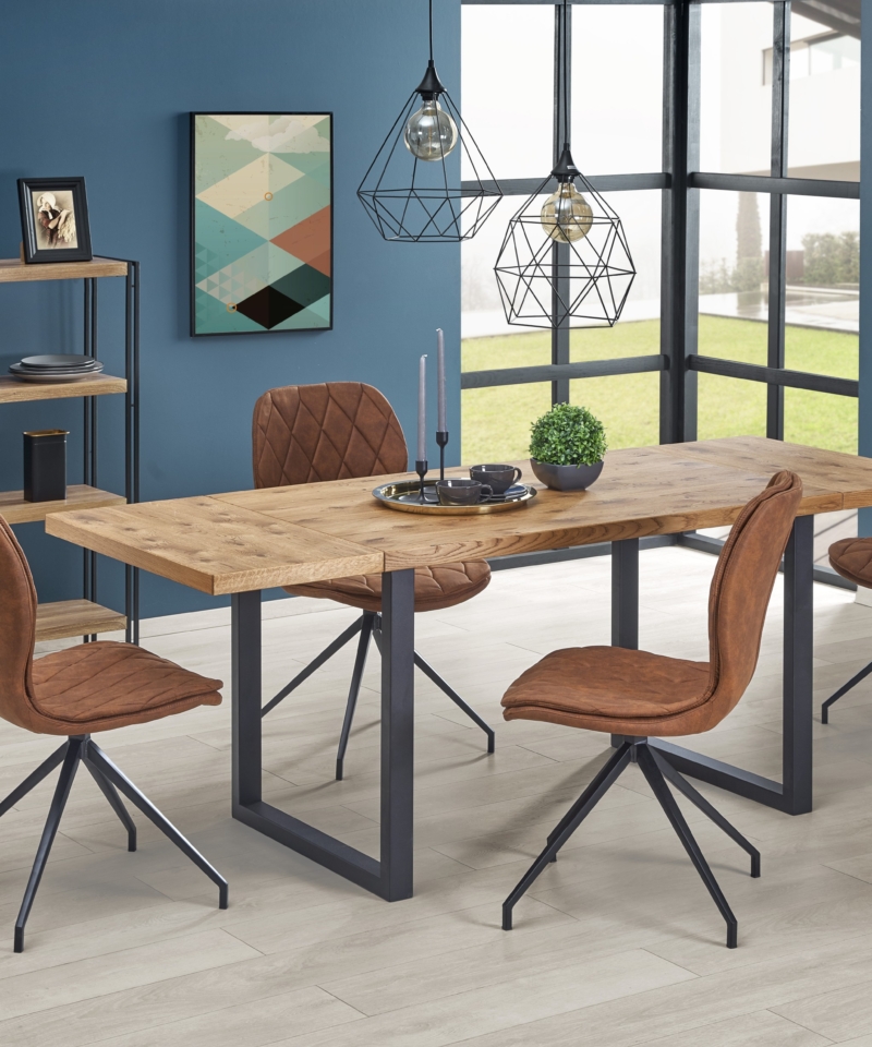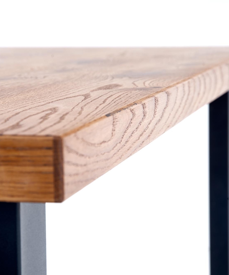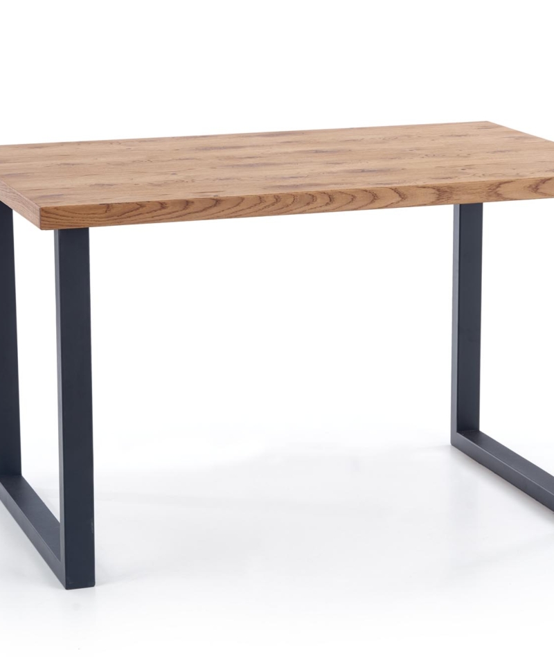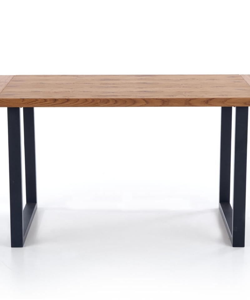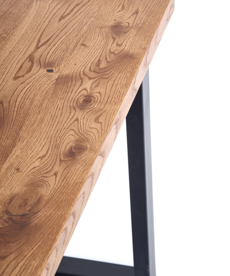 dimensions: 126÷206/80/76 cm, extension table, material: top – vaneered board, solid wood on edges, legs – powder coated steel, color: top – light oak, legs – black