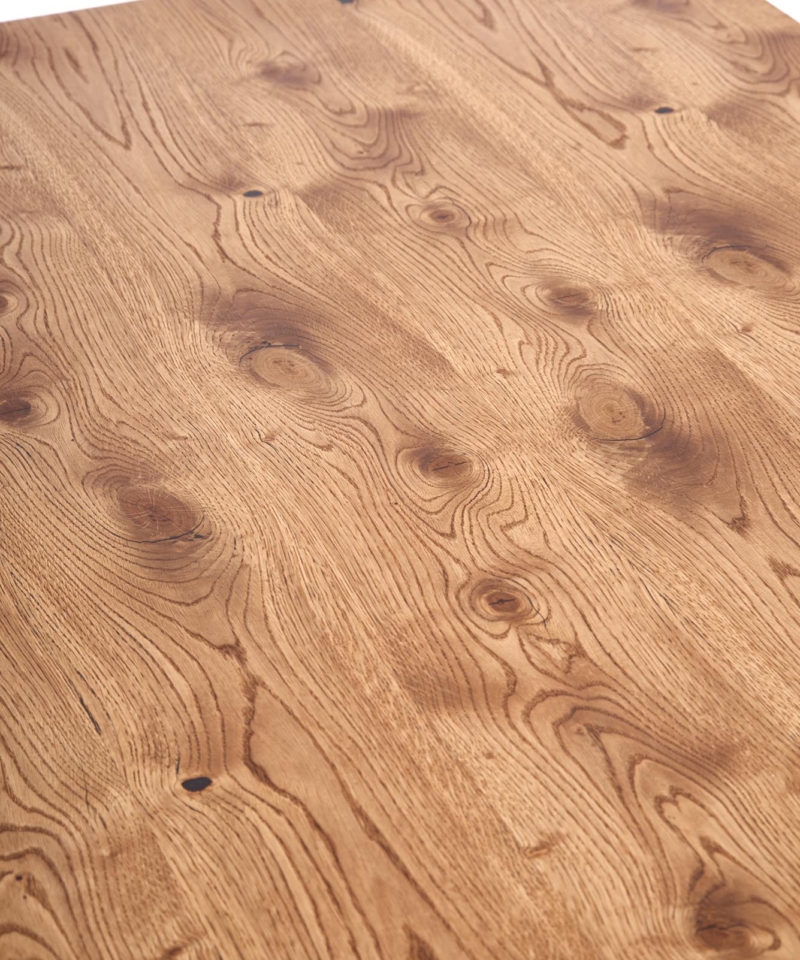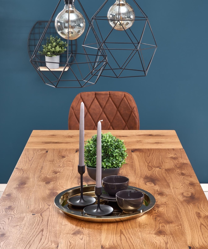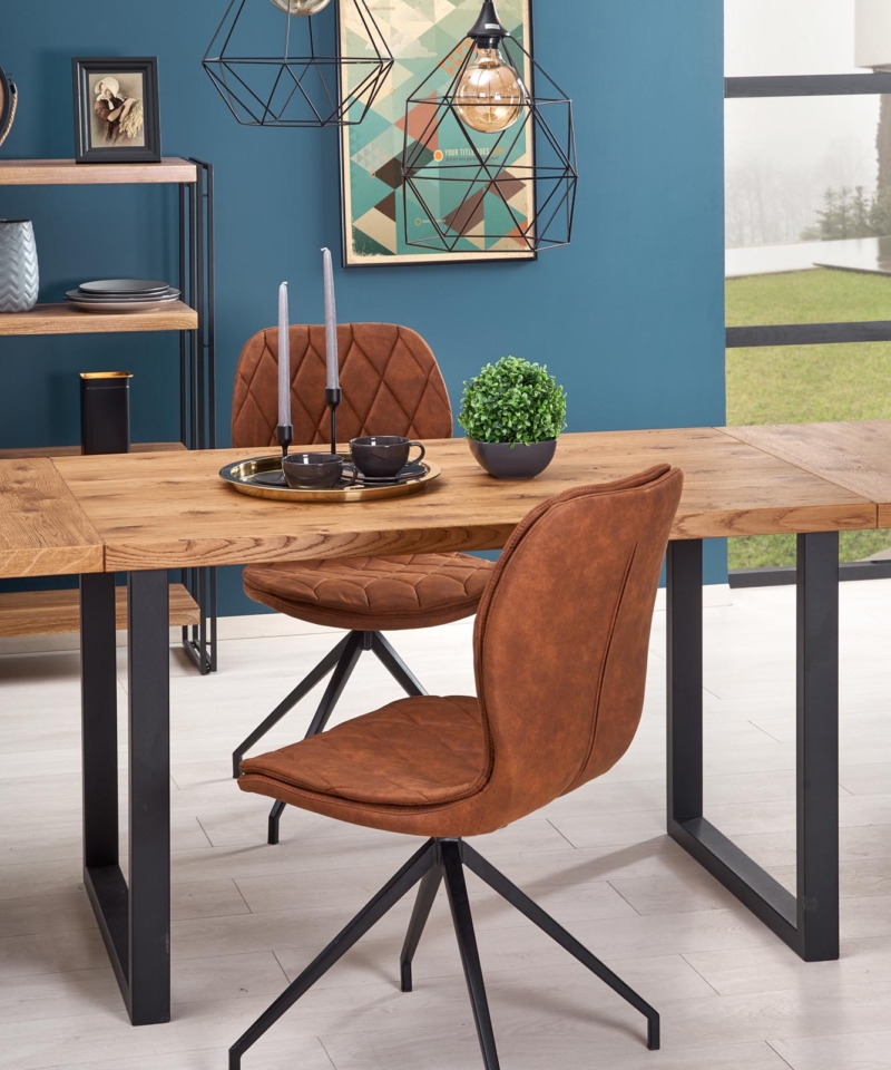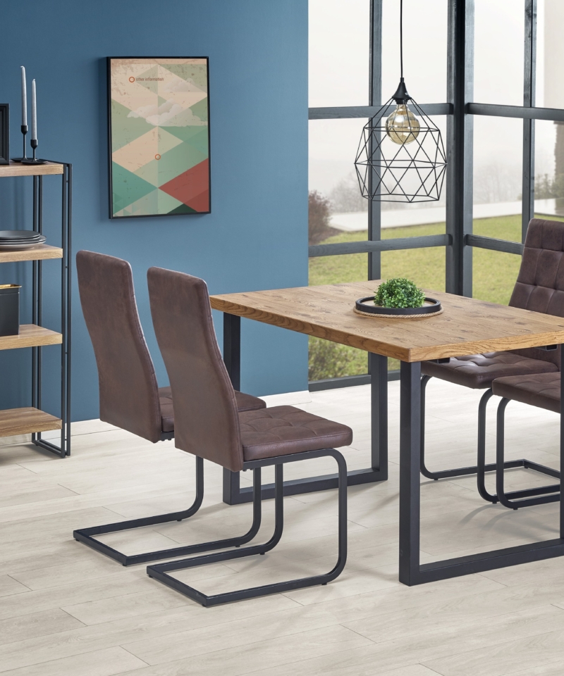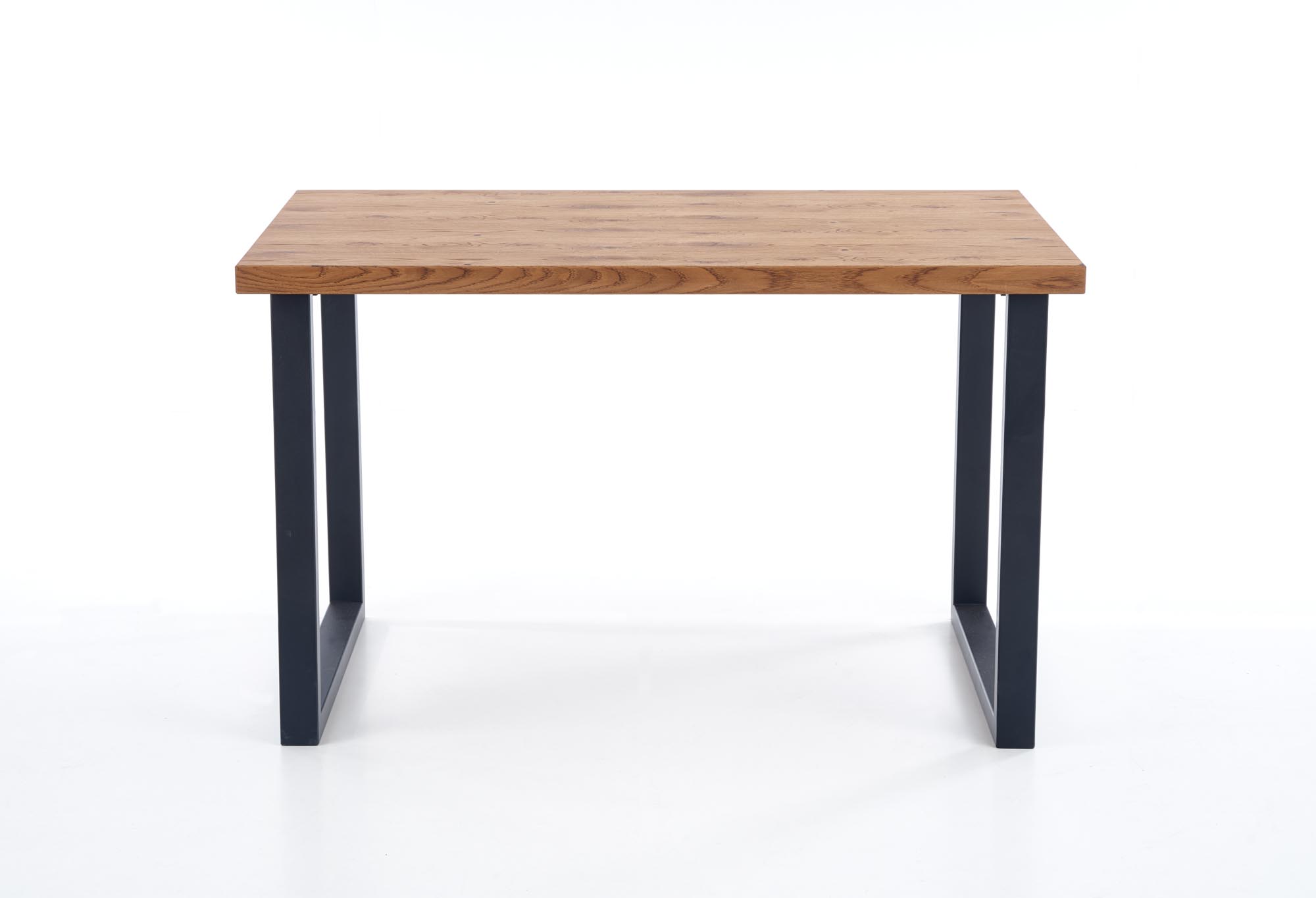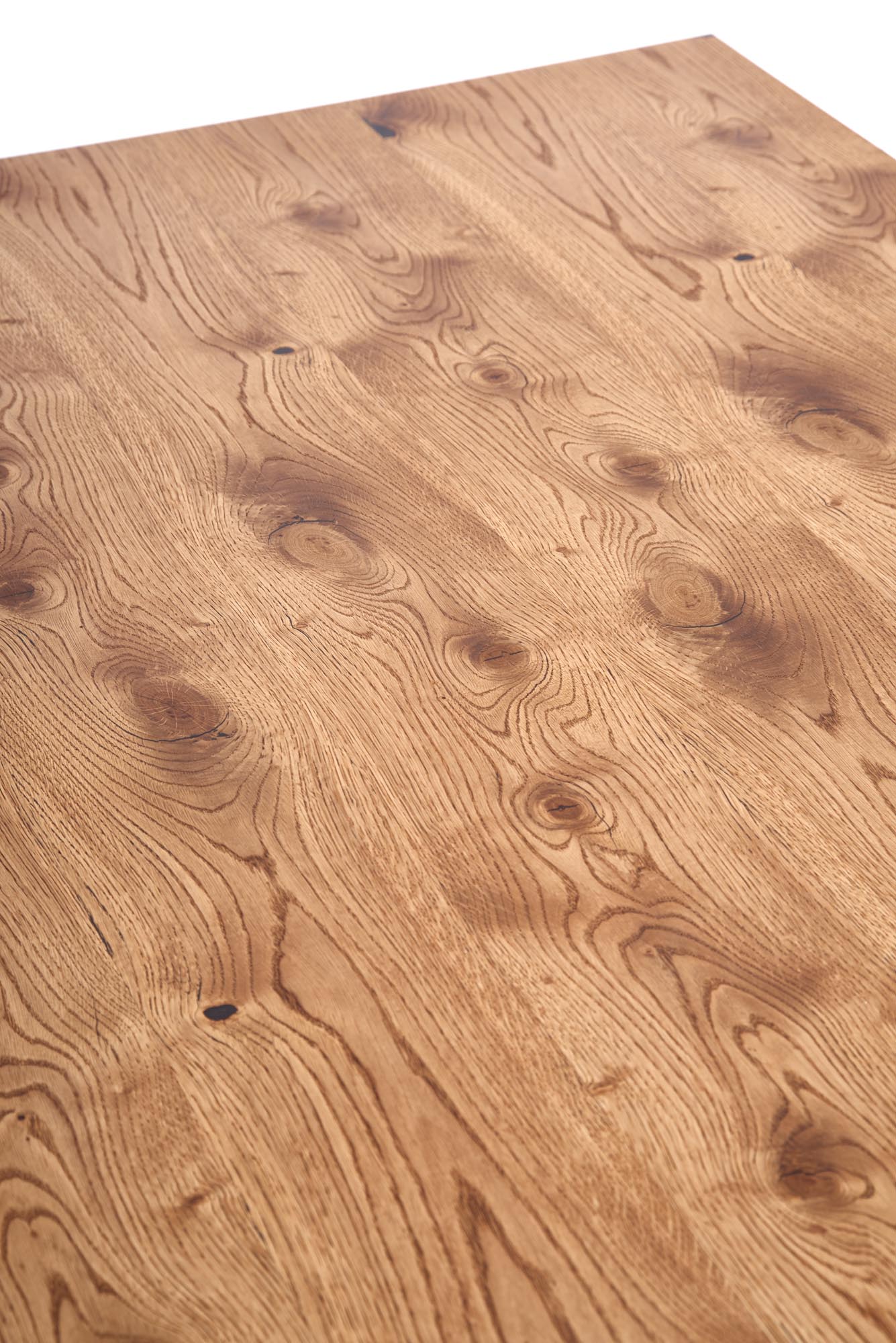 dimensions: 126÷206/80/76 cm, extension table, material: top – vaneered board, solid wood on edges, legs – powder coated steel, color: top – light oak, legs – black
