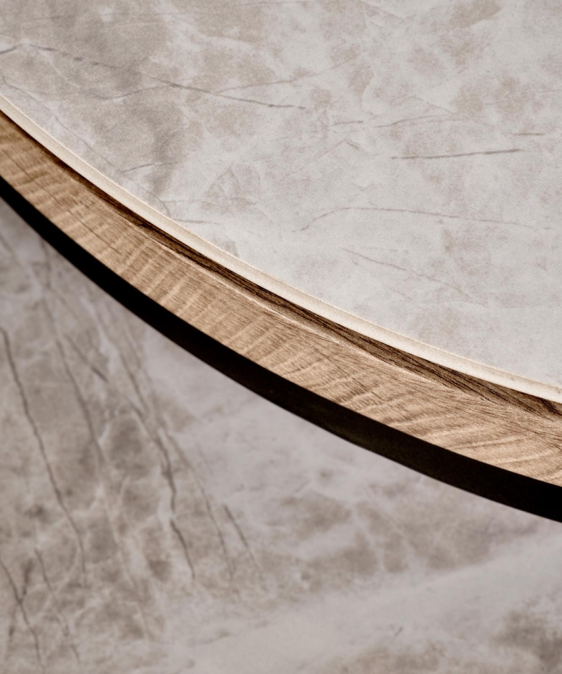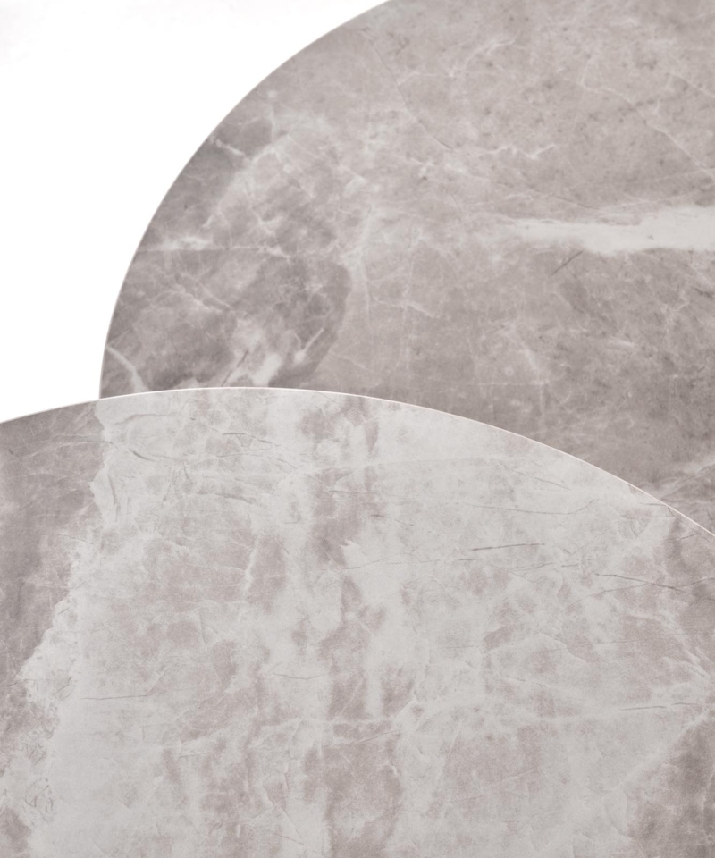 dimensions: fi54/48 cm, fi44/38 cm, set of two, material: sintered stone / laminated MDF / powder coated steel, color: grey marble / graphite