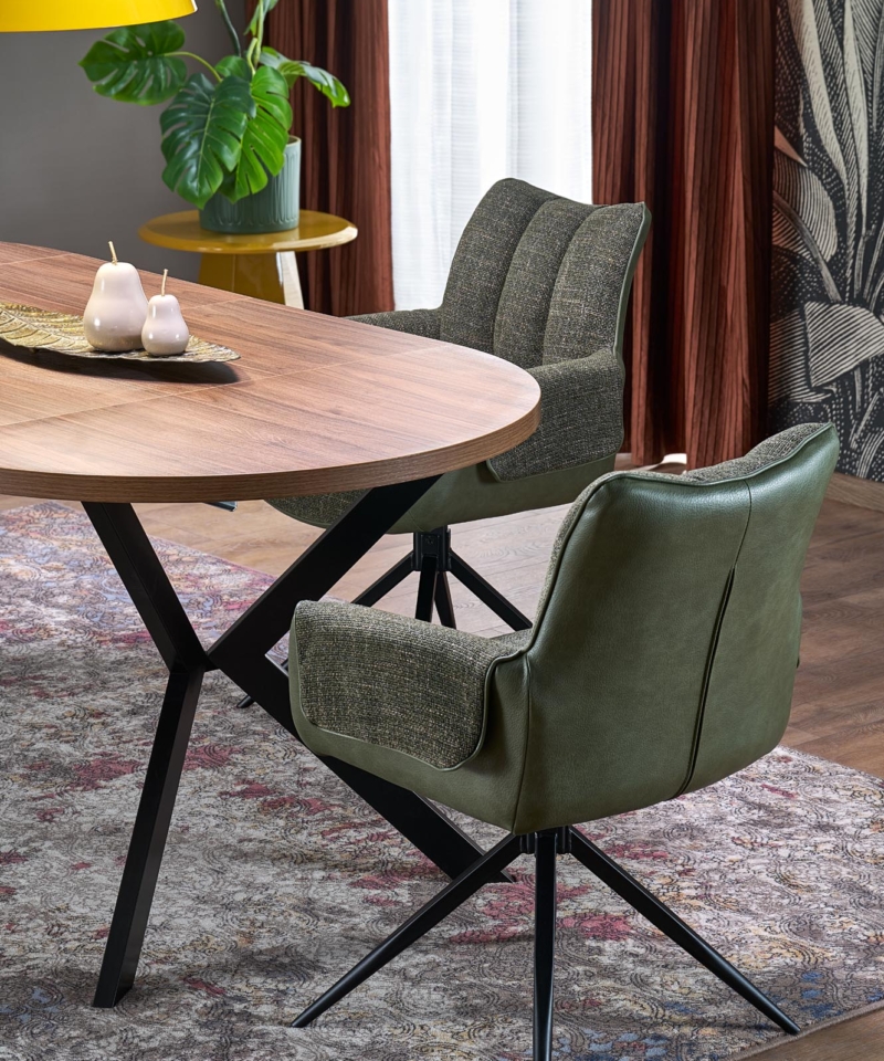 dimensions: 65/64/87/49 cm, swivel function, material: cloth / eco leather / powder coated steel, color: green