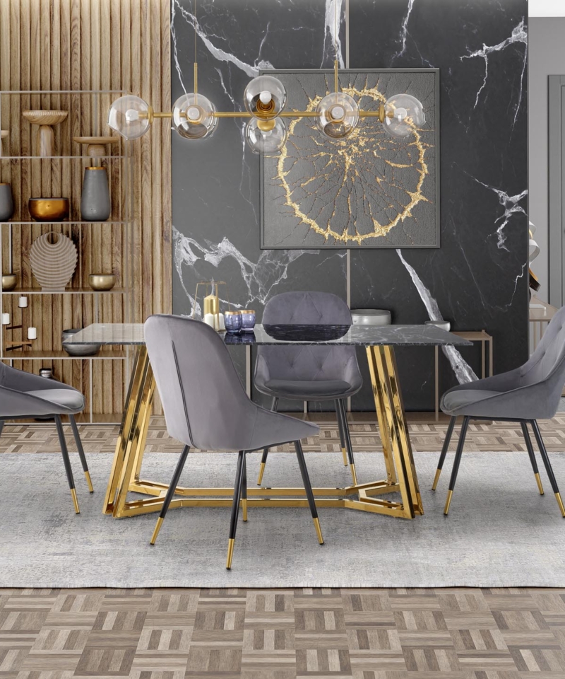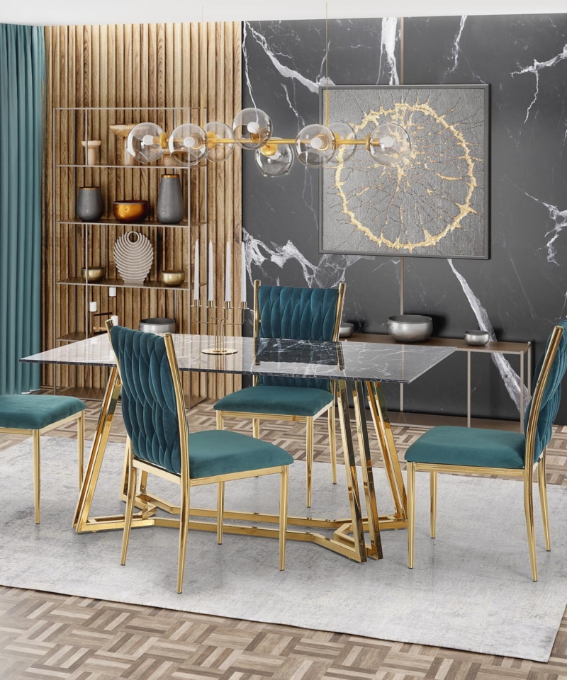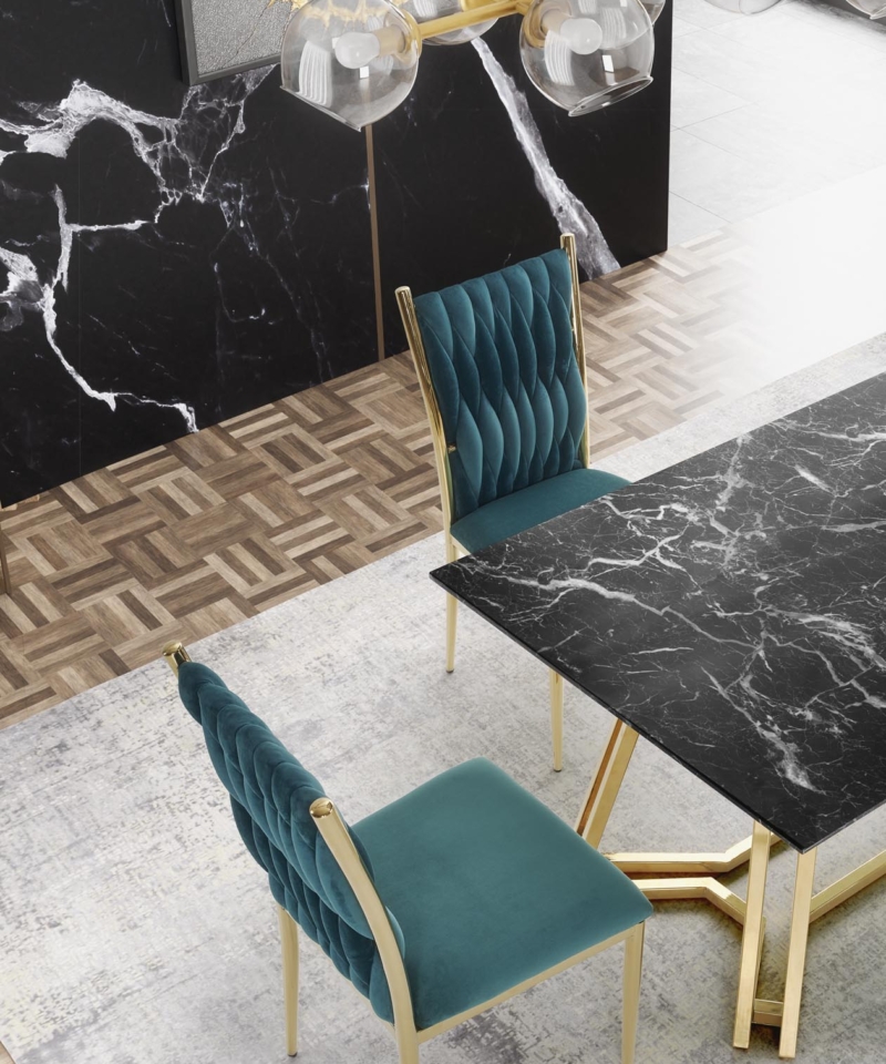 color: top – black marble, legs – gold
