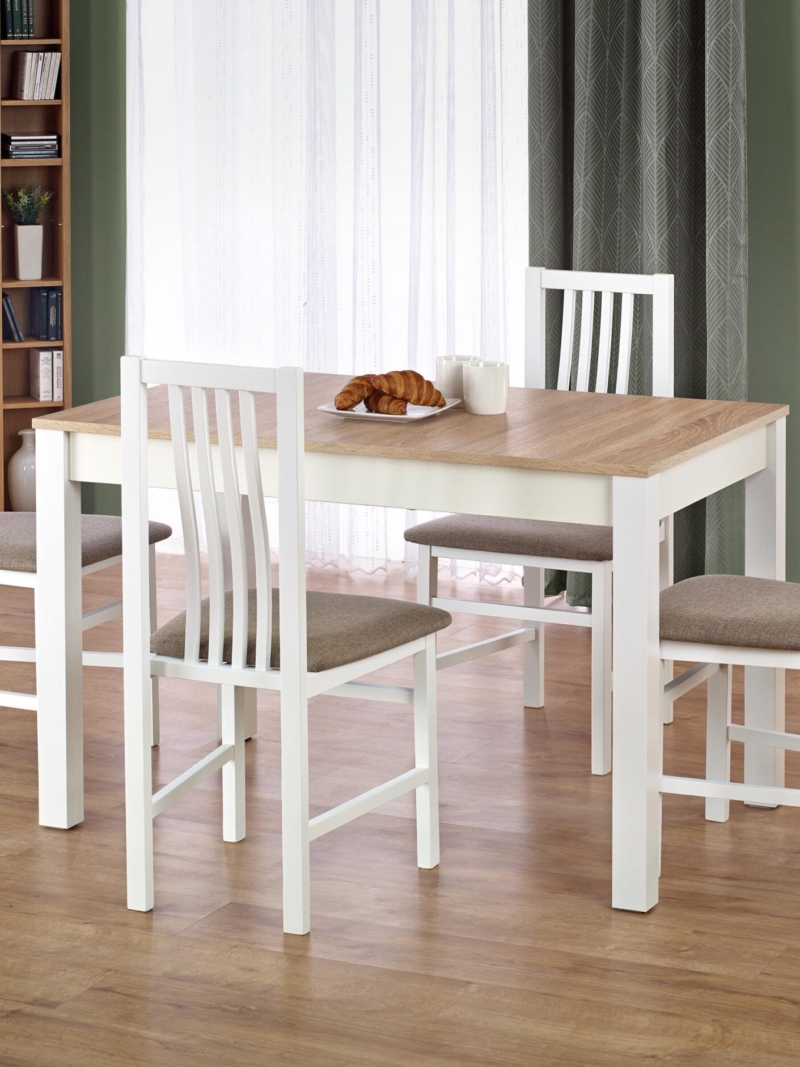 dimensions: 120/68/76 cm, material: top – laminated furniture top, ABS plastic on edges, legs – laminated MDF, color: sonoma oak / white