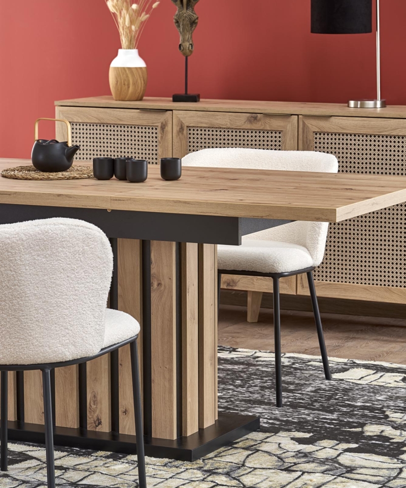 dimensions: 130-180/80/76 cm, extension table, material: laminated chipboard, color: top – artisan oak, legs – artisan oak / black
