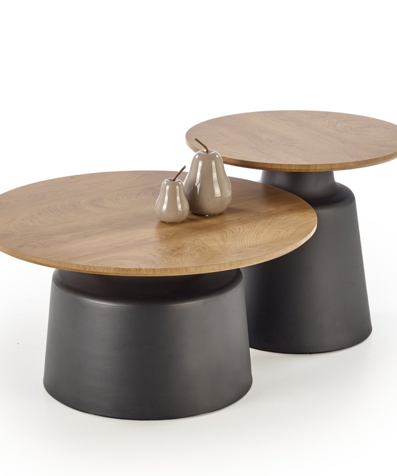 dimensions: fi70/36 cm, fi50/45 cm, set of two, material: laminated MDF / powder coated steel, color: natural / black