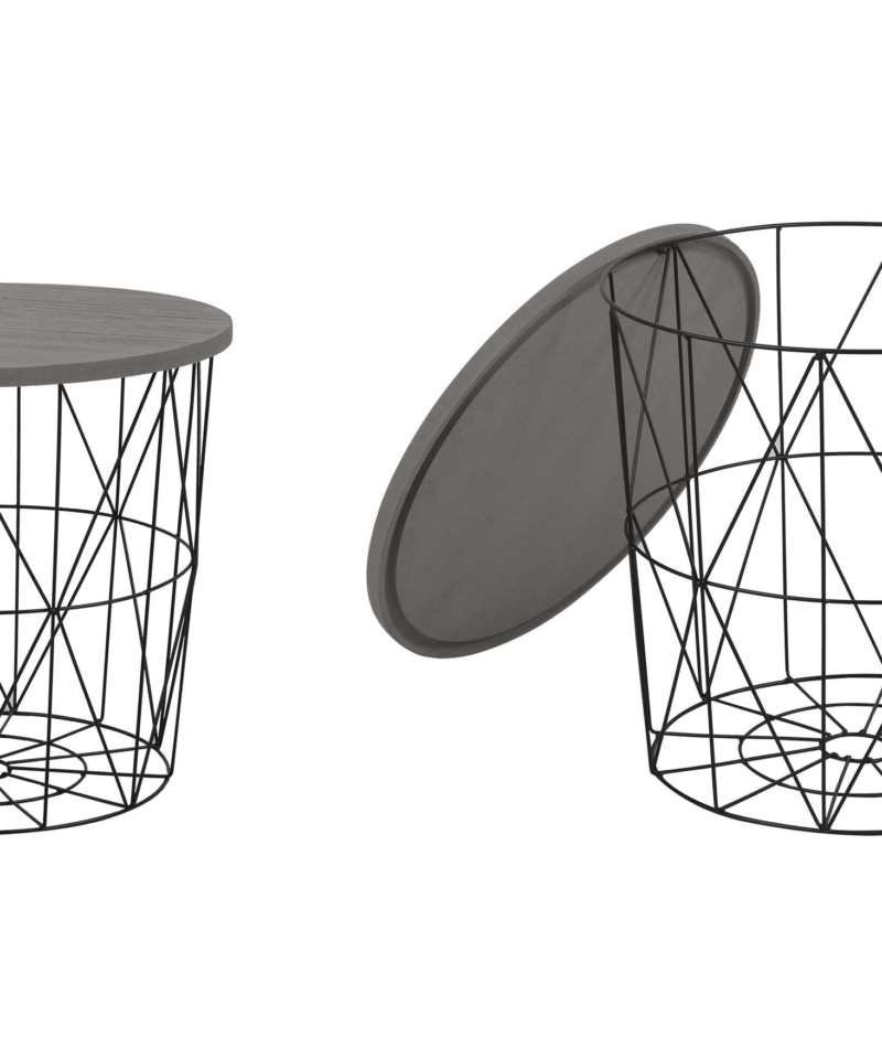 dimensions: O42/41 cm, material: MDF + natural veneer / powder coated steel, color: grey / black